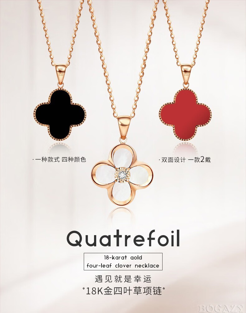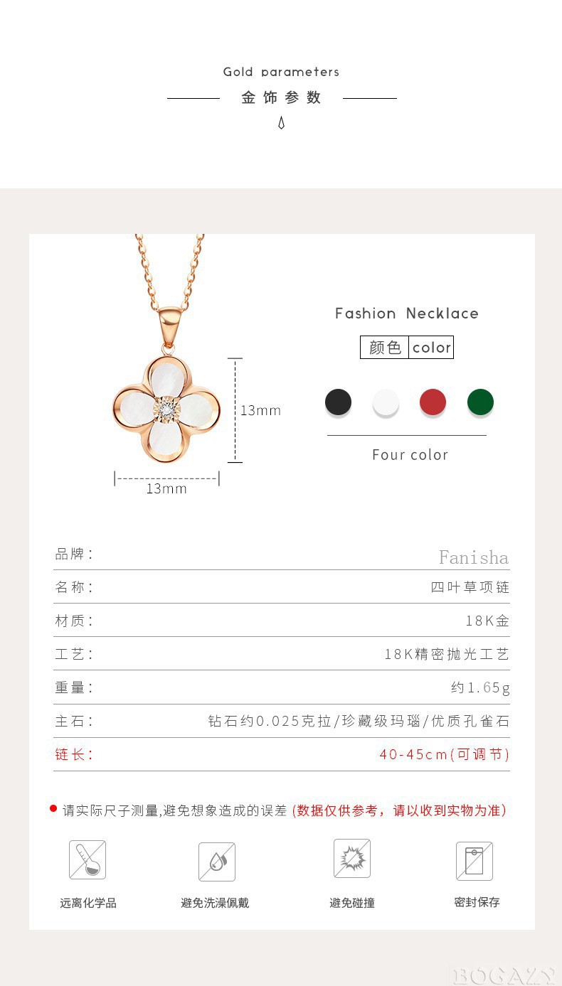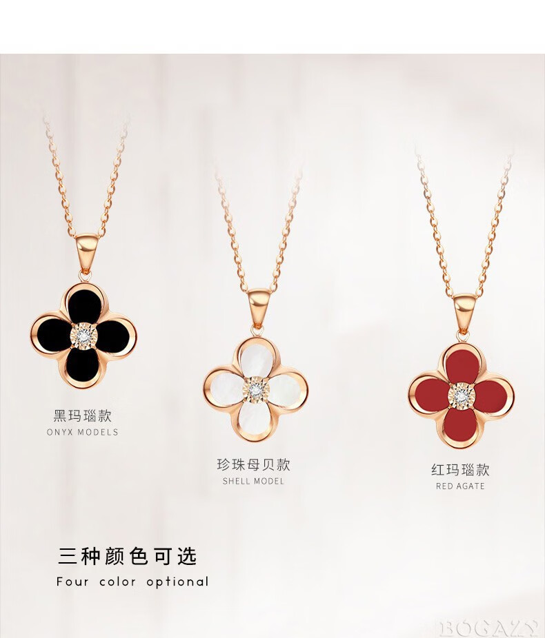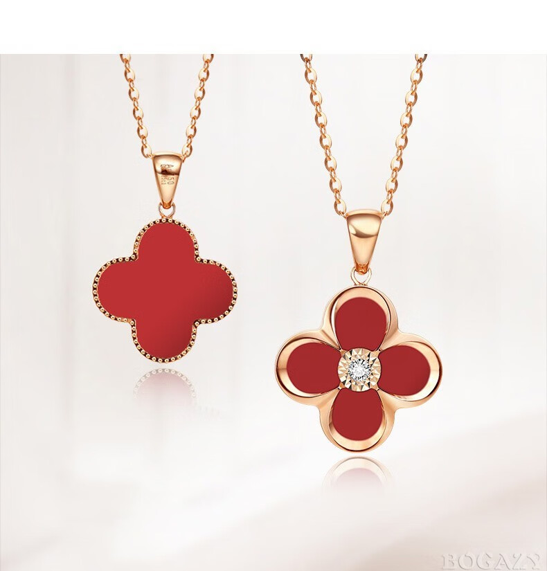 Fanesa AU750 four-leaf clover necklace for women rose gold 18K color gold pendant clavicle chain for girlfriend's birthday 520 gift 18K gold red agate rose gold (customized)