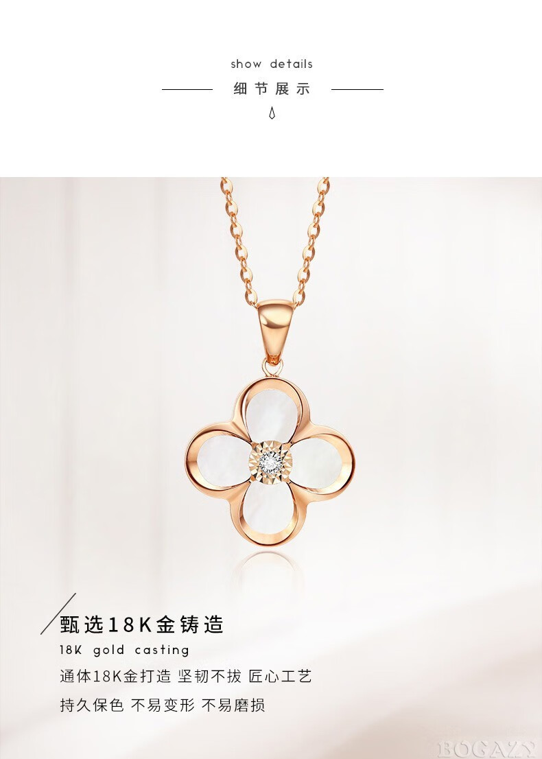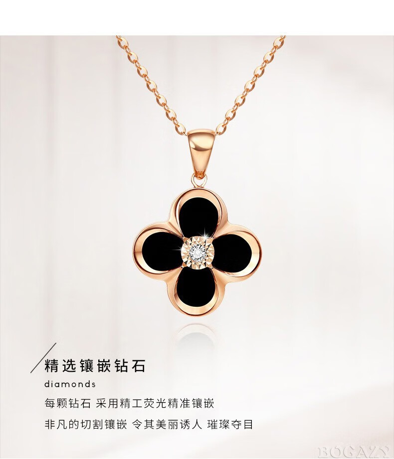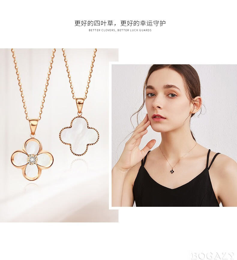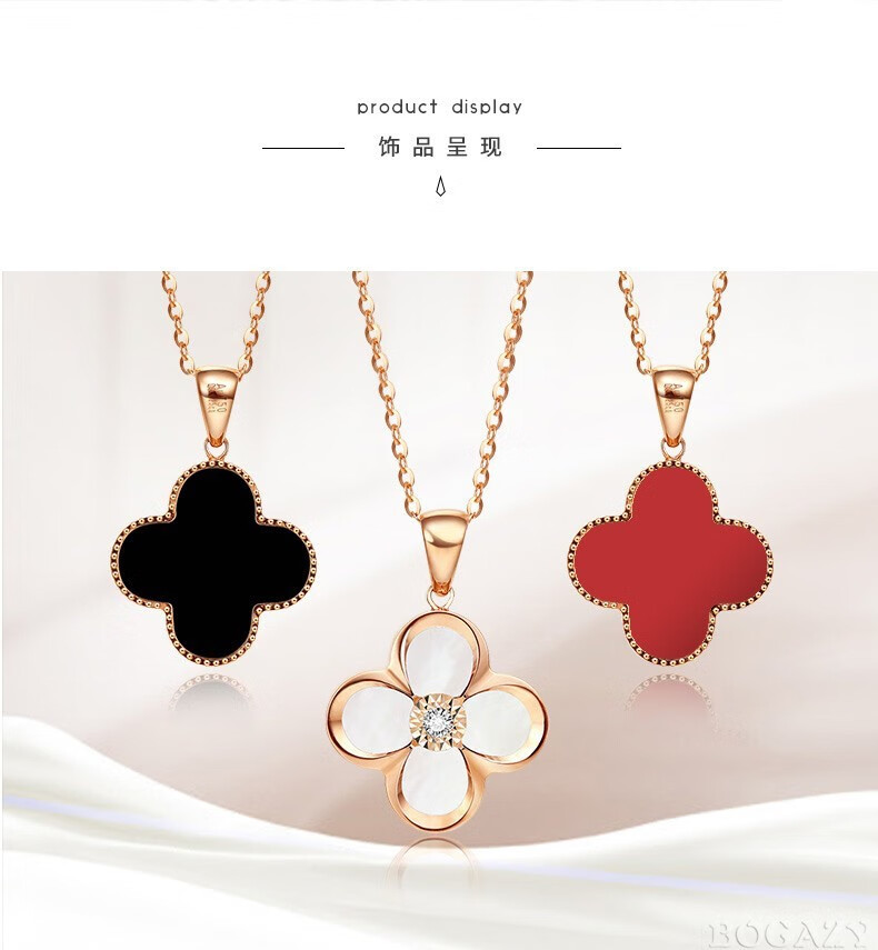 Fanesa AU750 four-leaf clover necklace for women rose gold 18K color gold pendant clavicle chain for girlfriend's birthday 520 gift 18K gold red agate rose gold (customized)