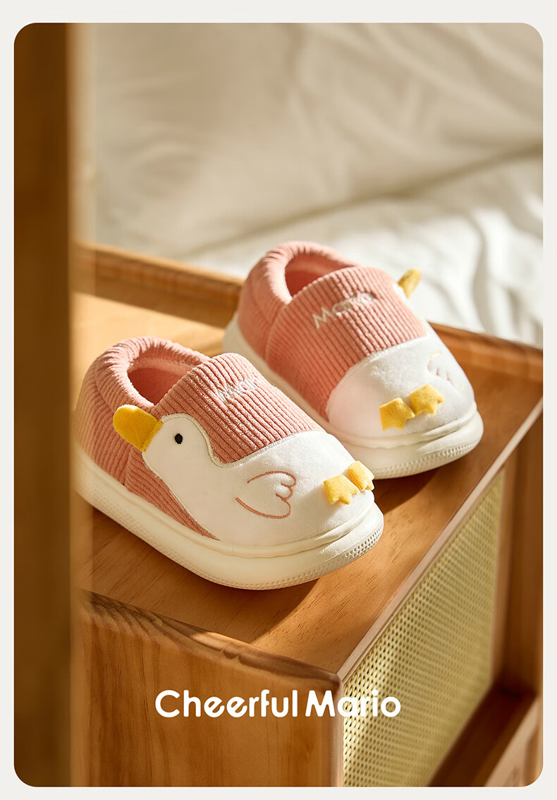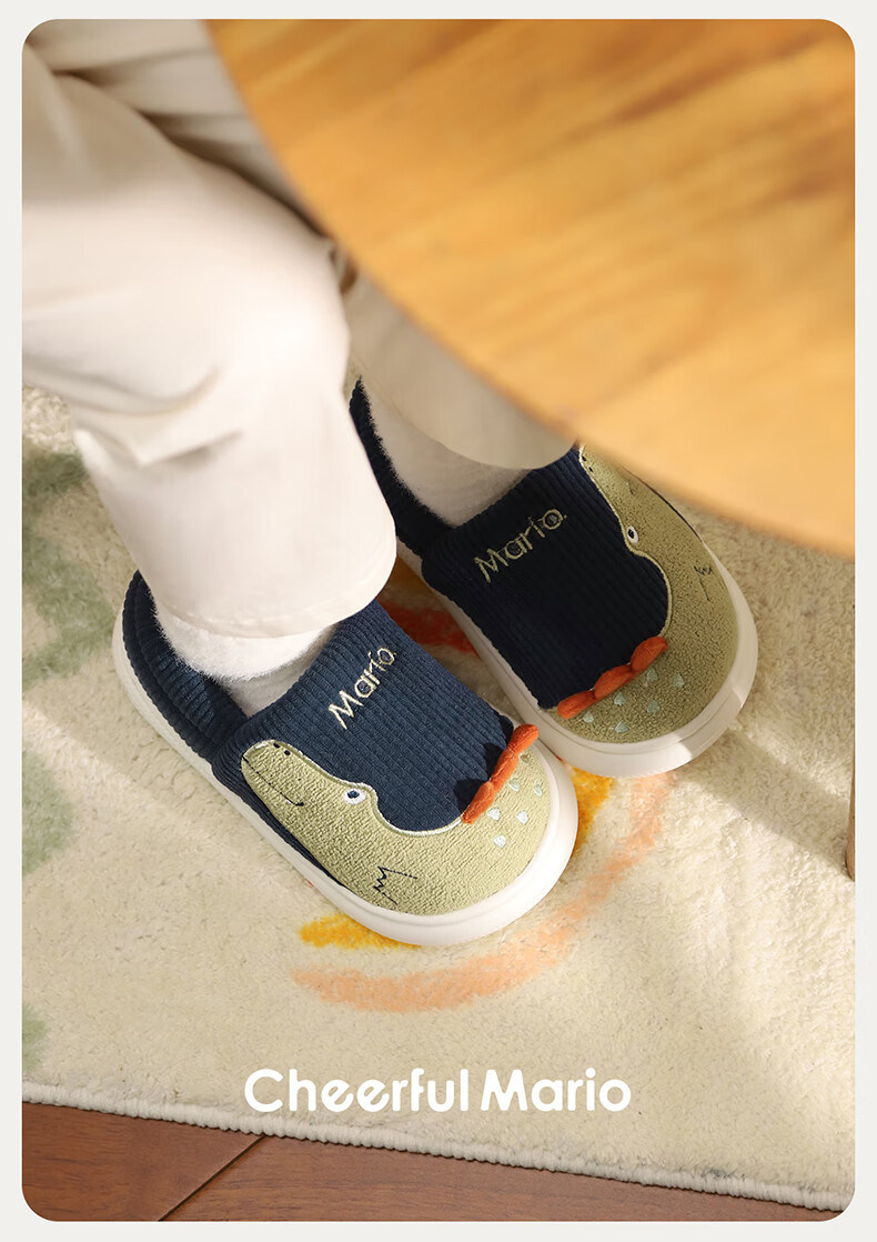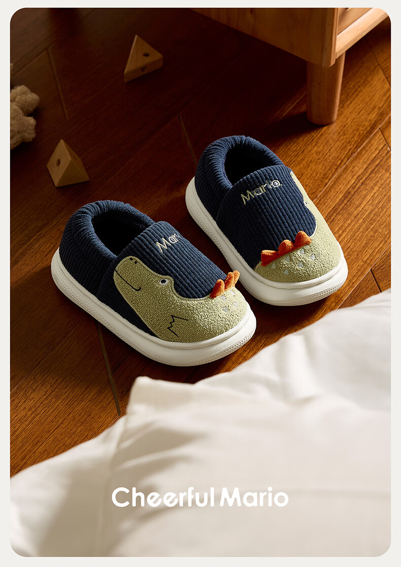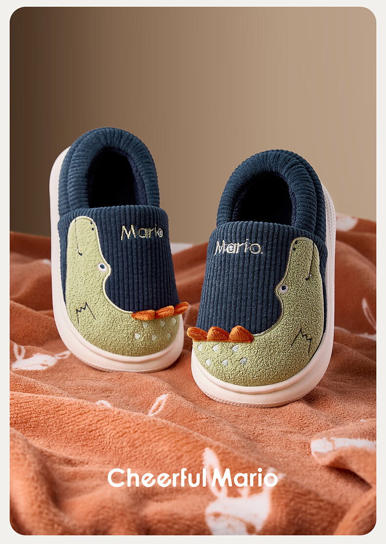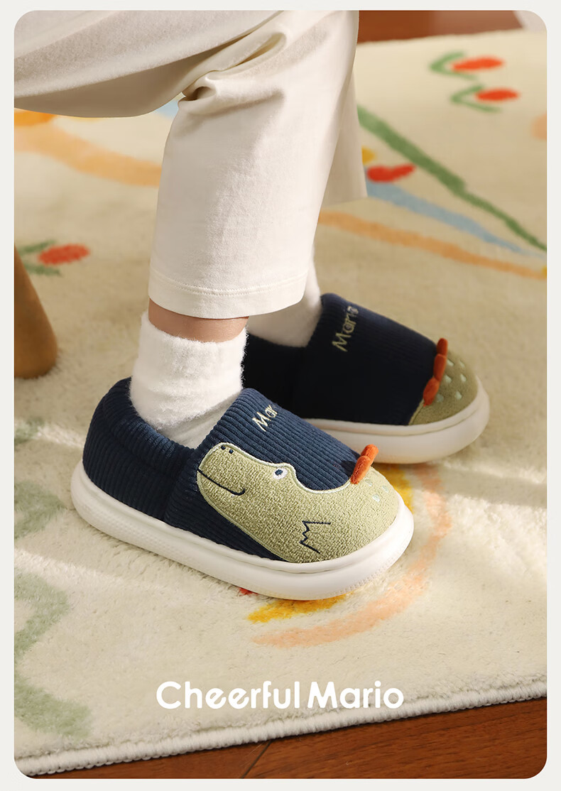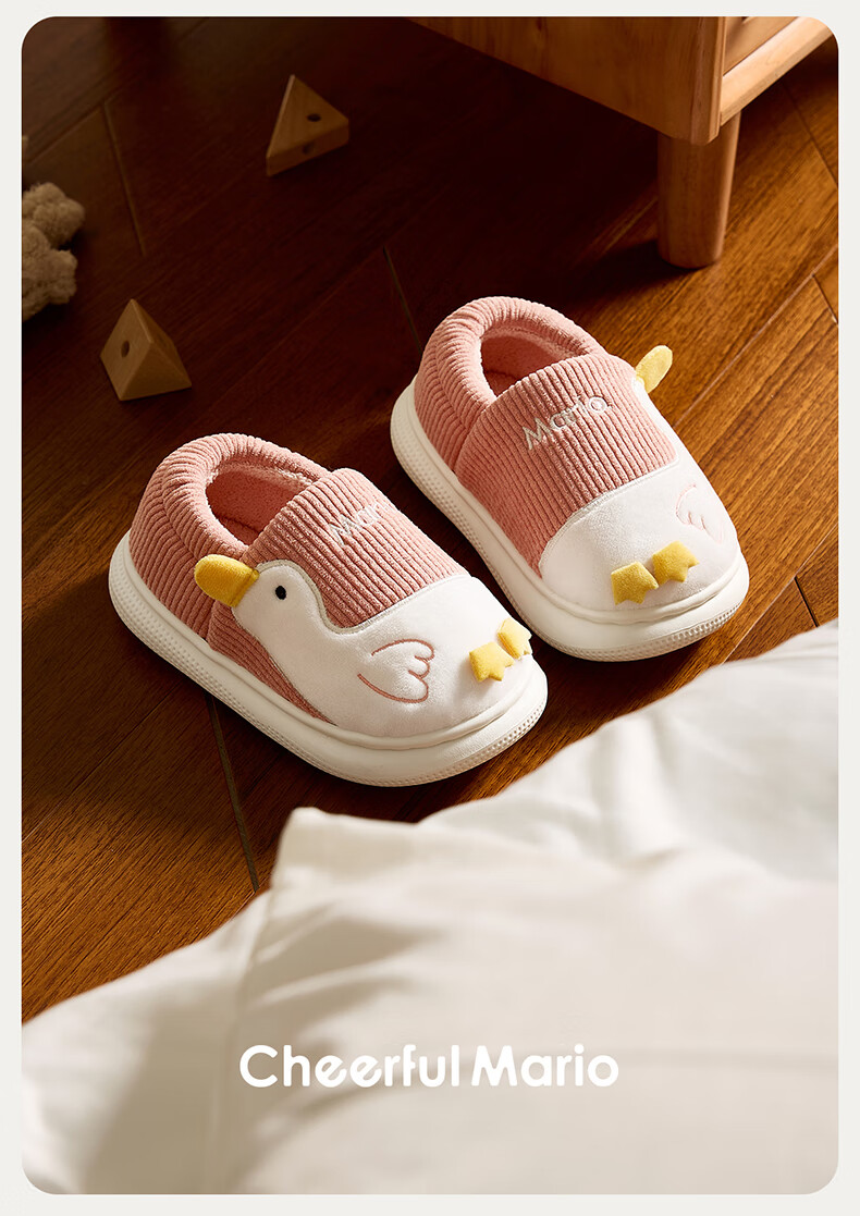 Cheerful Mario (Cheerful Mario) children's cotton slippers 2025 new winter velvet thickened boys and girls cute cotton shoes home shoes warm middle and large children