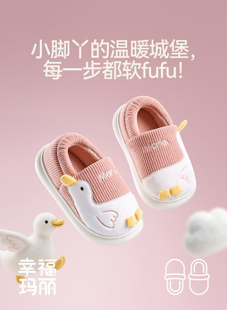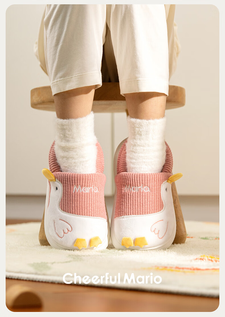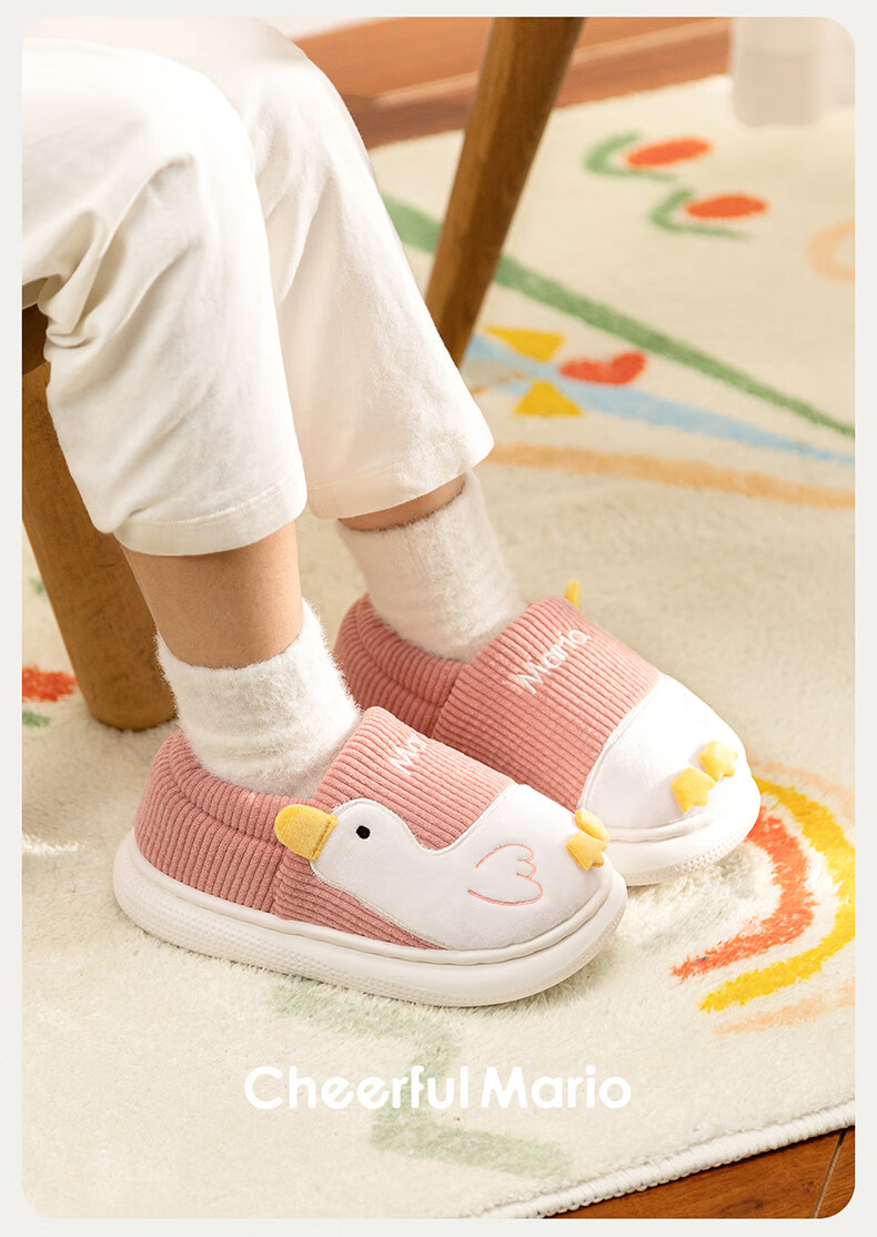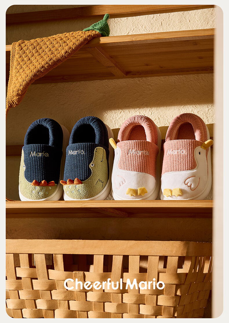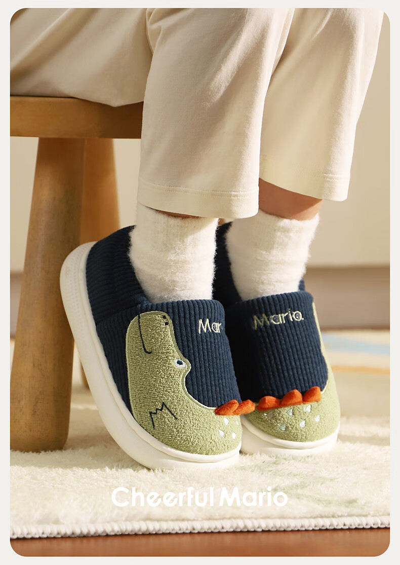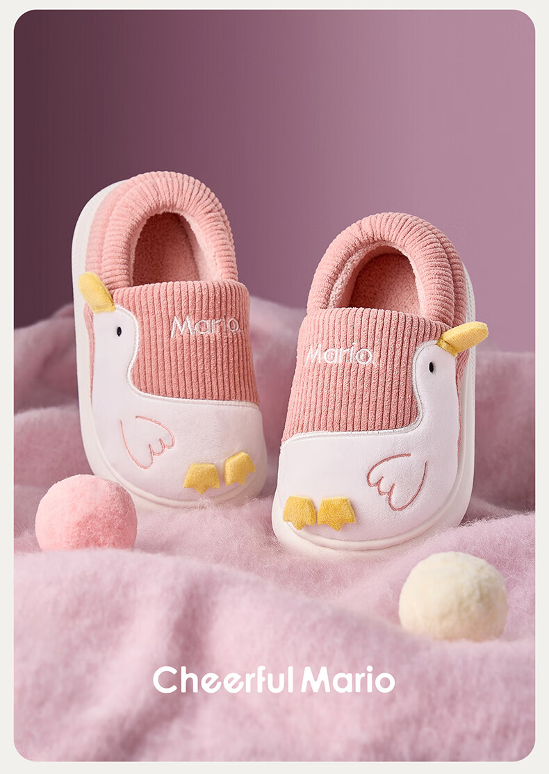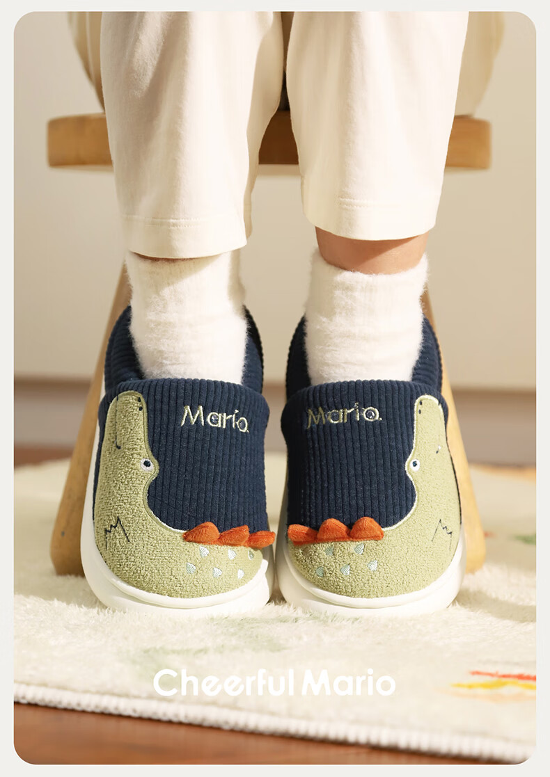 Cheerful Mario (Cheerful Mario) children's cotton slippers 2025 new winter velvet thickened boys and girls cute cotton shoes home shoes warm middle and large children