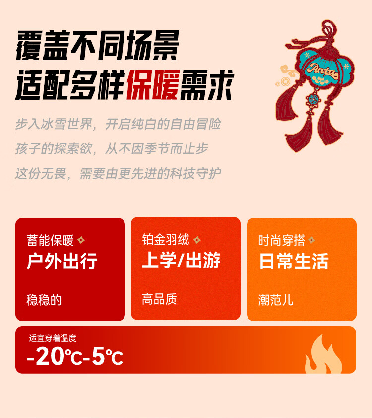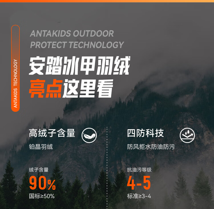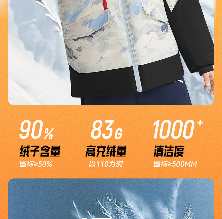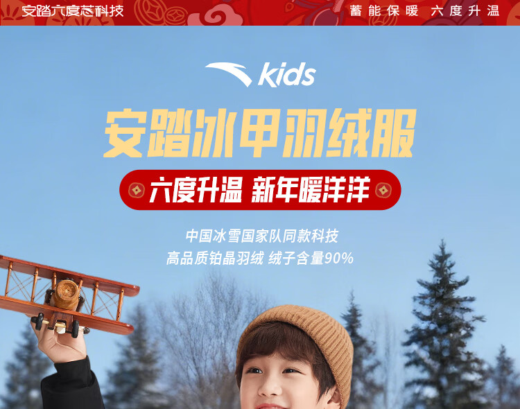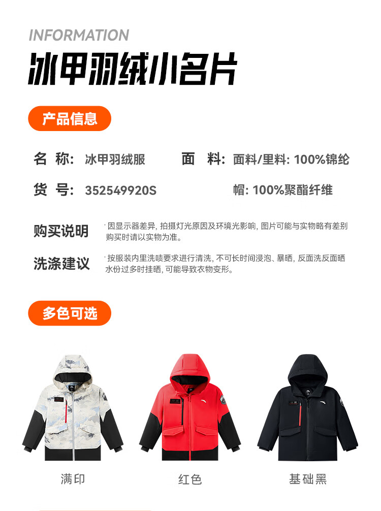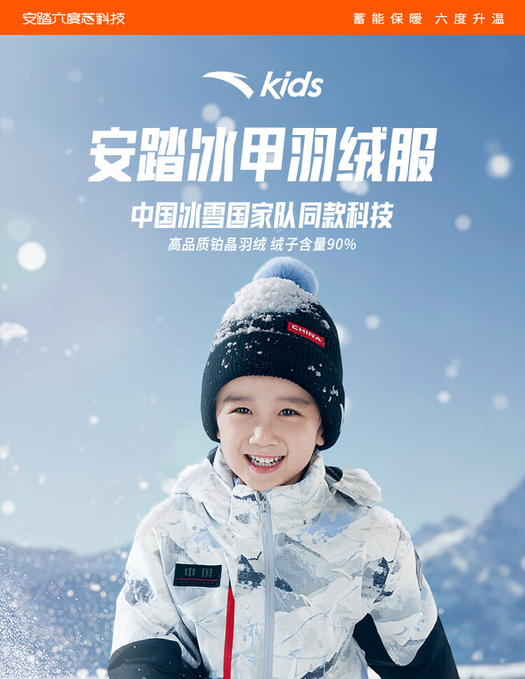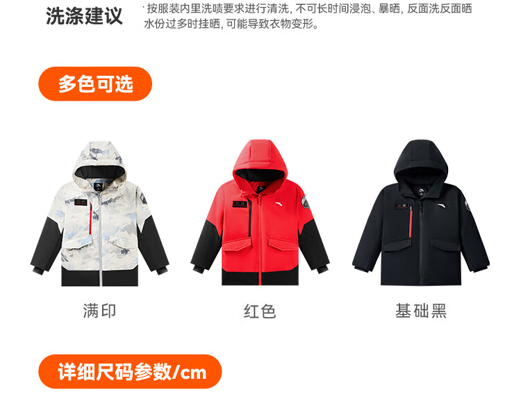ANTA children's down jacket boys 25 winter comfortable and warm Chinese ice and snow down jacket 352549920S