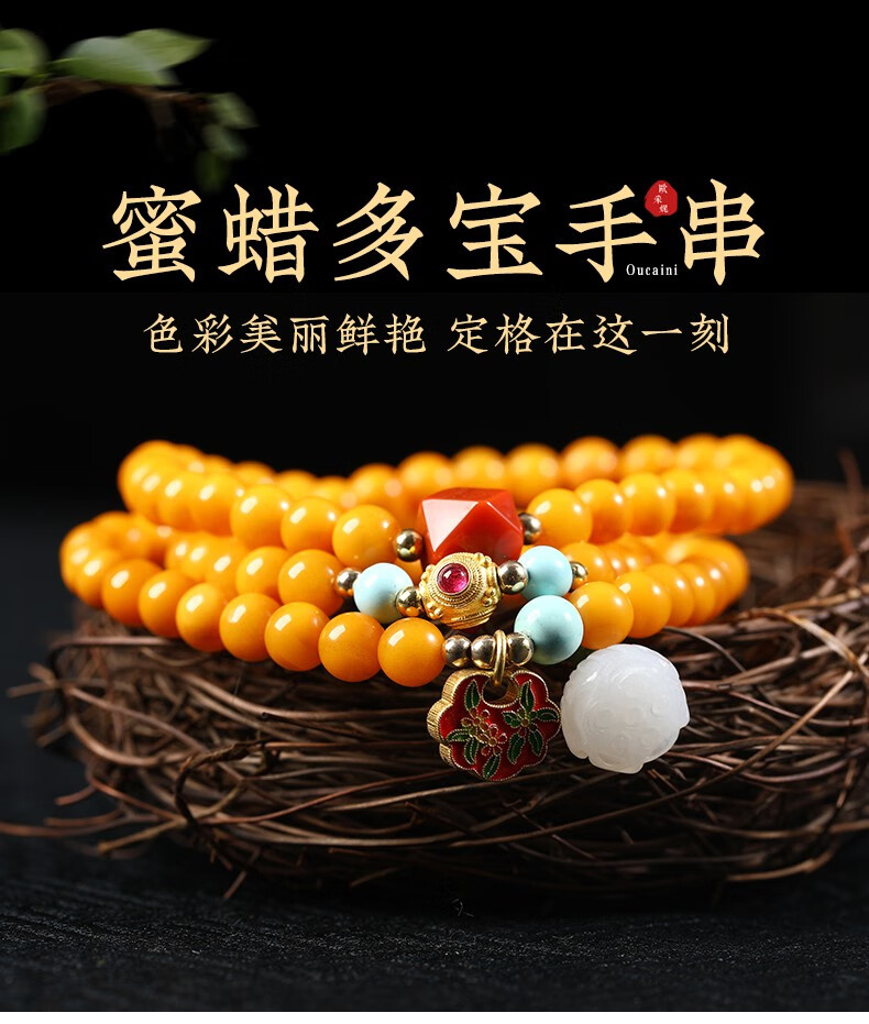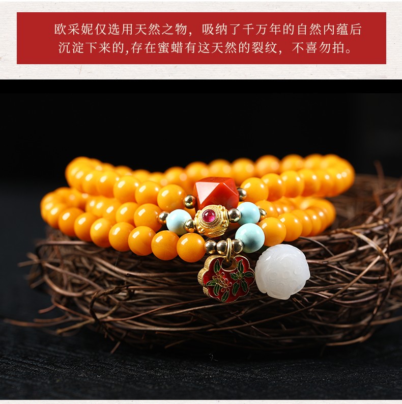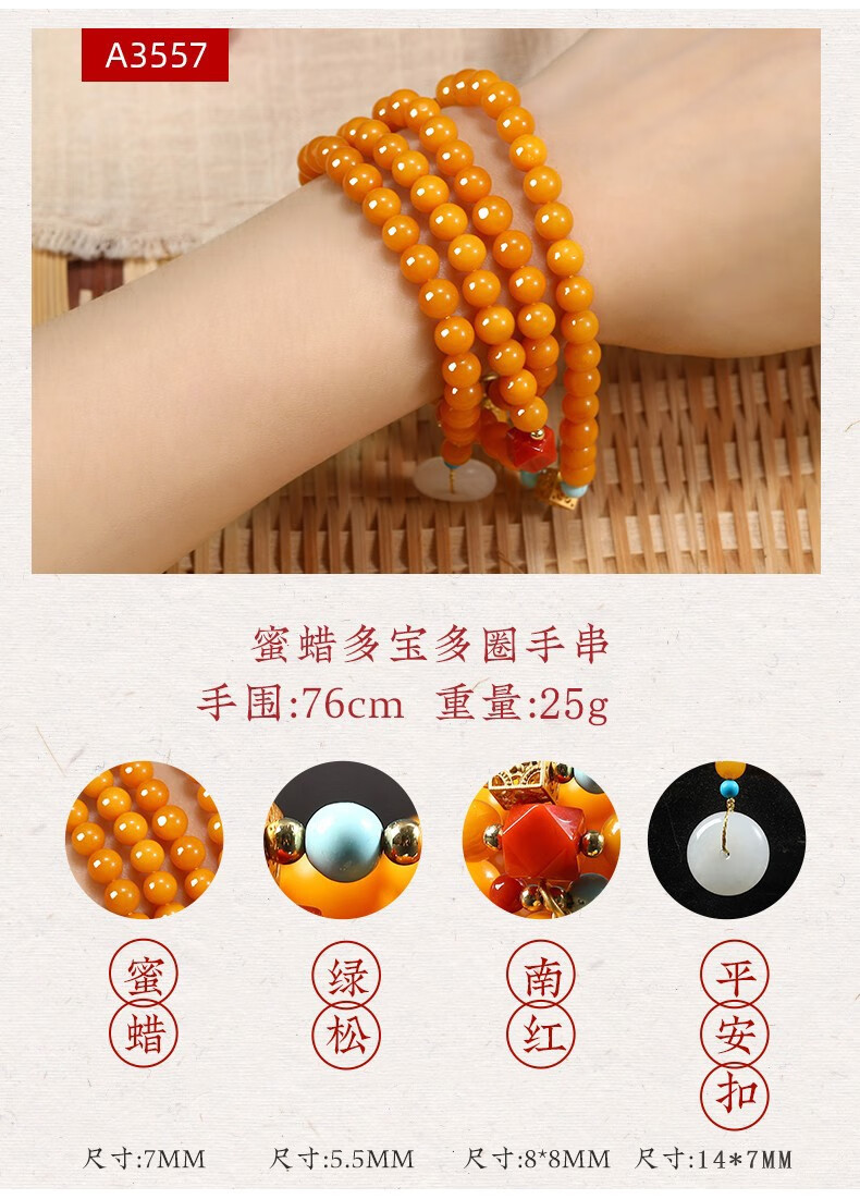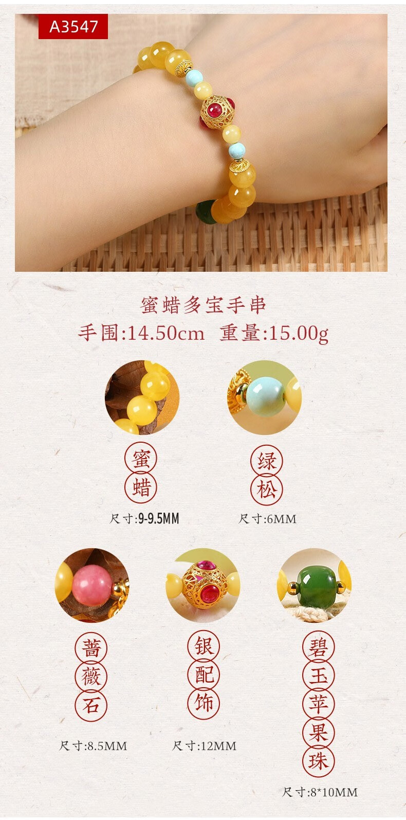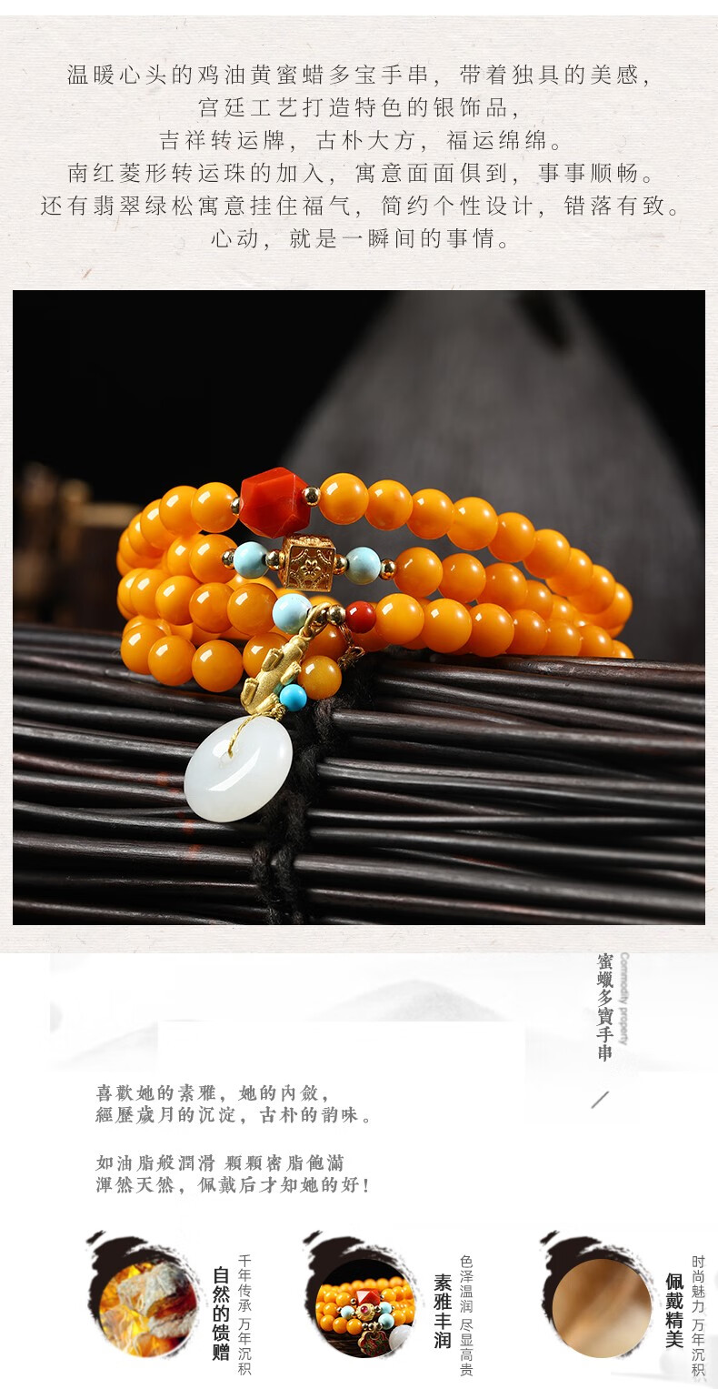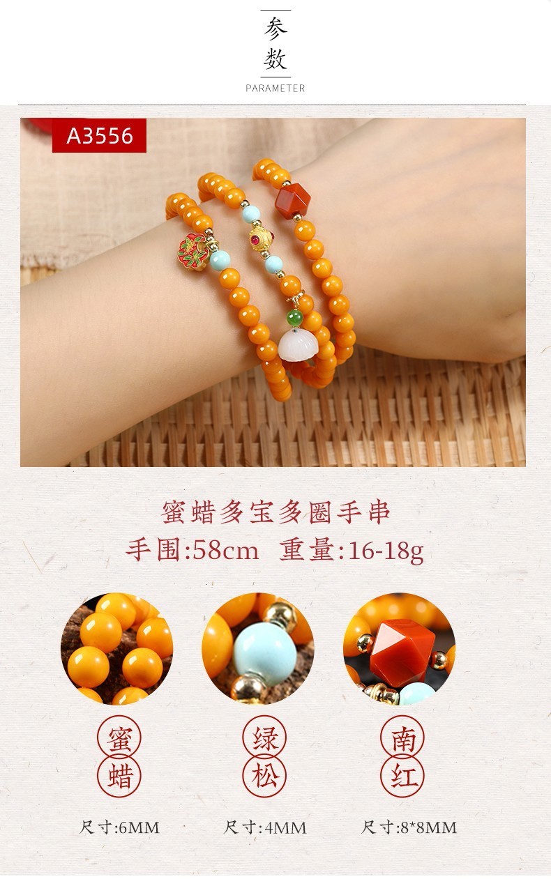 OUCERNY Beeswax Duobao DIY Bracelet Multi-turn Single Circle New and Old Honey Green Pine Southern Red Silver Decoration White Jade Chinese Valentine's Day Gift A3557 (can be wrapped around the hand about 4 times)