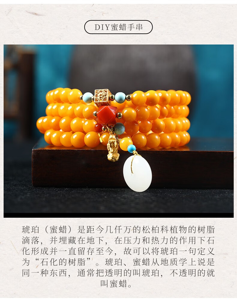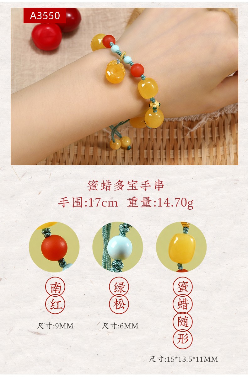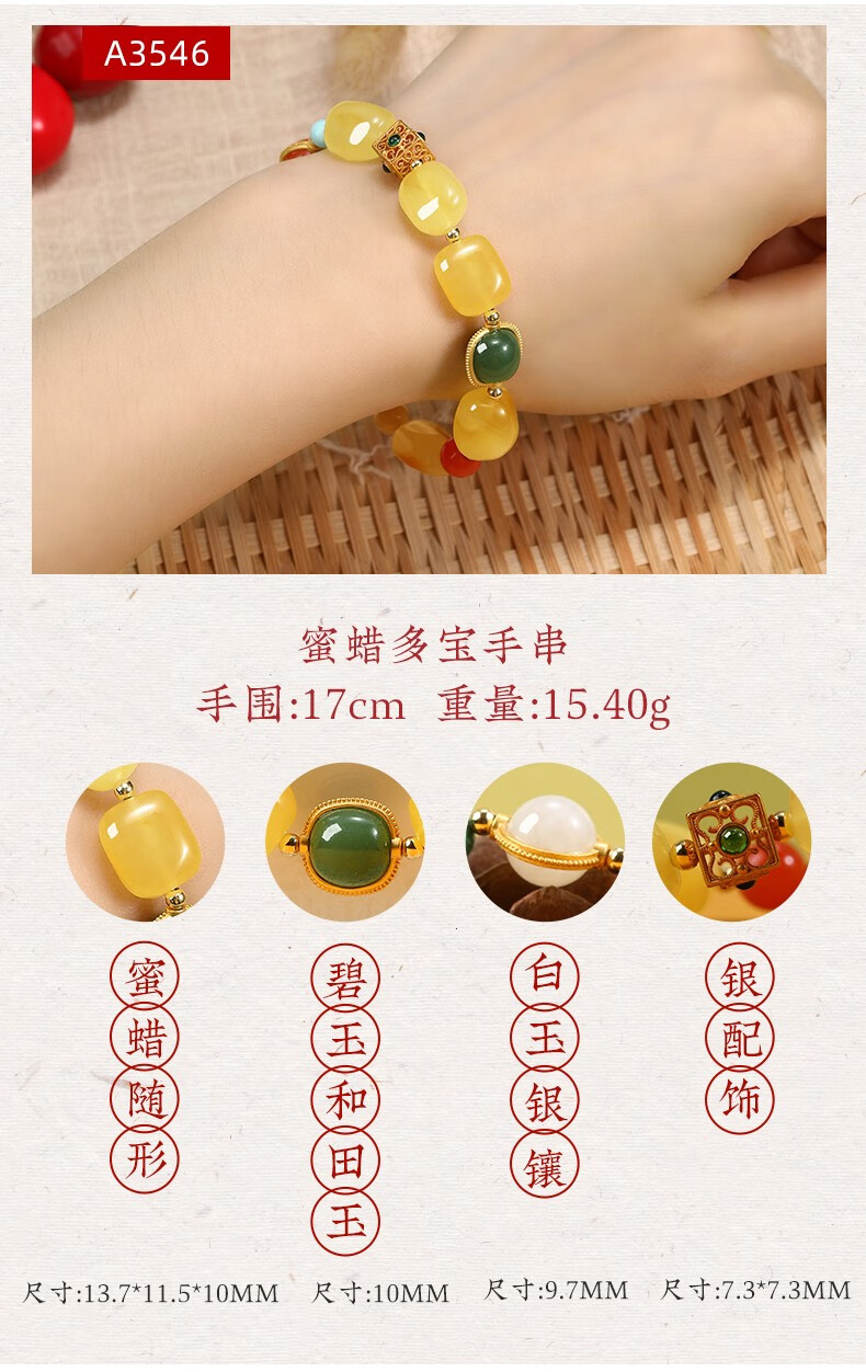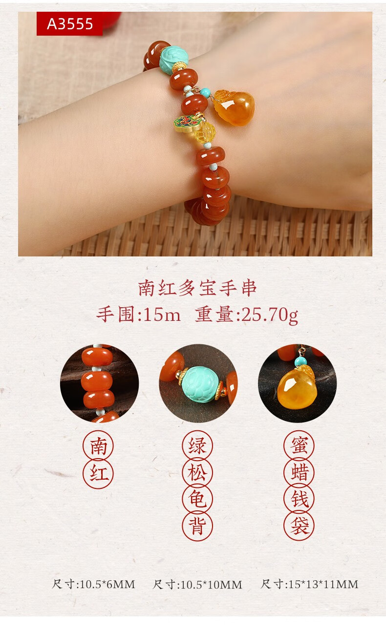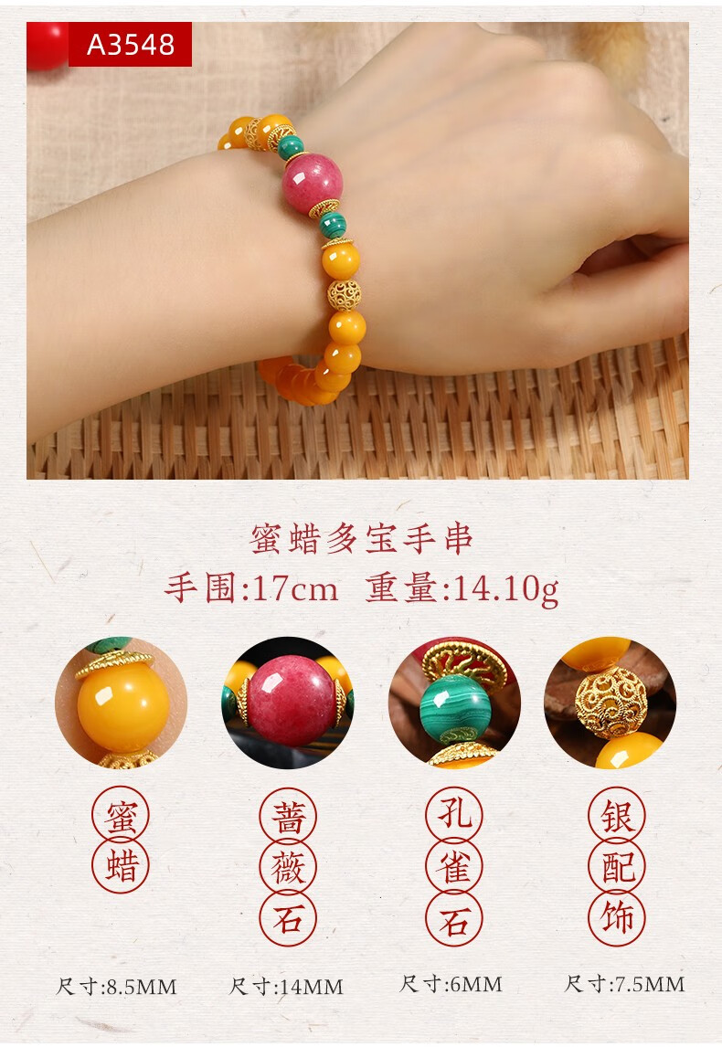 OUCERNY Beeswax Duobao DIY Bracelet Multi-turn Single Circle New and Old Honey Green Pine Southern Red Silver Decoration White Jade Chinese Valentine's Day Gift A3557 (can be wrapped around the hand about 4 times)