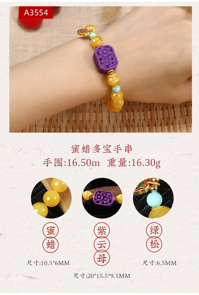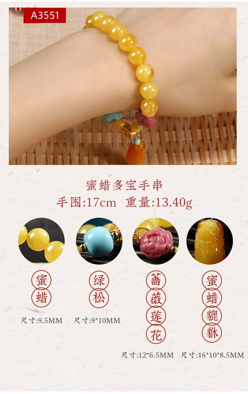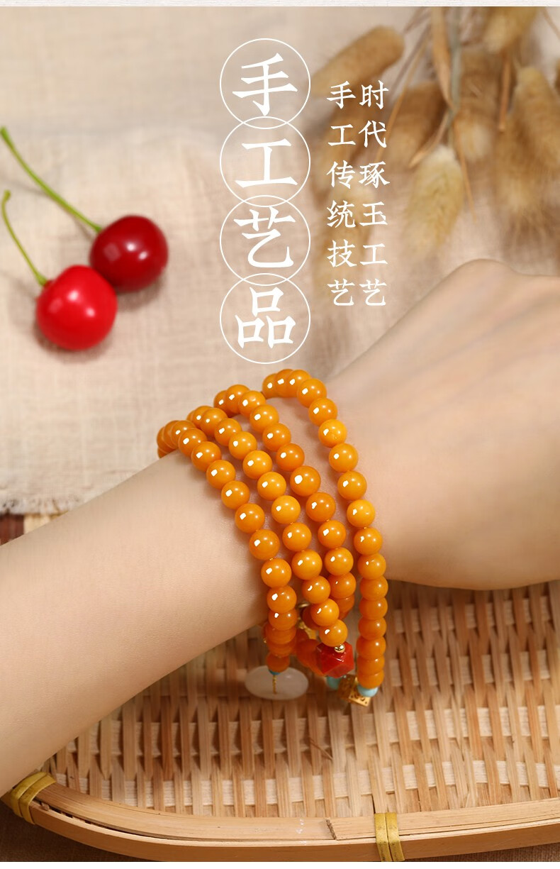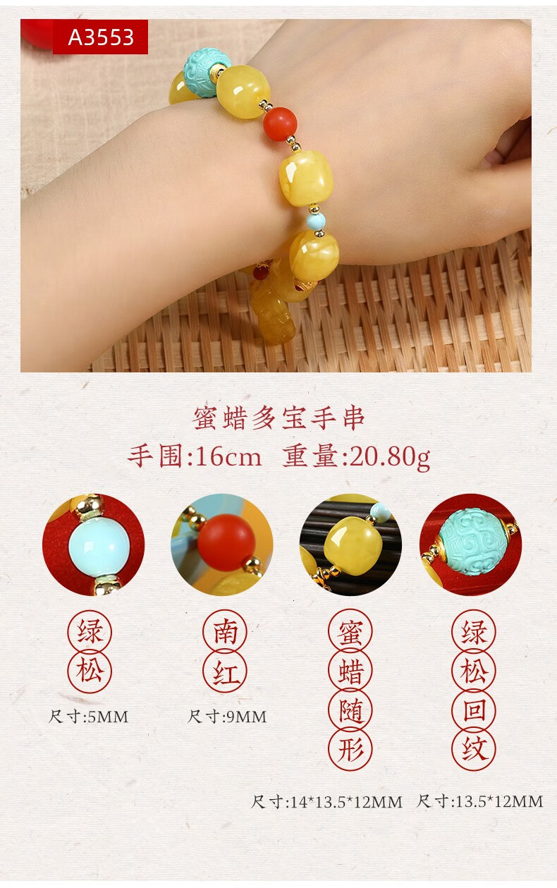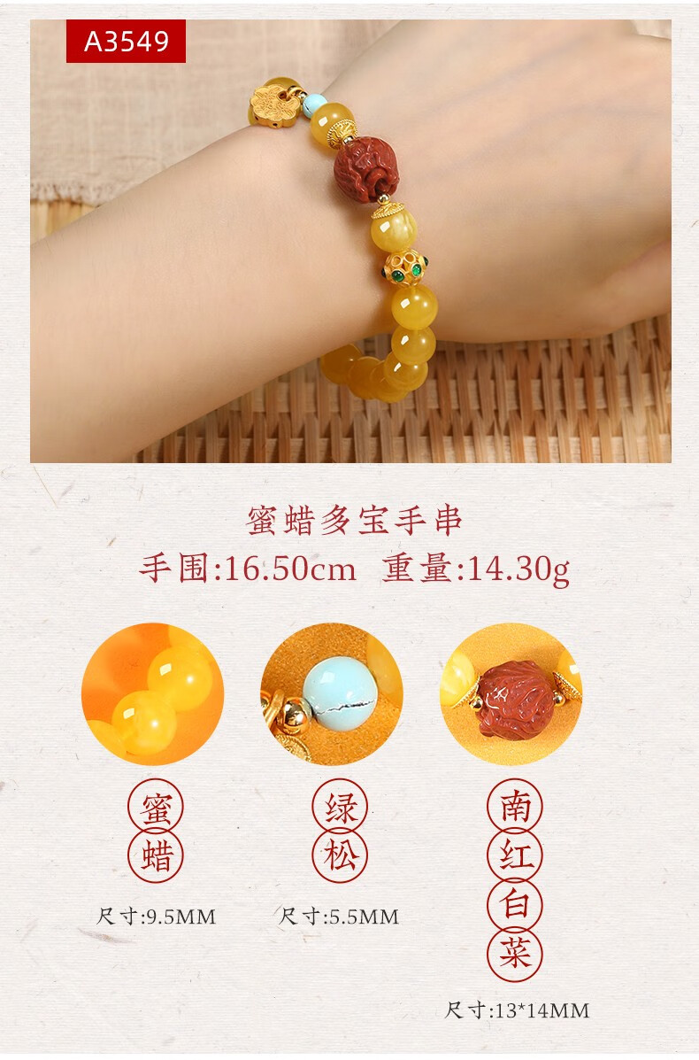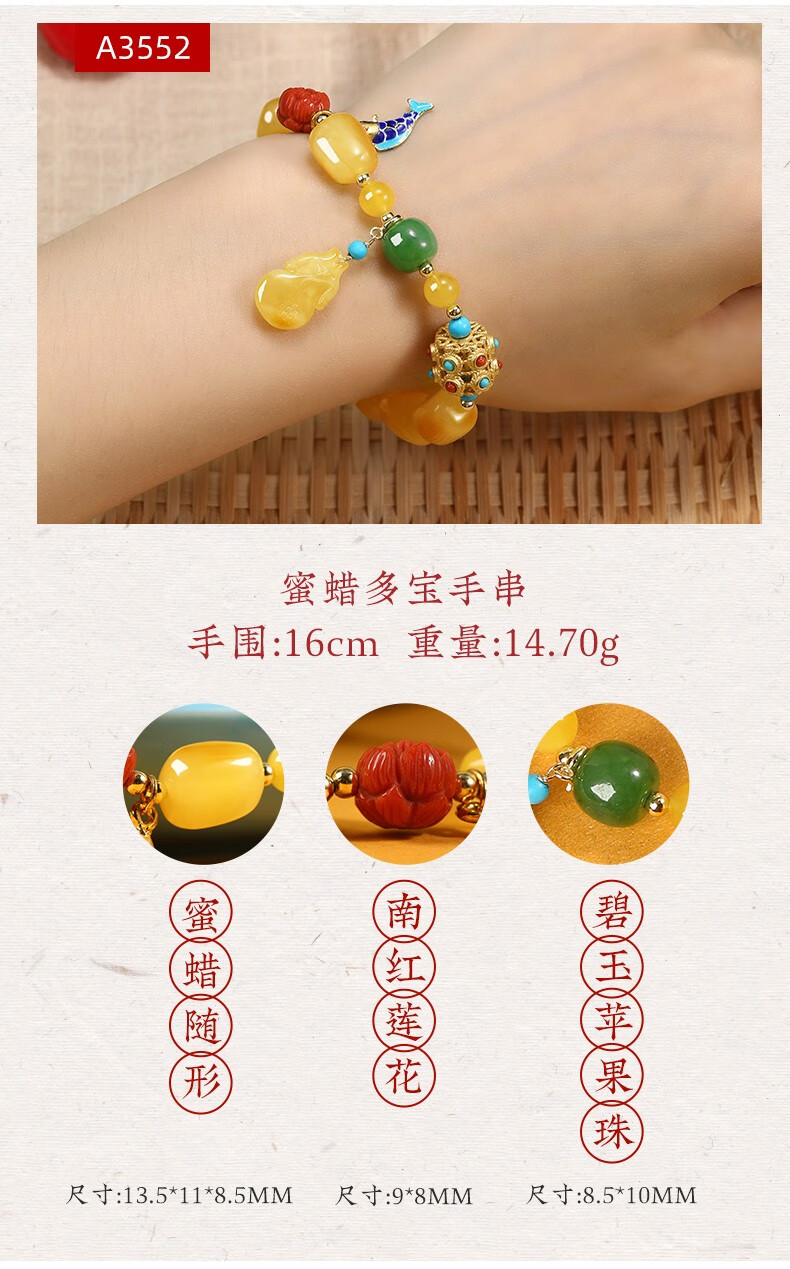 OUCERNY Beeswax Duobao DIY Bracelet Multi-turn Single Circle New and Old Honey Green Pine Southern Red Silver Decoration White Jade Chinese Valentine's Day Gift A3557 (can be wrapped around the hand about 4 times)