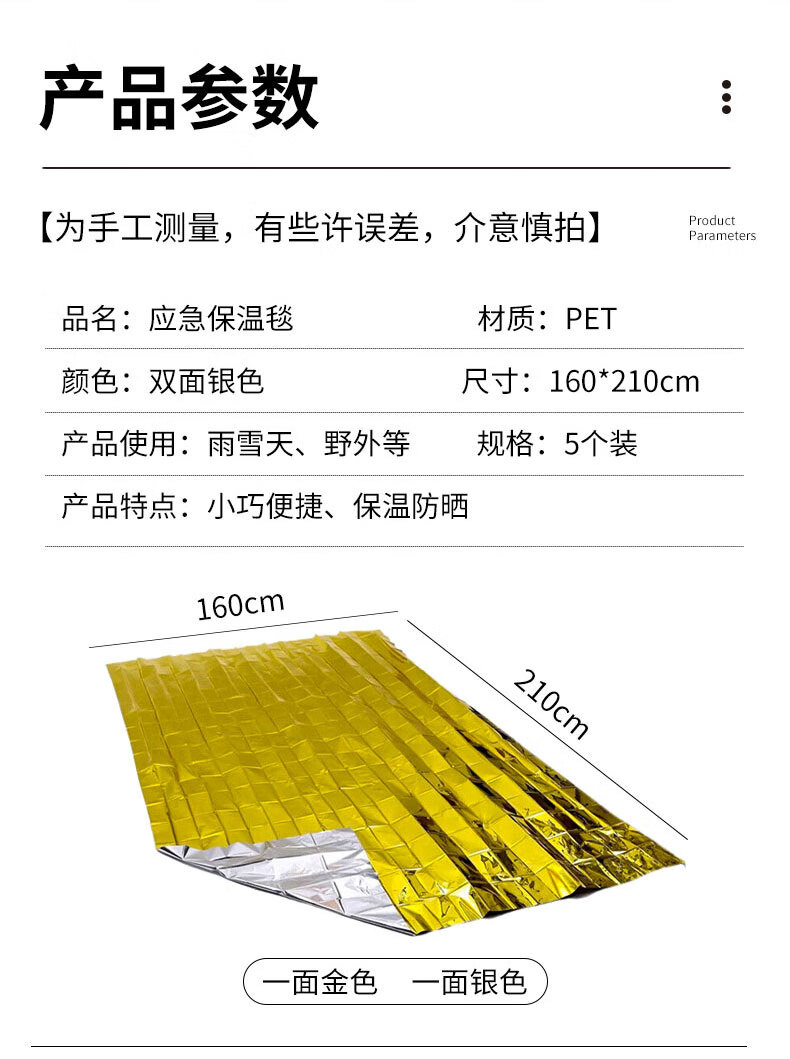 Mandelai emergency blanket thermal blanket survival blanket double-sided silver 160*210cm 5-pack outdoor emergency reserve supplies thermal blanket hypothermia blanket