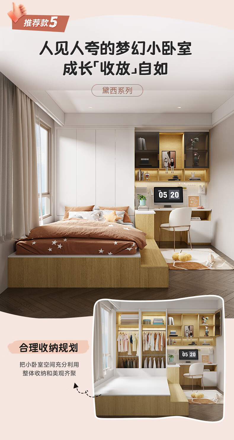 Sofia tatami bed customized for the whole house Tatami bed cabinet desk bookcase with wardrobe small study room furniture combination Yuan/
