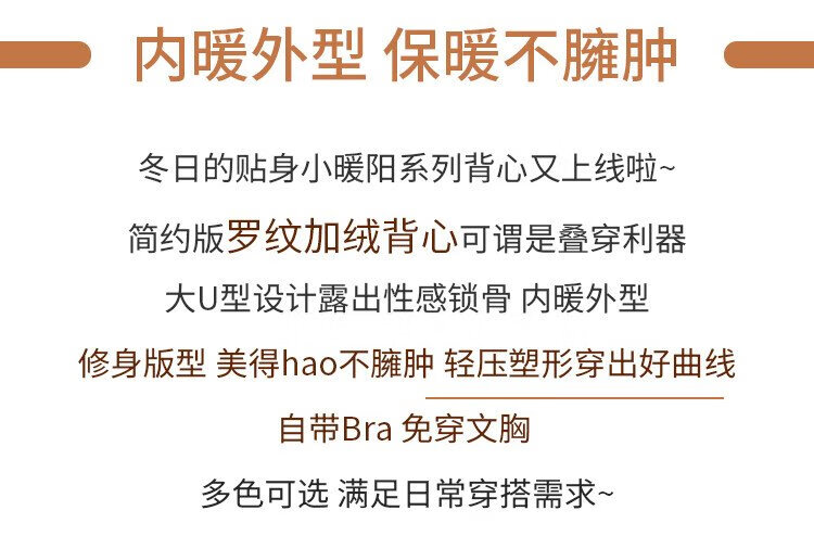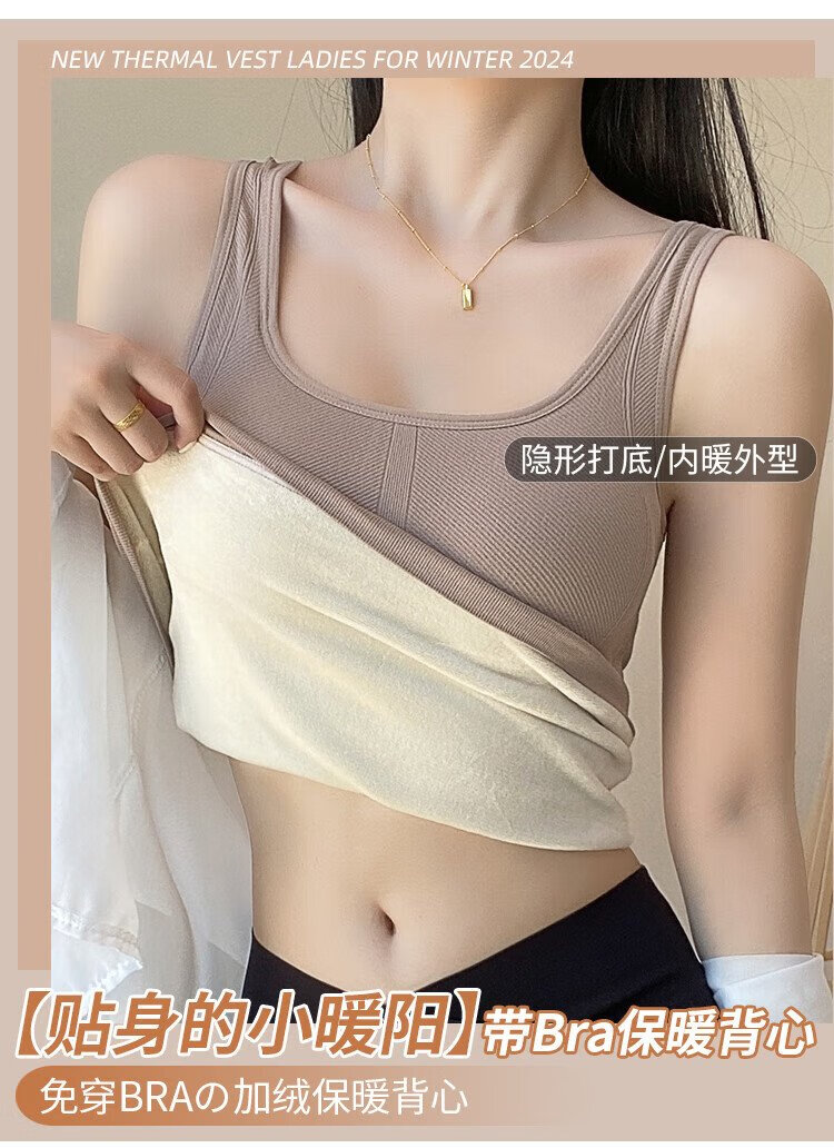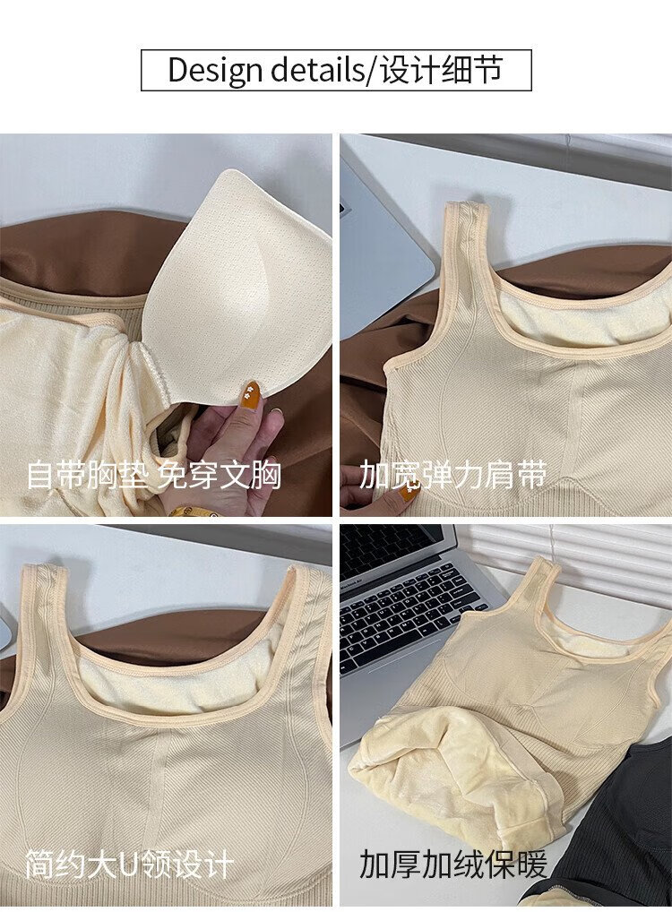 Urban Beauty Bra-free Warm Vest Women's Autumn and Winter Velvet Thickened Outer Wear Bottoming Inner Slim Fit Belt Padded Suspender