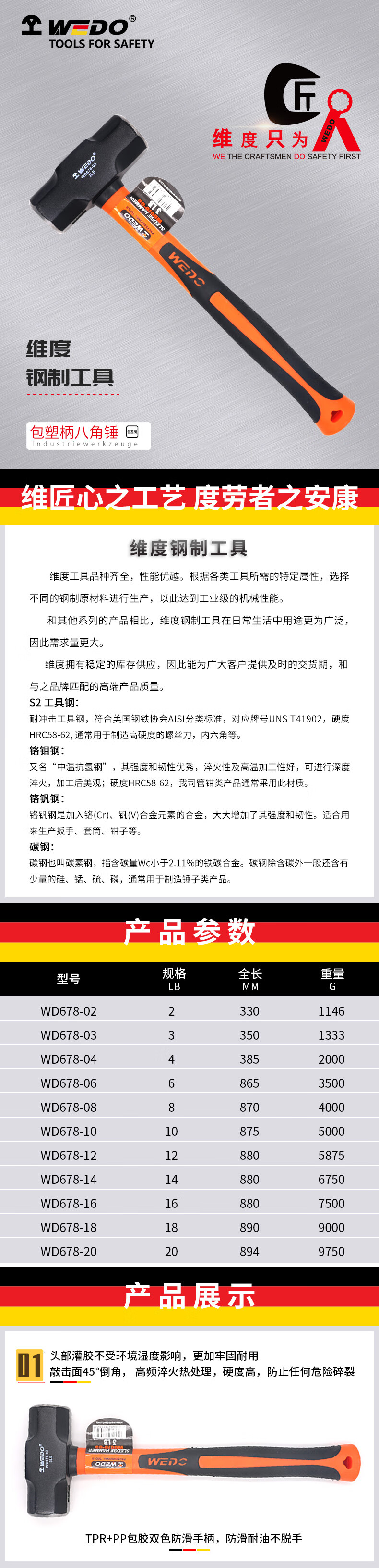 Dimensions Plastic-coated handle octagonal hammer 4 WD678-04