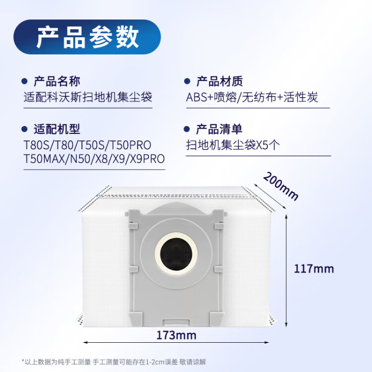 Shuangwei adapts to Ecovacs dust bag with T80S/T80/T50PRO/T50S/T50MAX/N50/X8/X9/X9PRO 5-pack KWS dust bag-T80
