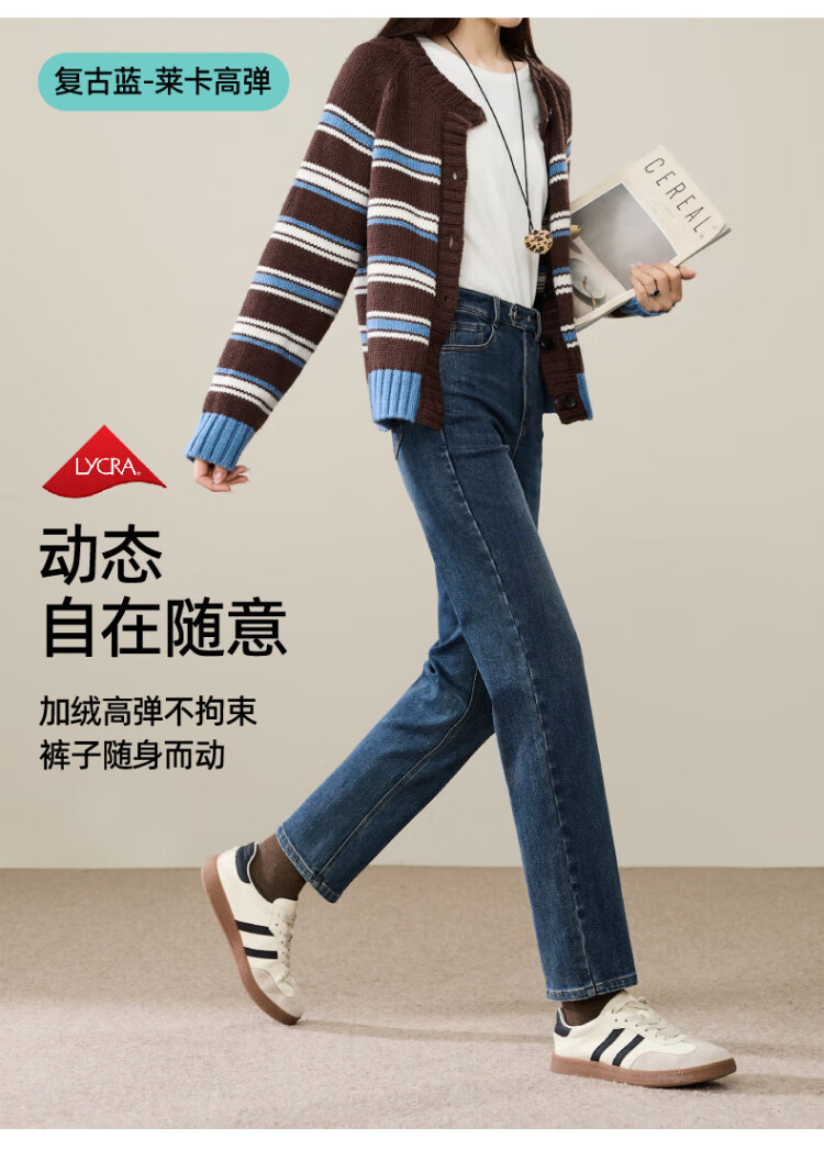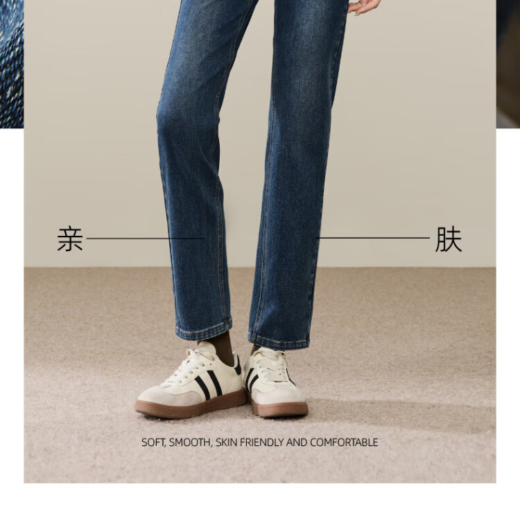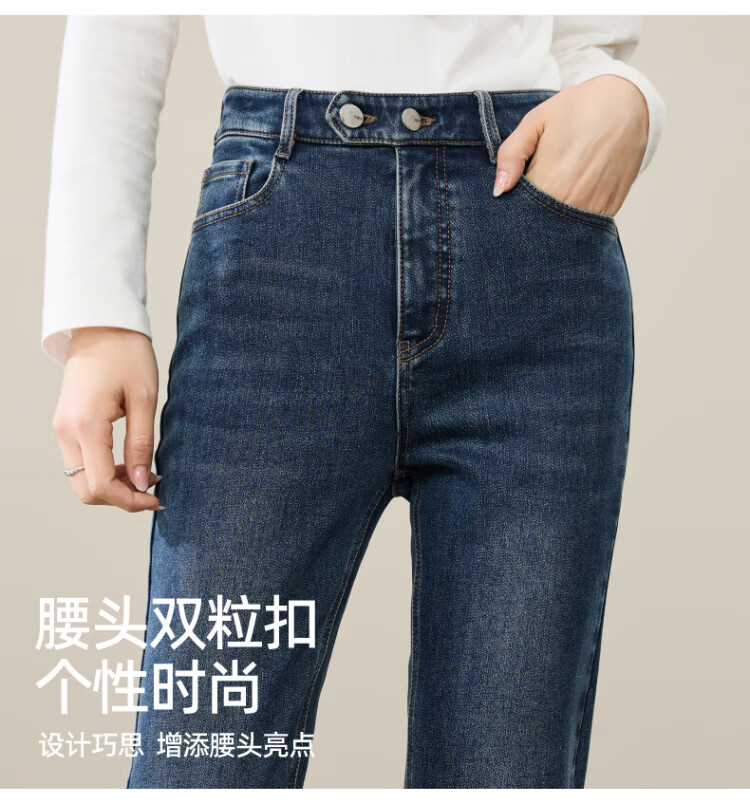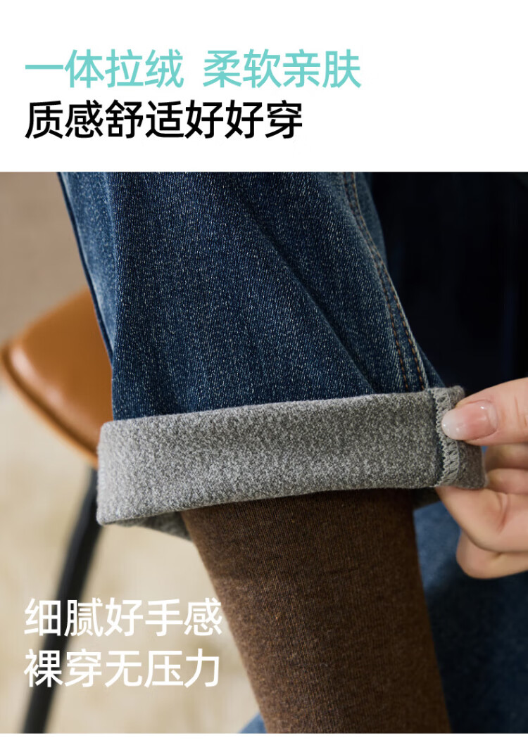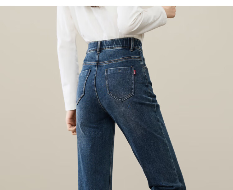 Yiyang (ESE-Y) Lycra stretch straight jeans for women plus velvet to keep warm 25 years new winter cigarette pipe pants black 28