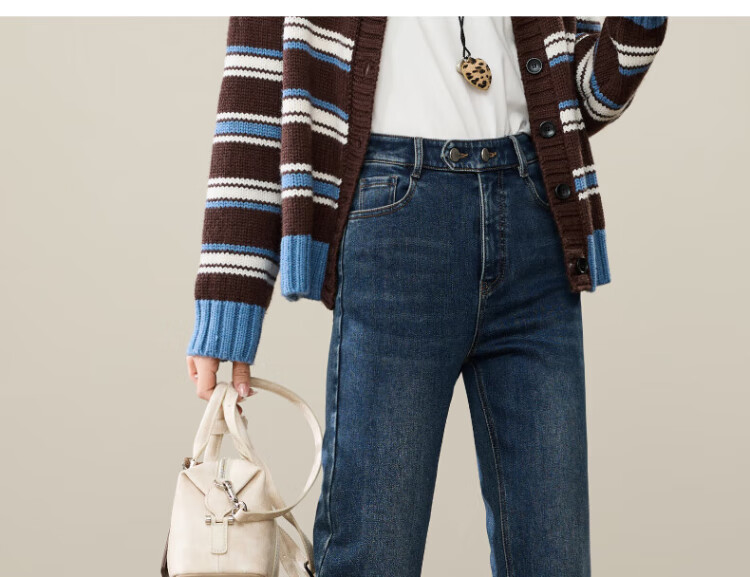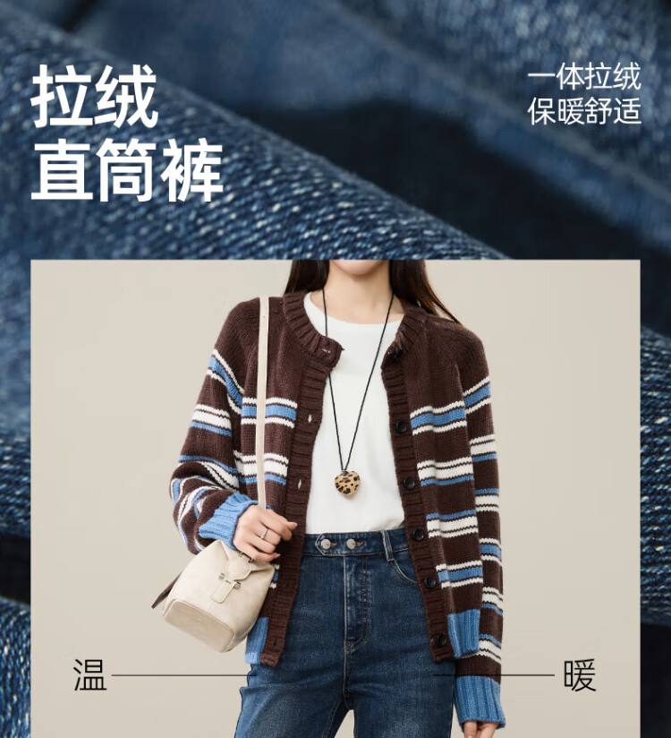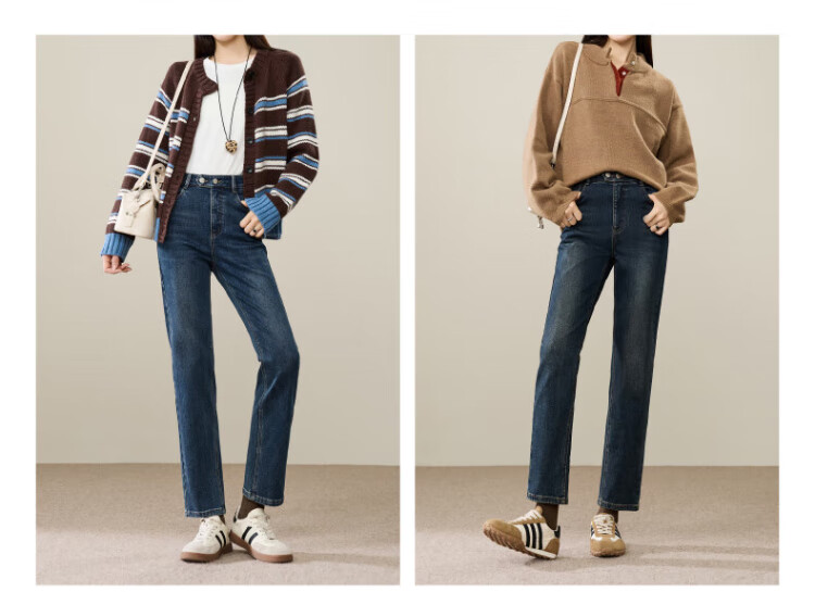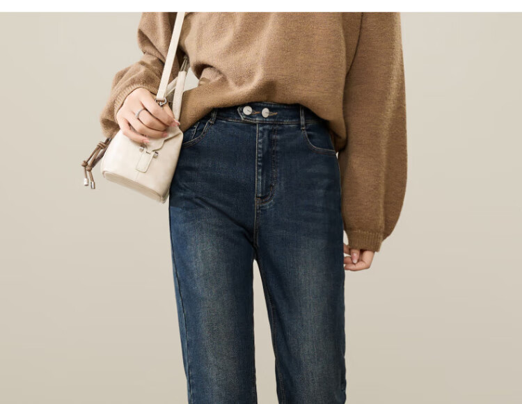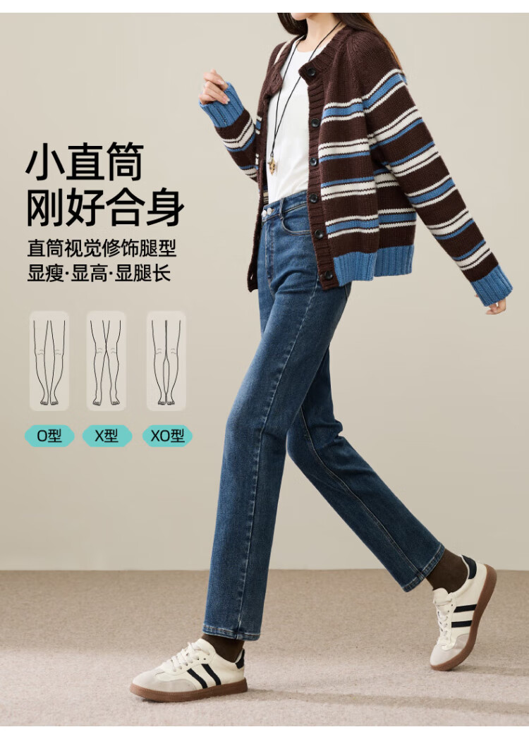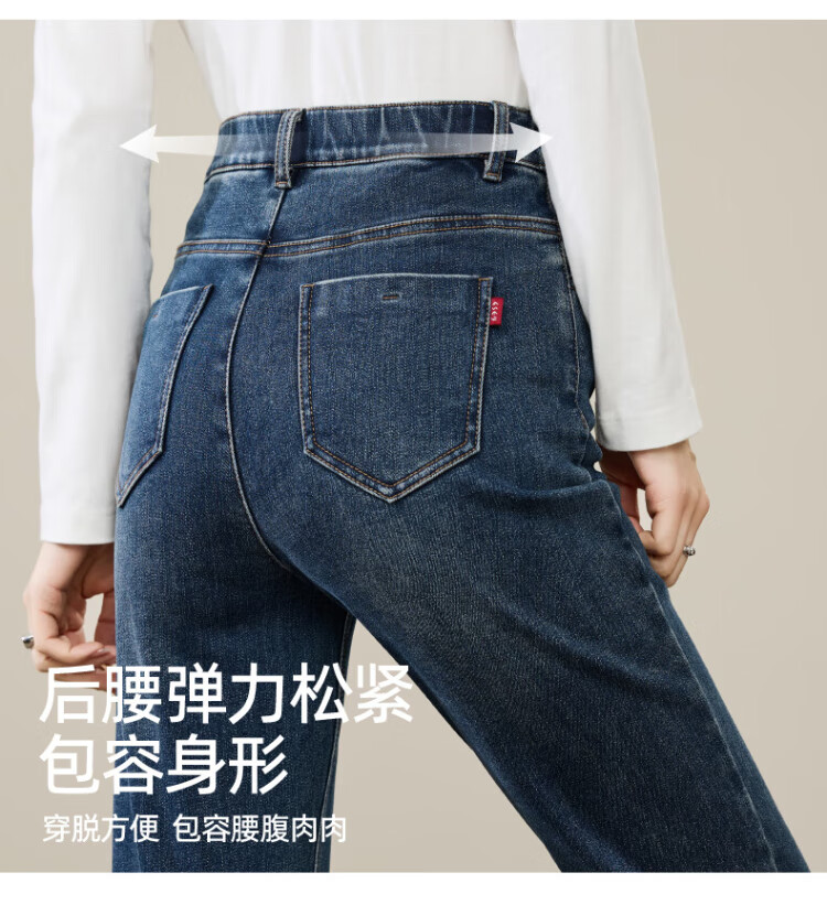 Yiyang (ESE-Y) Lycra stretch straight jeans for women plus velvet to keep warm 25 years new winter cigarette pipe pants black 28