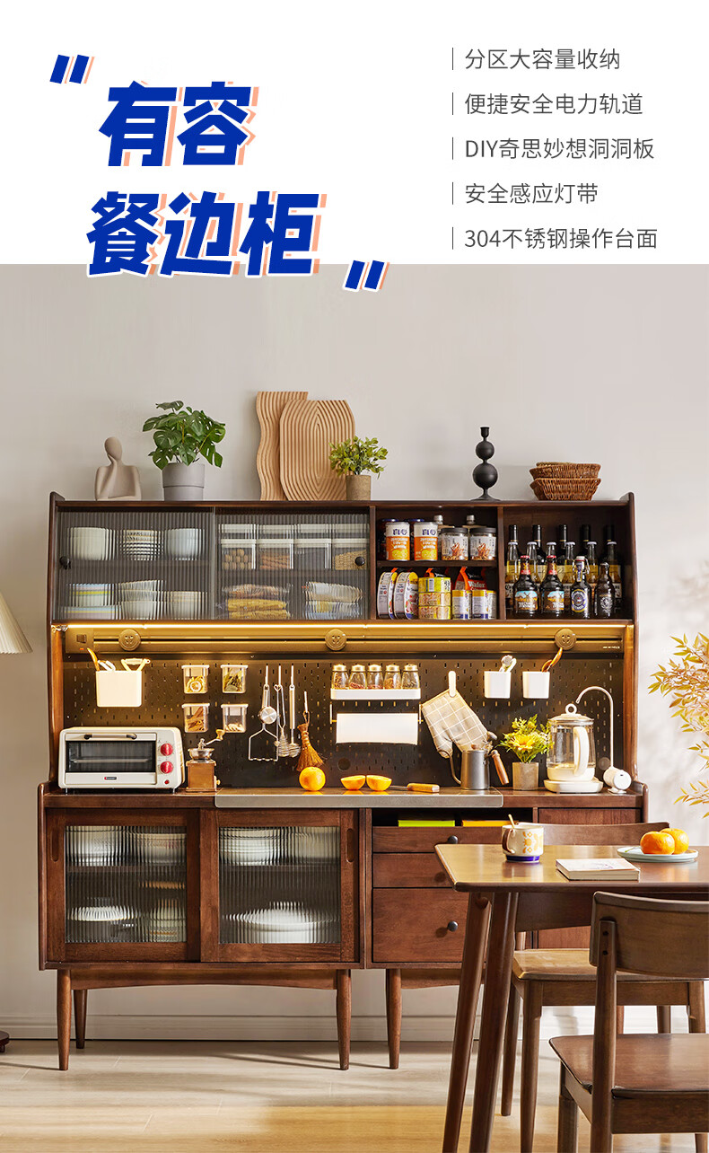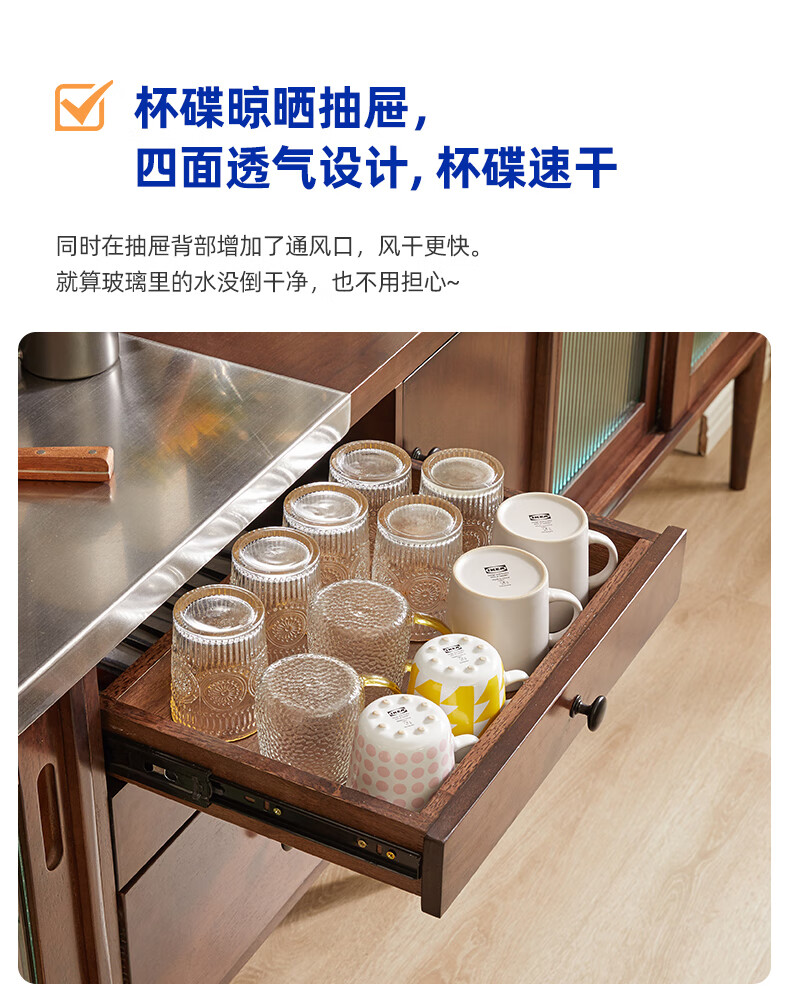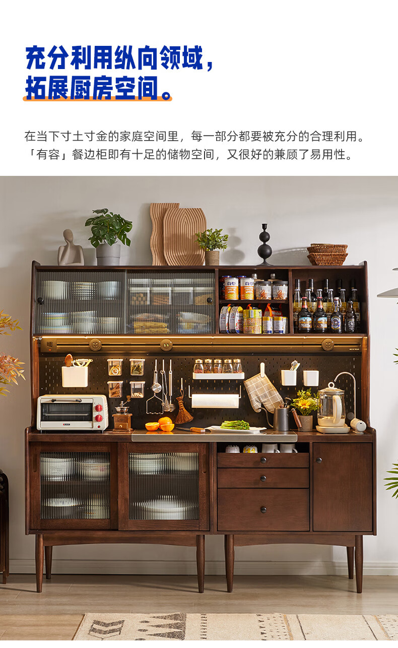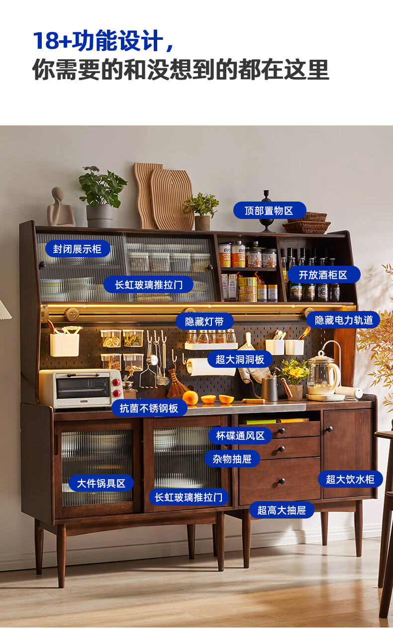 家逸餐边柜实木酒柜多功能储物柜收纳茶水碗柜餐厅置物架下柜1.8米