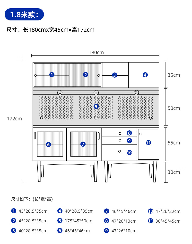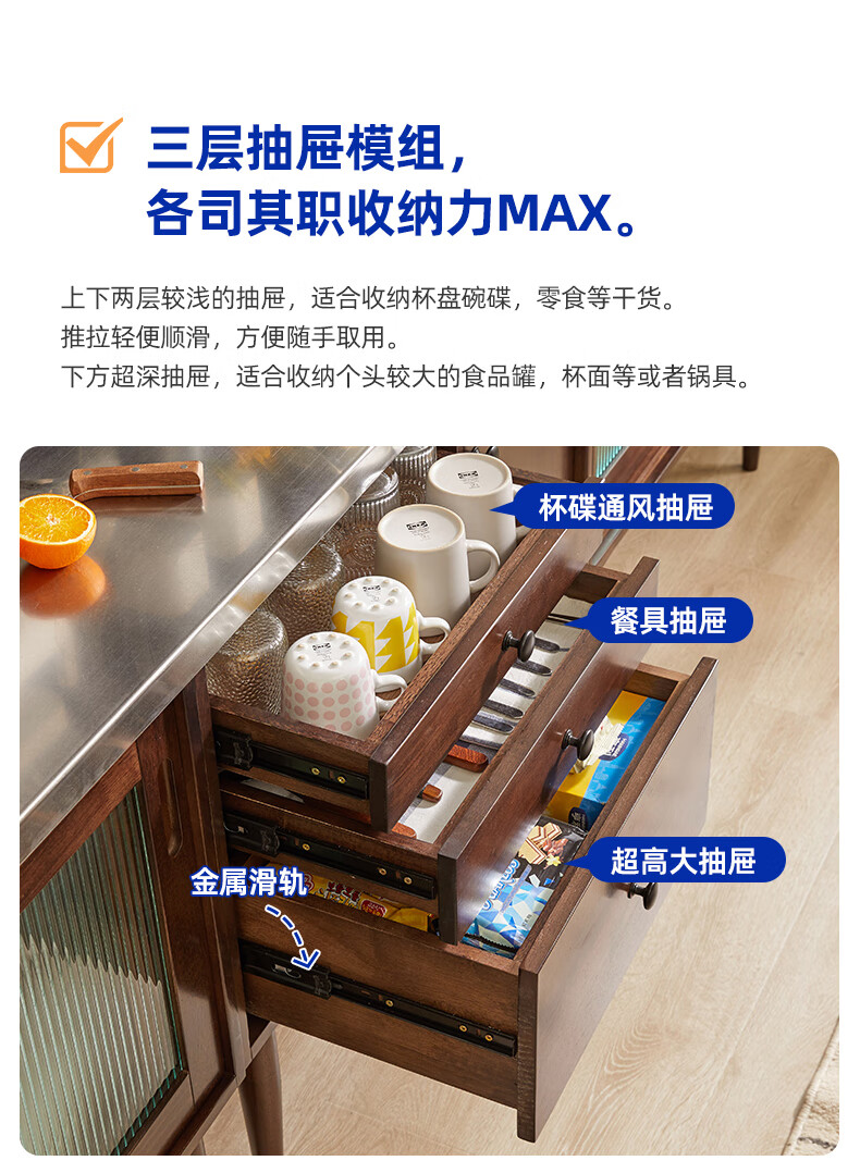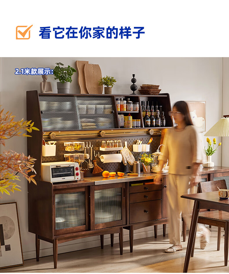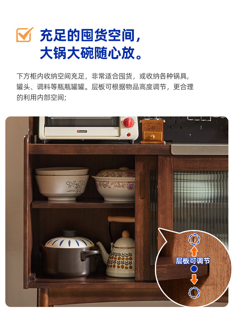 家逸餐边柜实木酒柜多功能储物柜收纳茶水碗柜餐厅置物架下柜1.8米