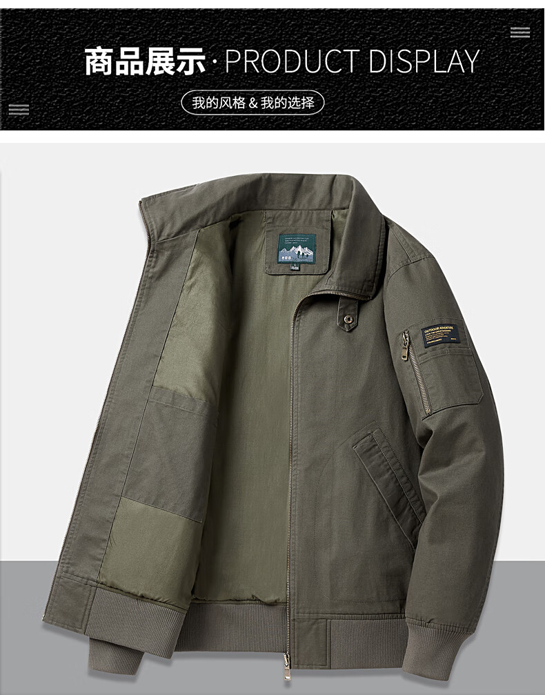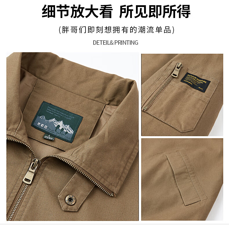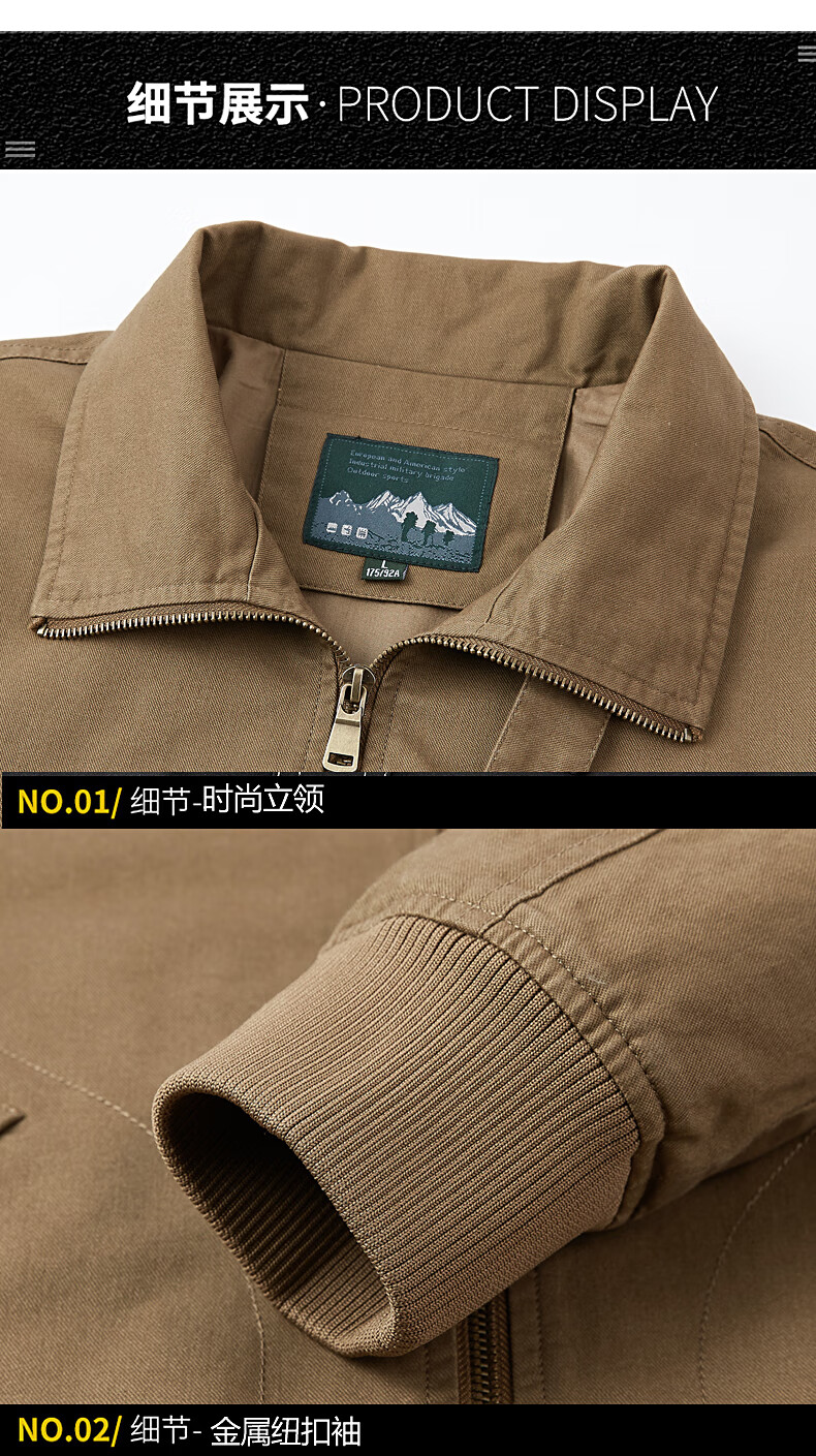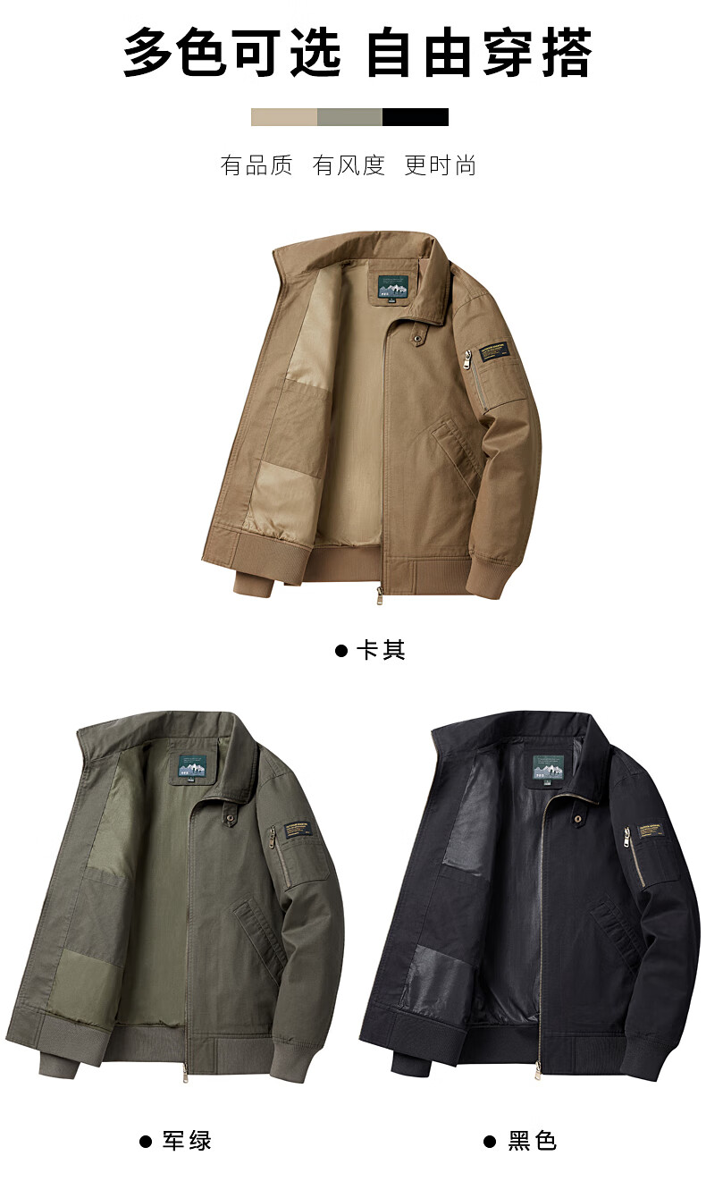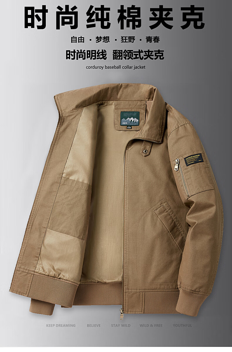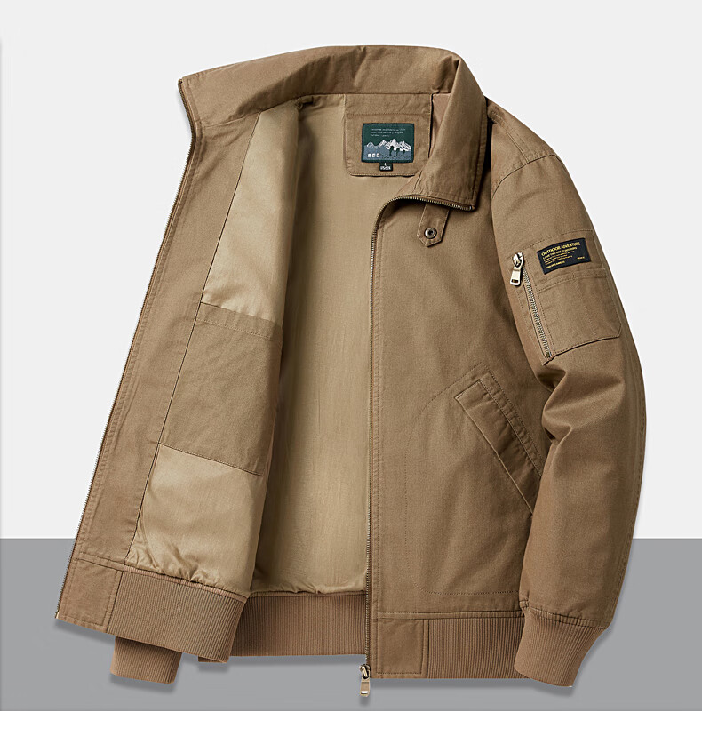 Romon Jacket Men's 2025 New Spring and Autumn Pure Cotton Casual Jacket Stand Collar Loose Large Size Top Khaki L