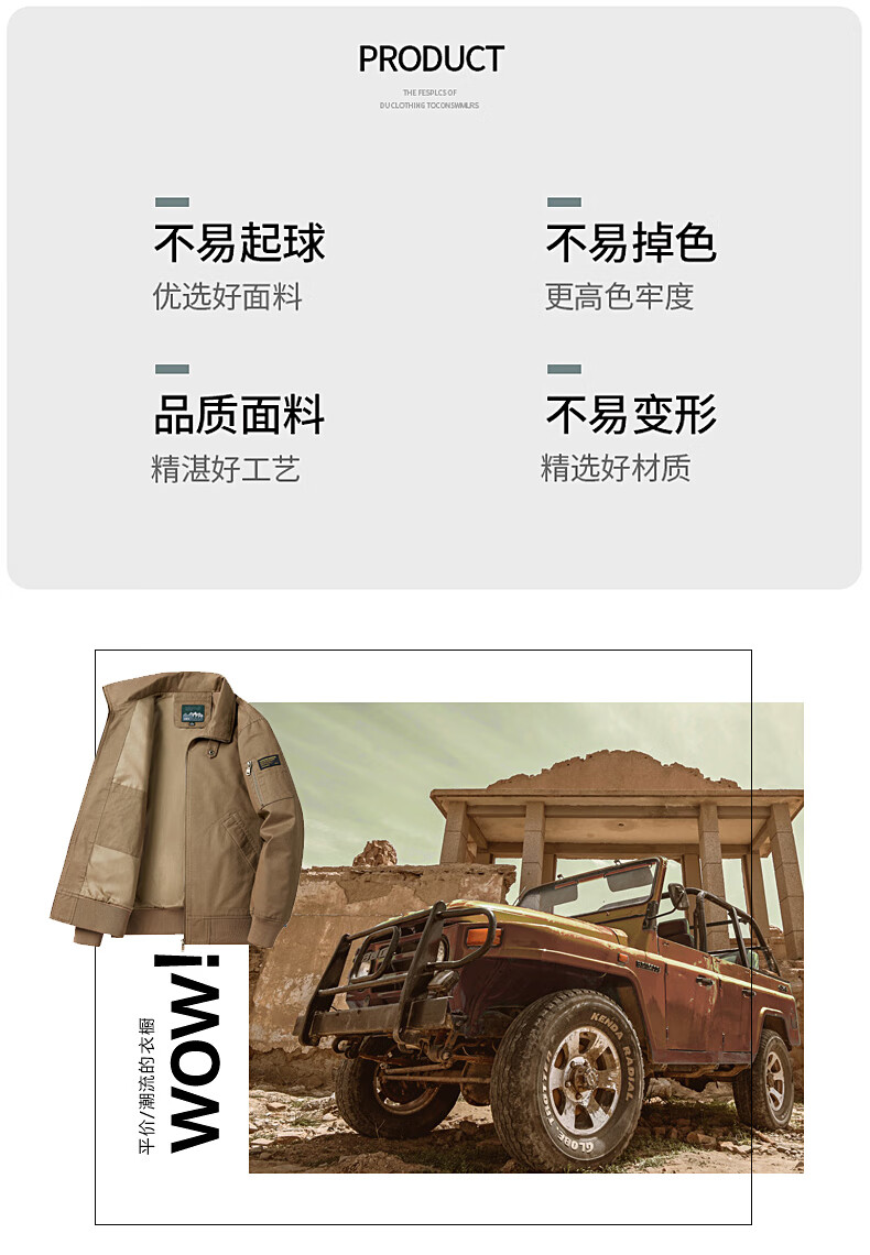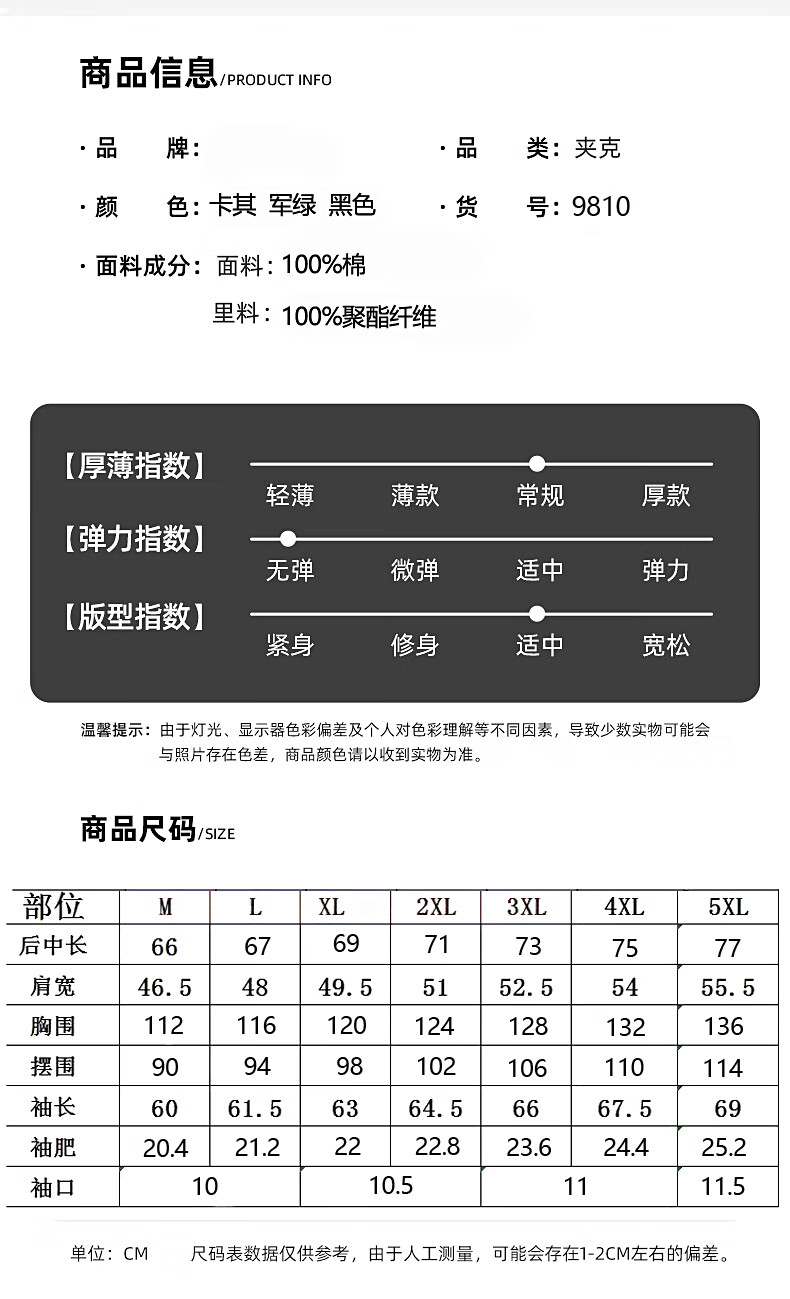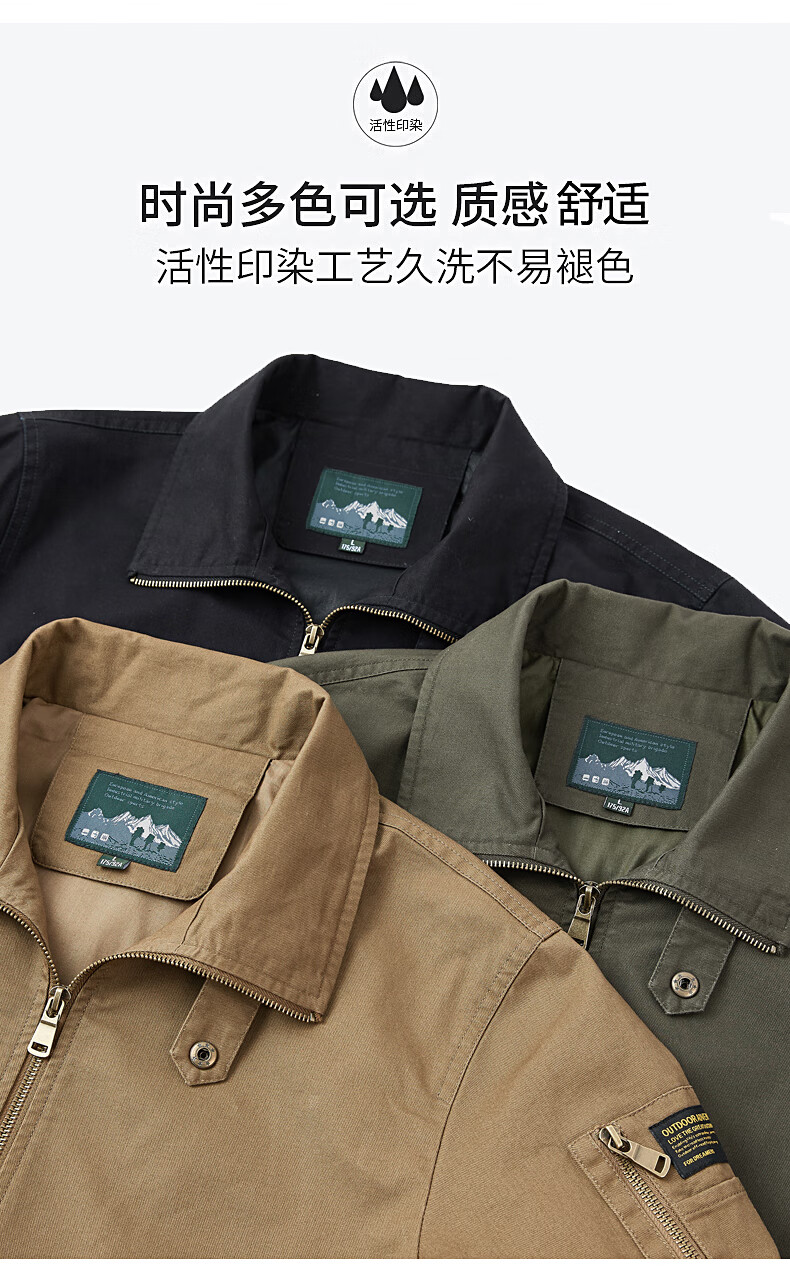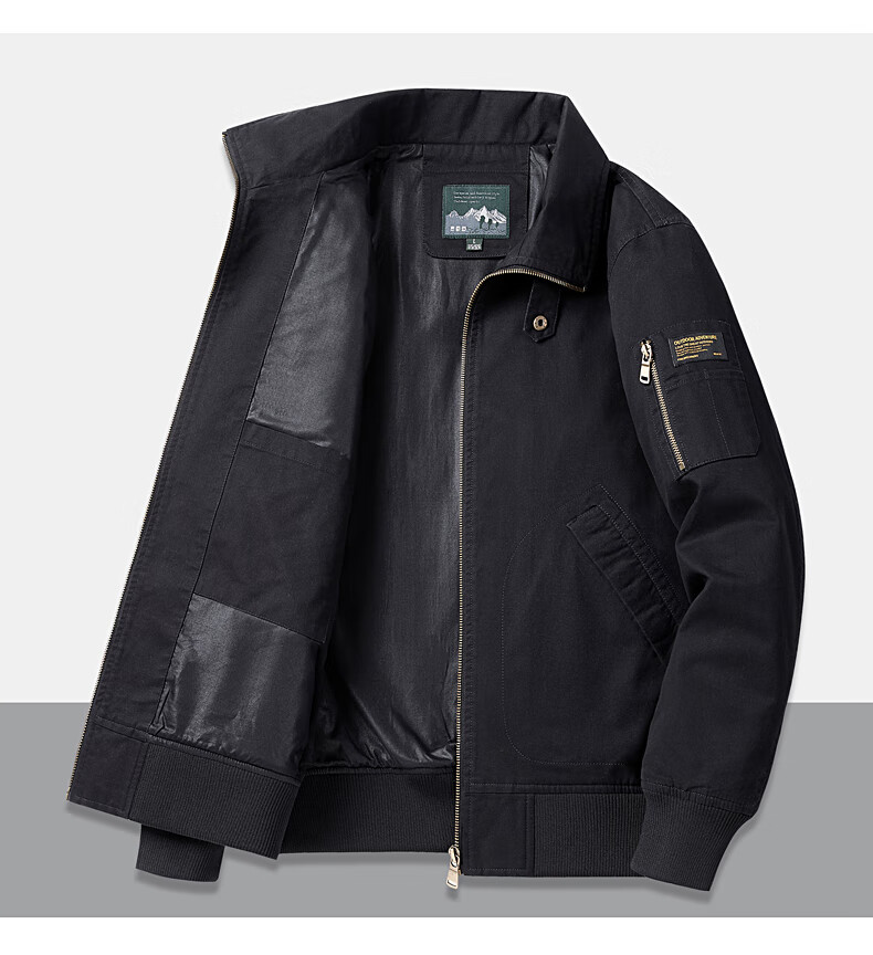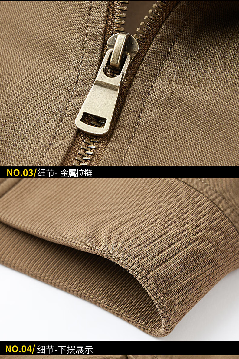 Romon Jacket Men's 2025 New Spring and Autumn Pure Cotton Casual Jacket Stand Collar Loose Large Size Top Khaki L