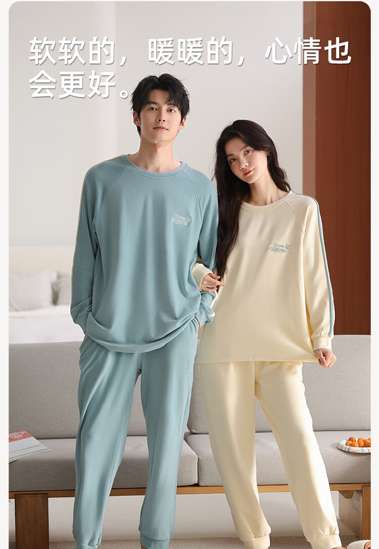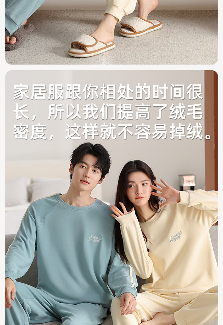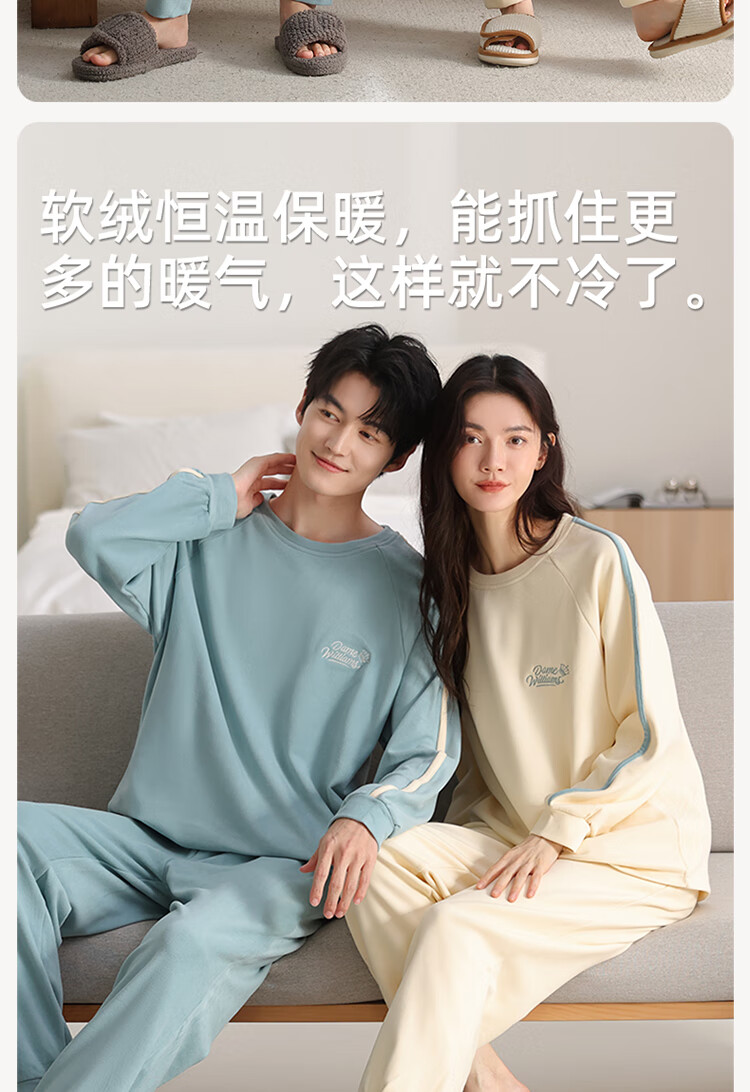Fenton Ke'an couples pajamas new autumn and winter thickened brushed warm men and women thin velvet pullover simple casual home wear set