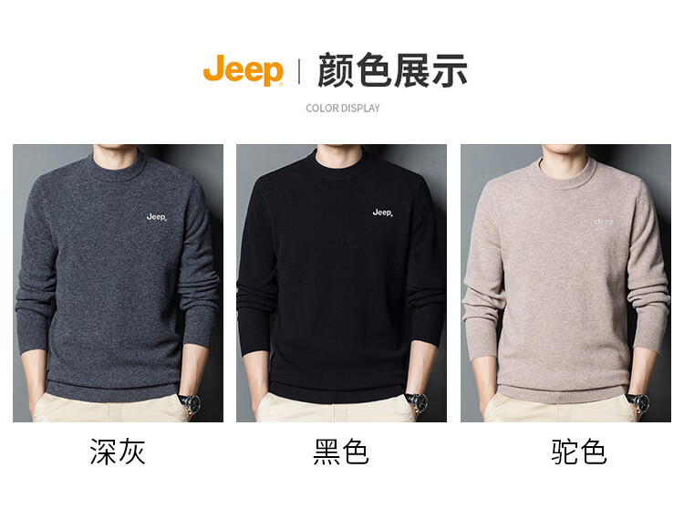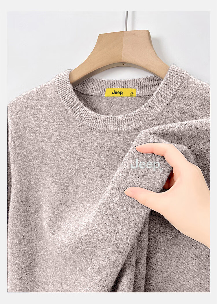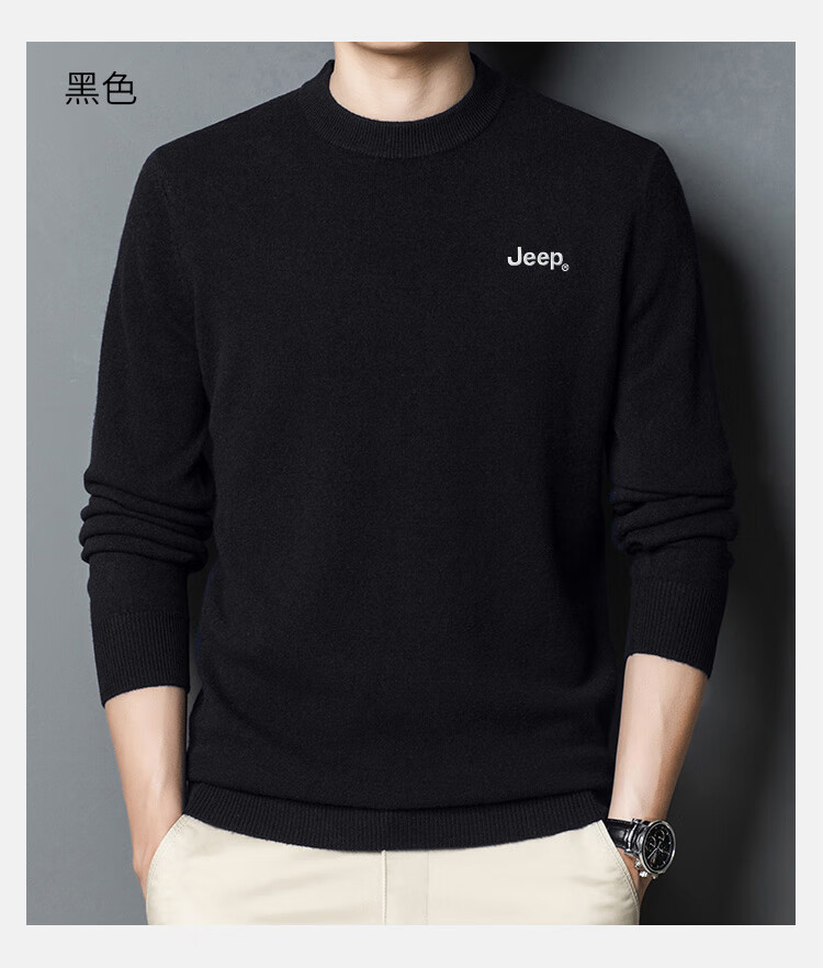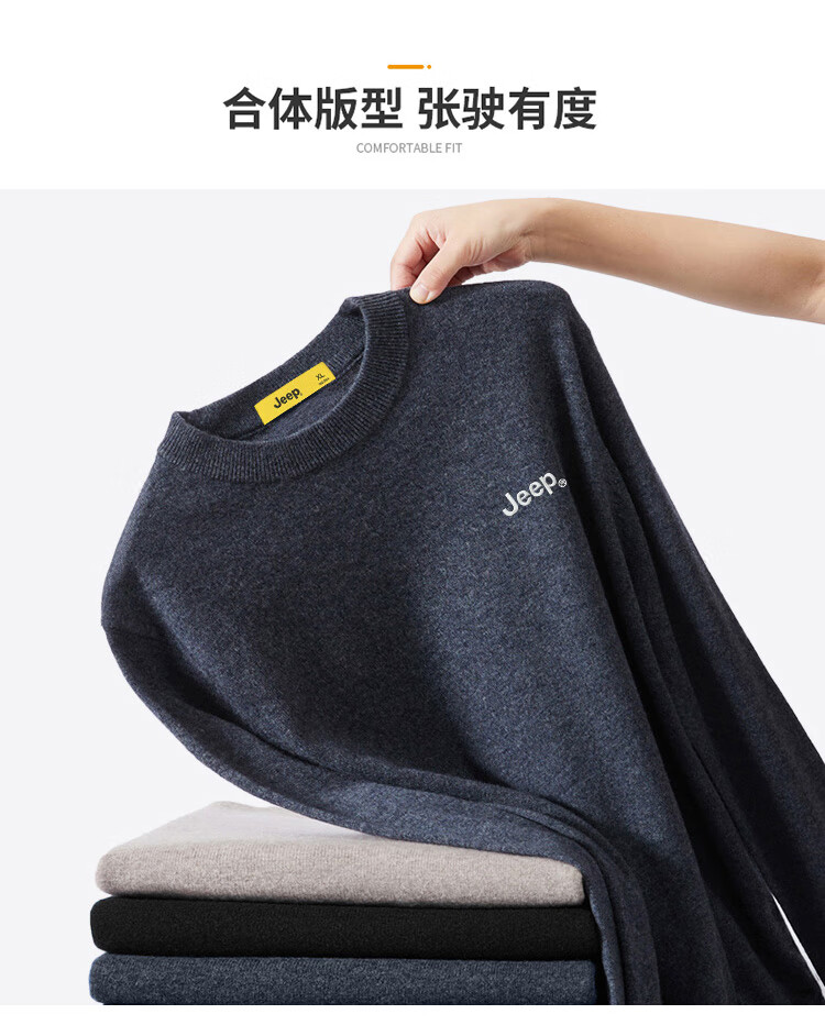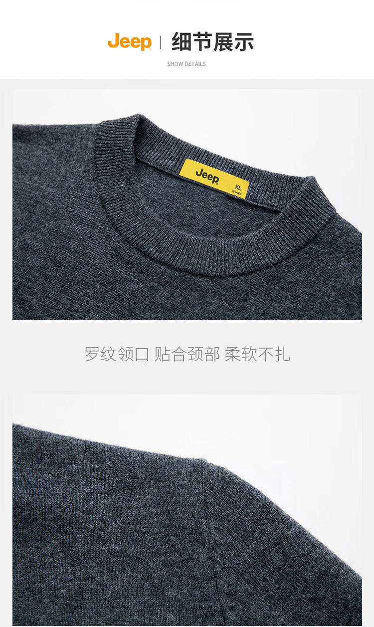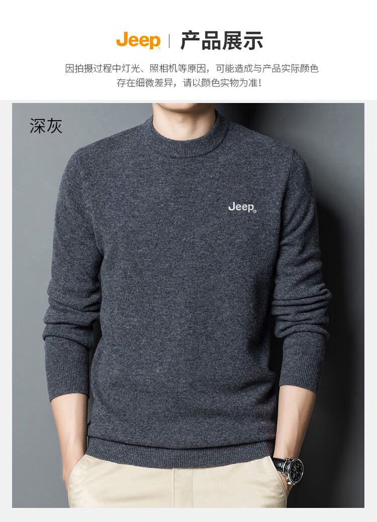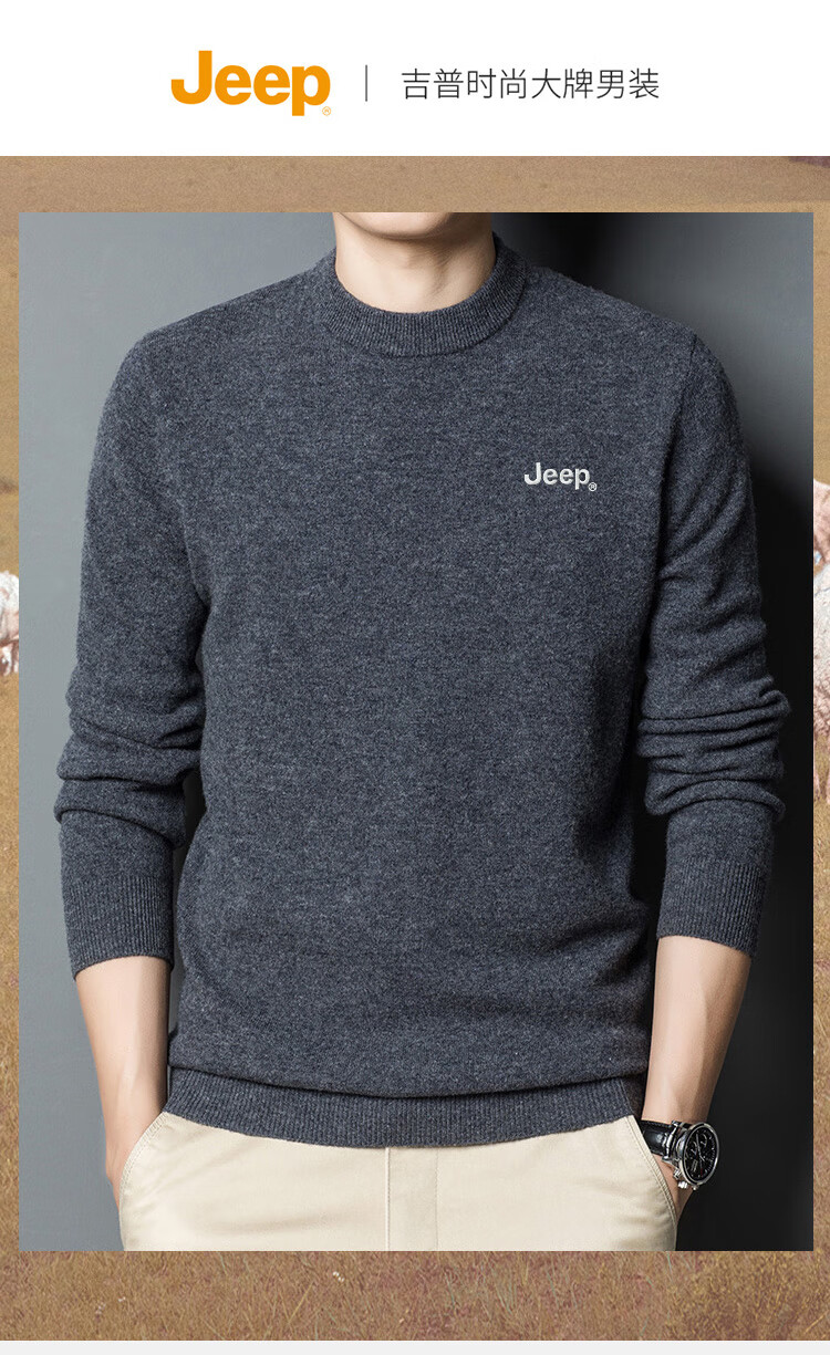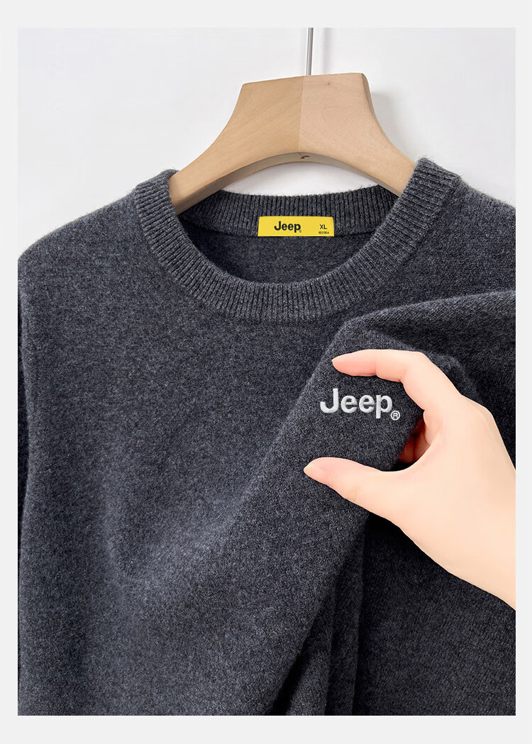 JEEP Jeep Sweater Men's Winter Round Neck Warm Bottoming Shirt Men's Trendy Versatile Clothes Men's Dark Gray XL