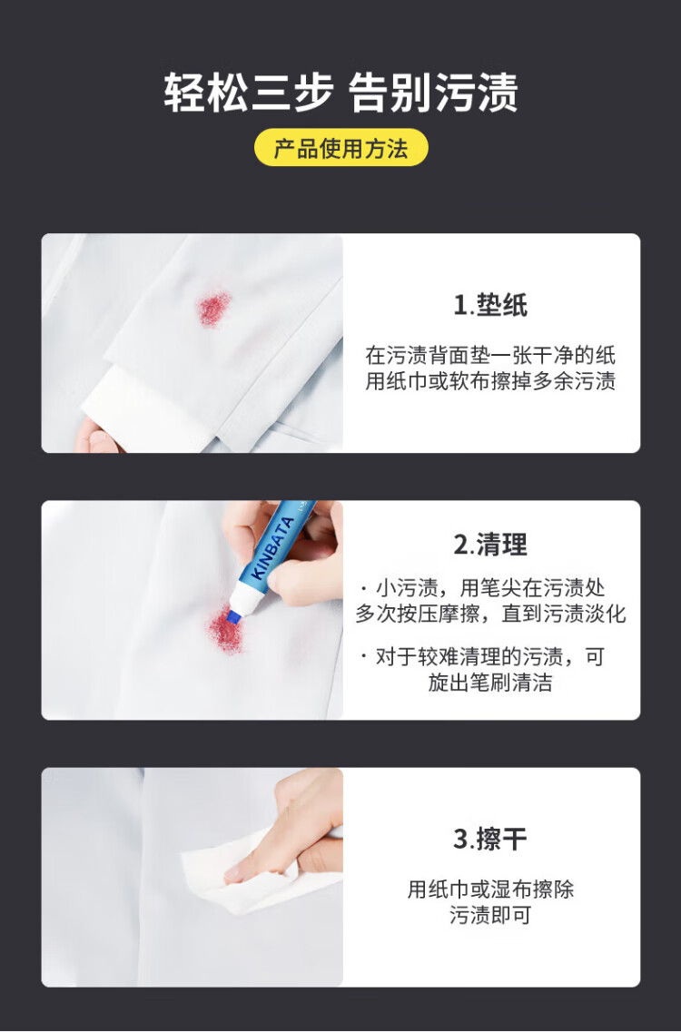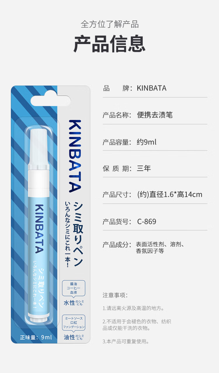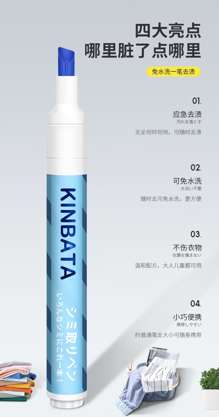 Kinbata stain remover pen clothing stain remover pen clothes degreasing dry cleaning agent no wash portable cleaner