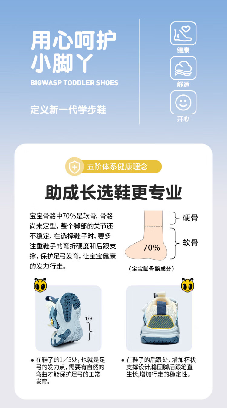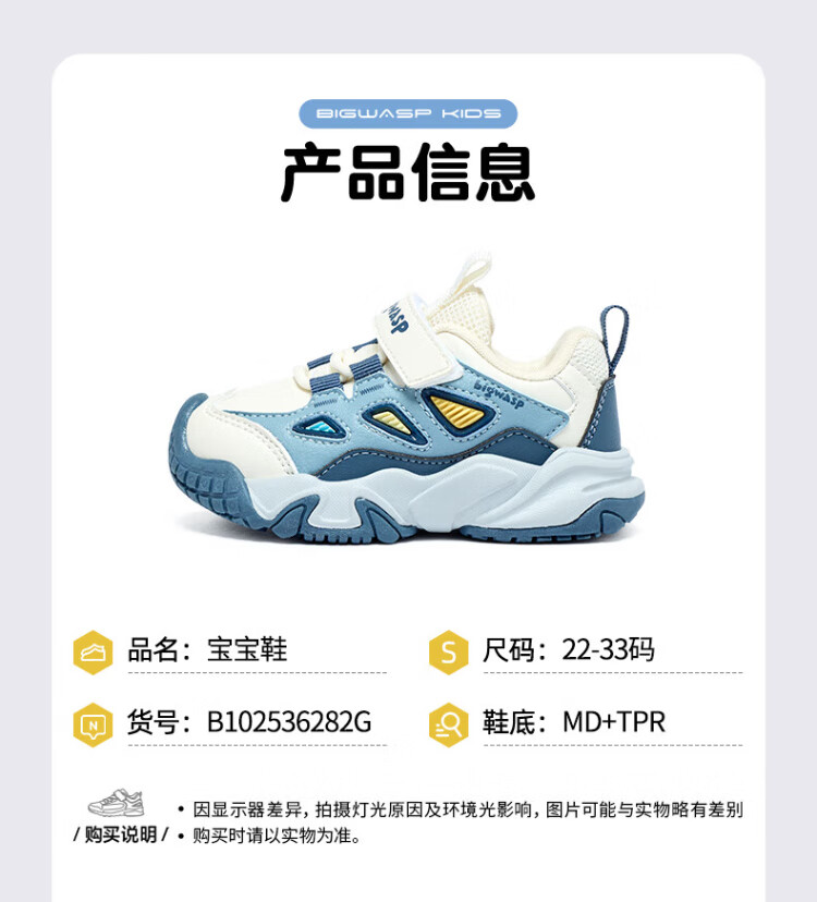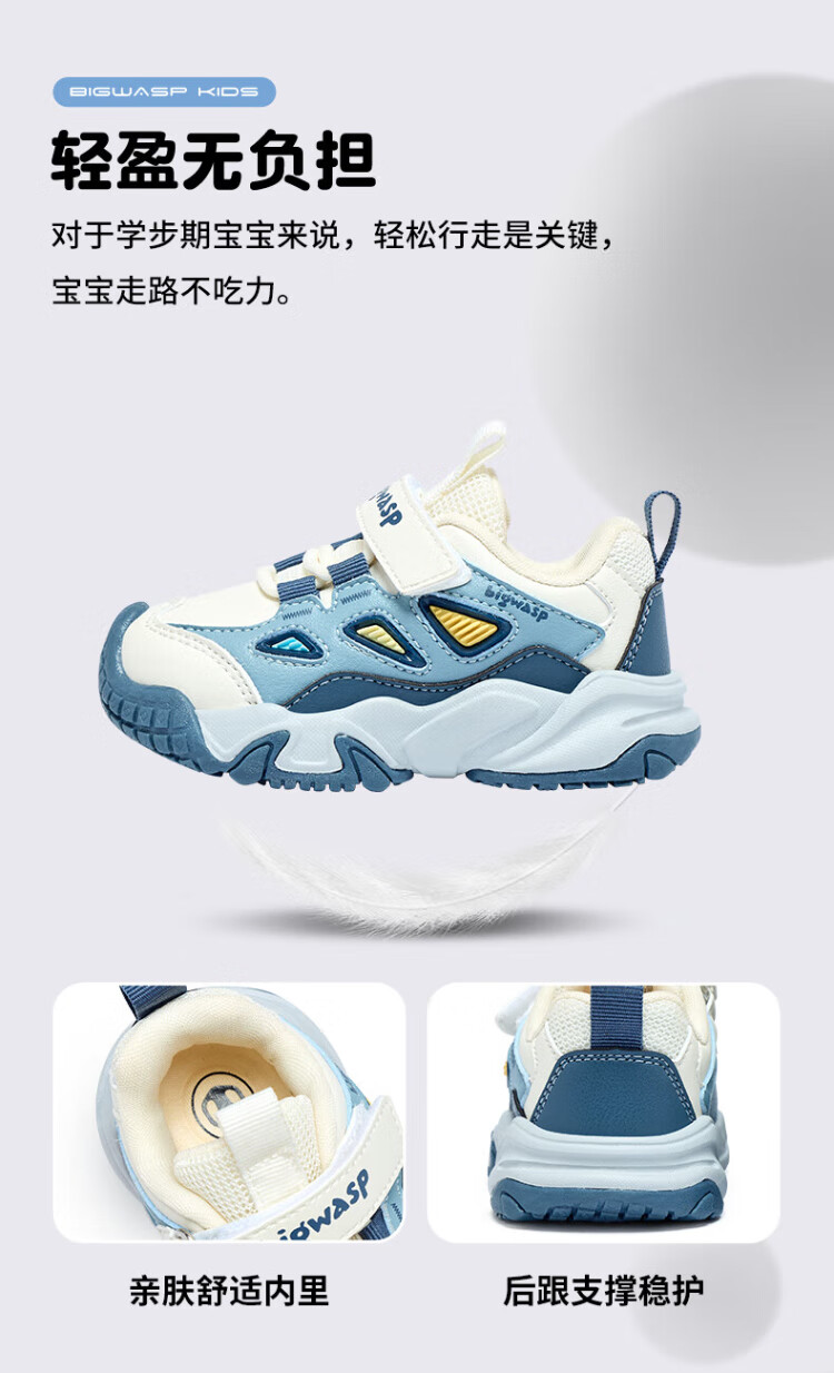 BIG WASP children's shoes functional shoes autumn and winter baby shoes toddler shoes B102536282G haze blue 30