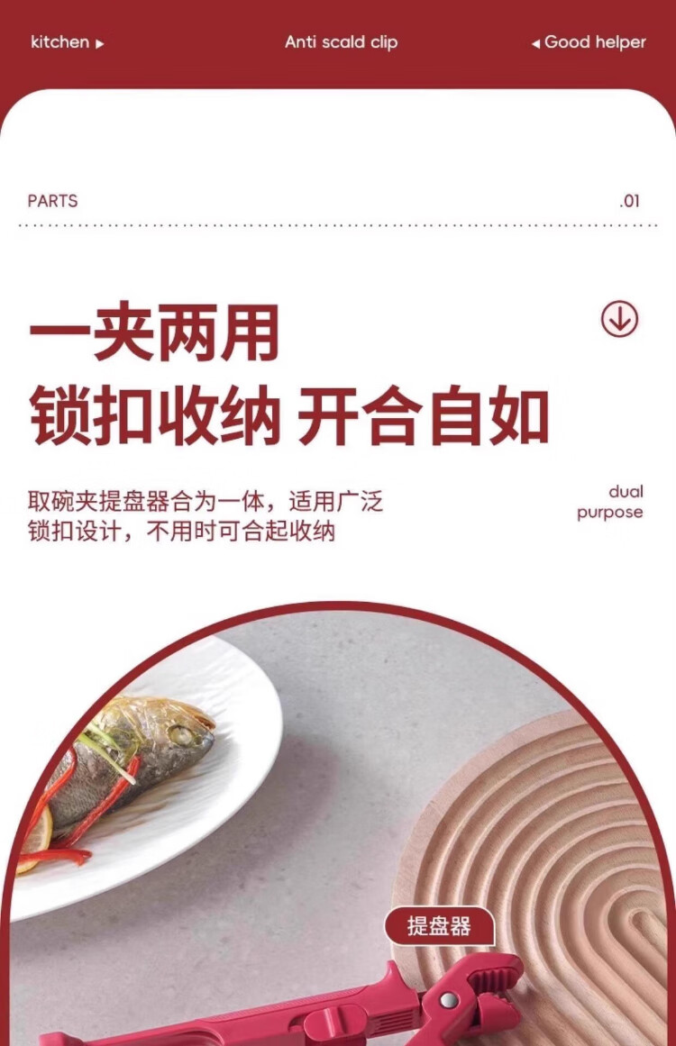 Baijie two-in-one anti-scalding clip, bowl clip, plate lifter, plate clip, bowl clip, steamed vegetable clip, plate pickup artifact