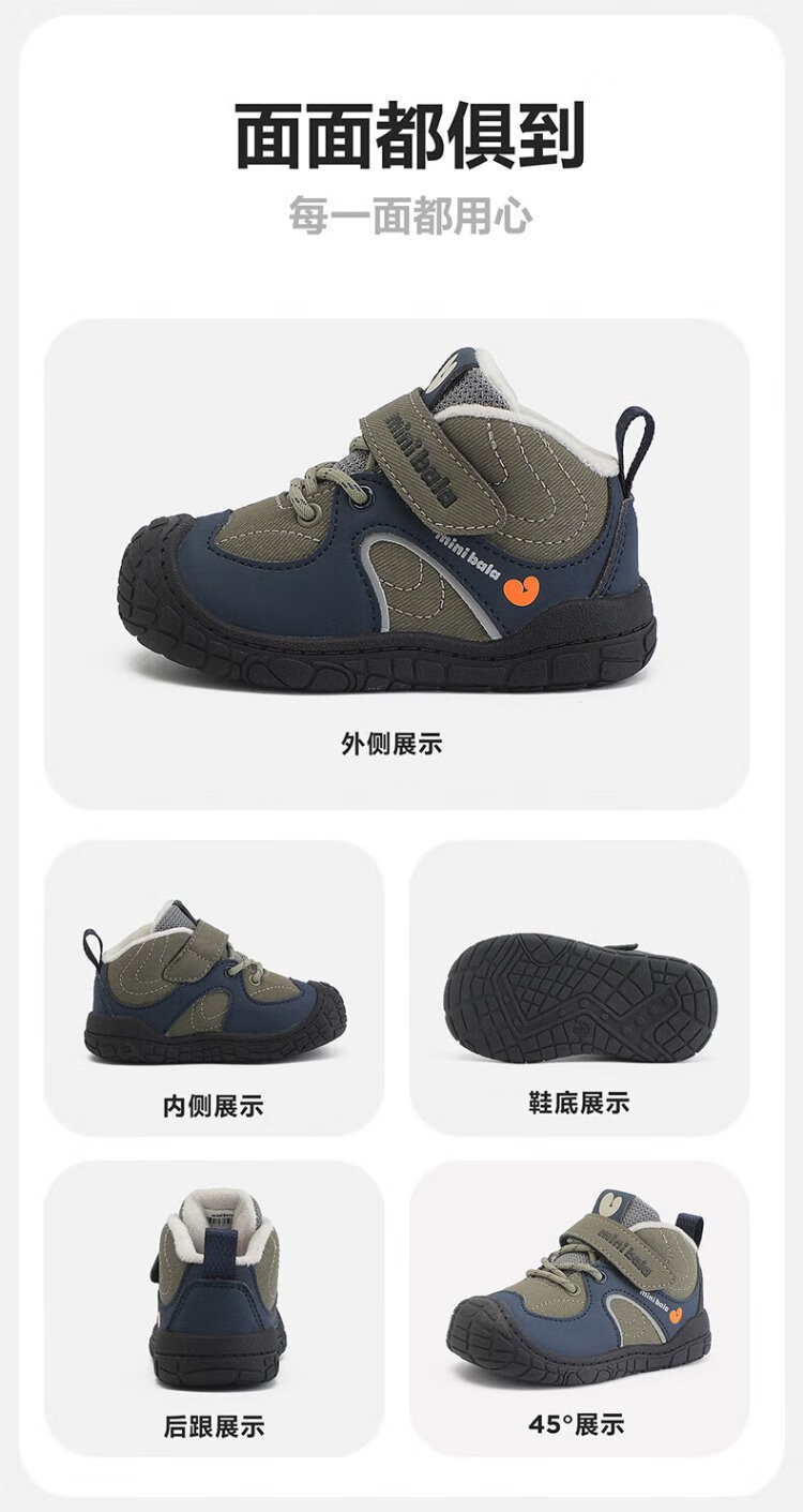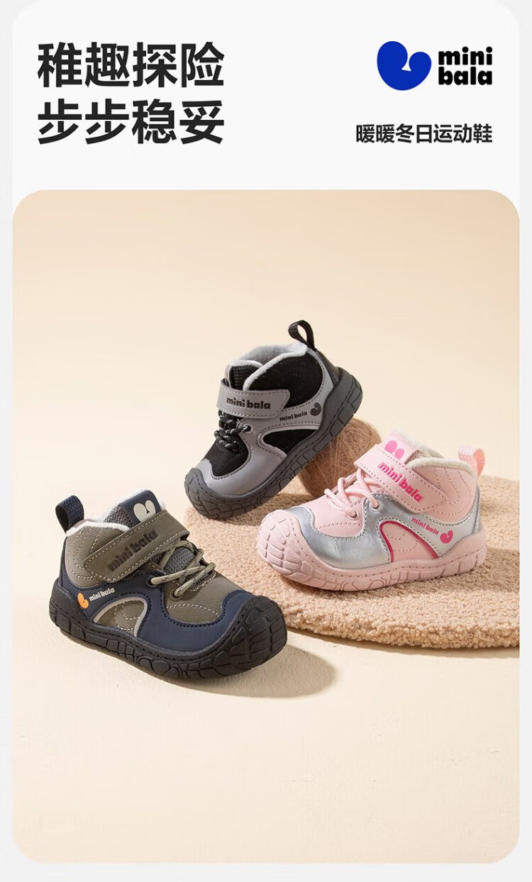 Mini Bala (minibala) winter velvet warm 25 new boys' cotton shoes anti-kick baby toddler shoes children's shoes girls casual shoes