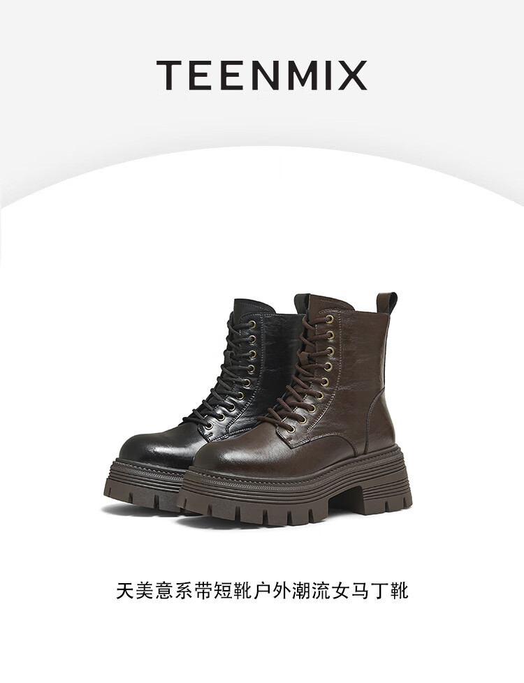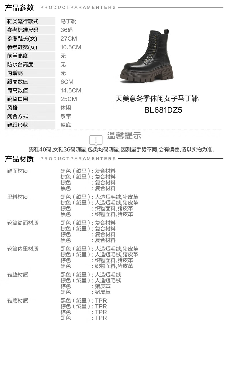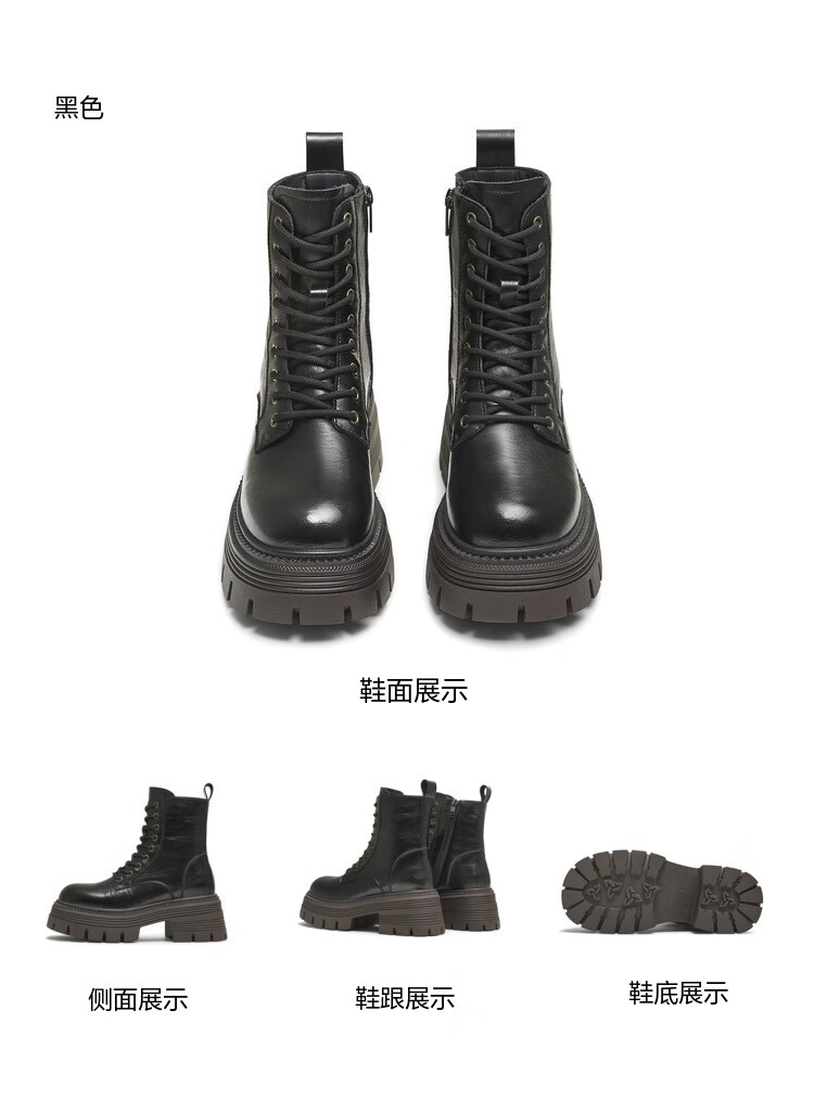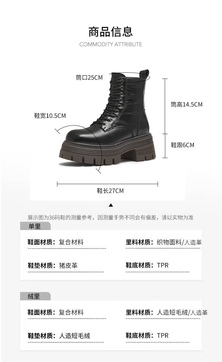 Tianmeiyi Martin boots mall same style lace-up short boots outdoor women's boots new style black (velvet lining) 37