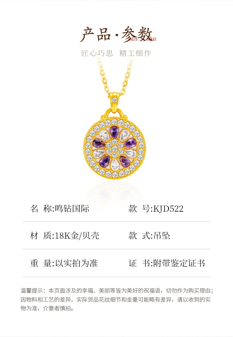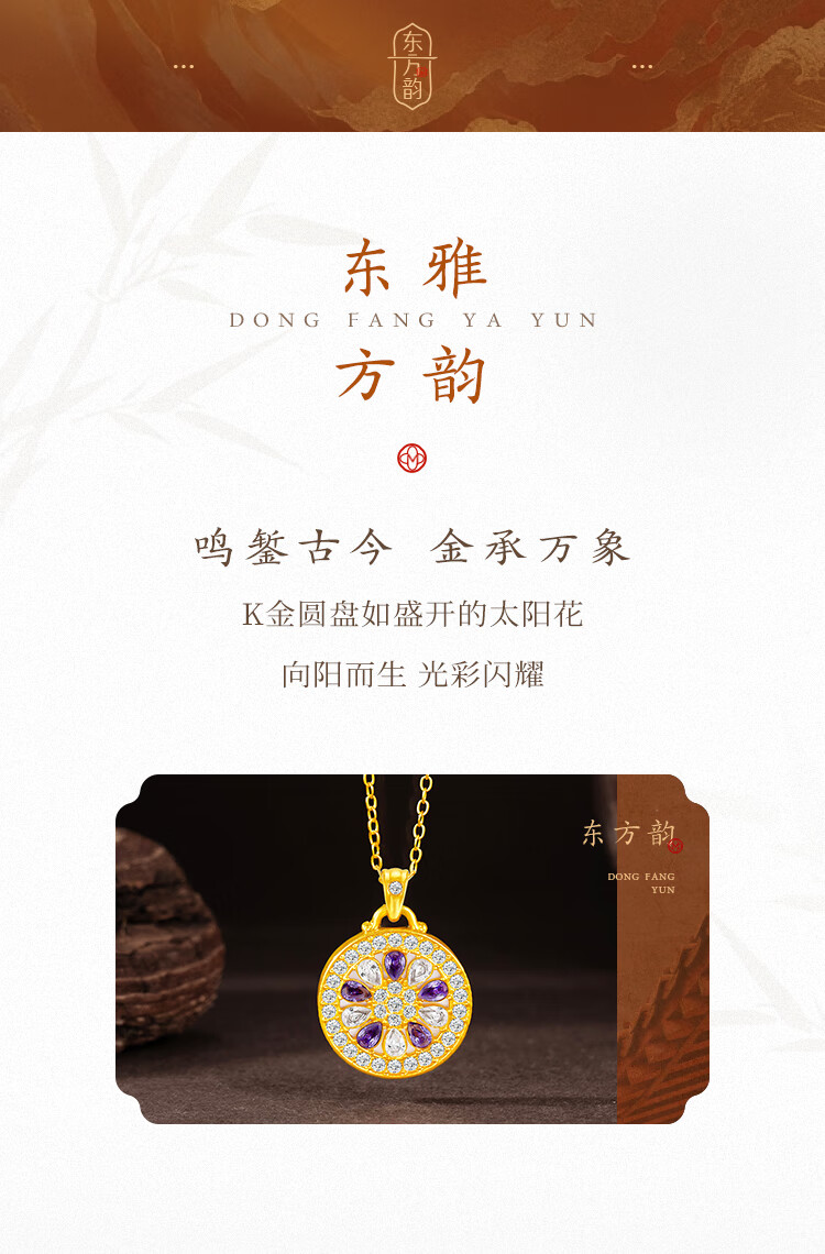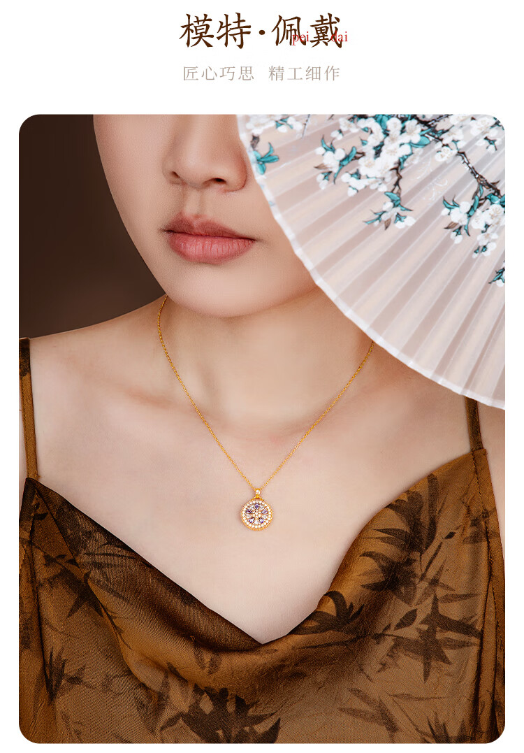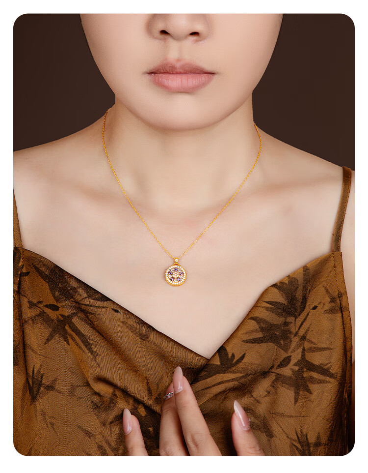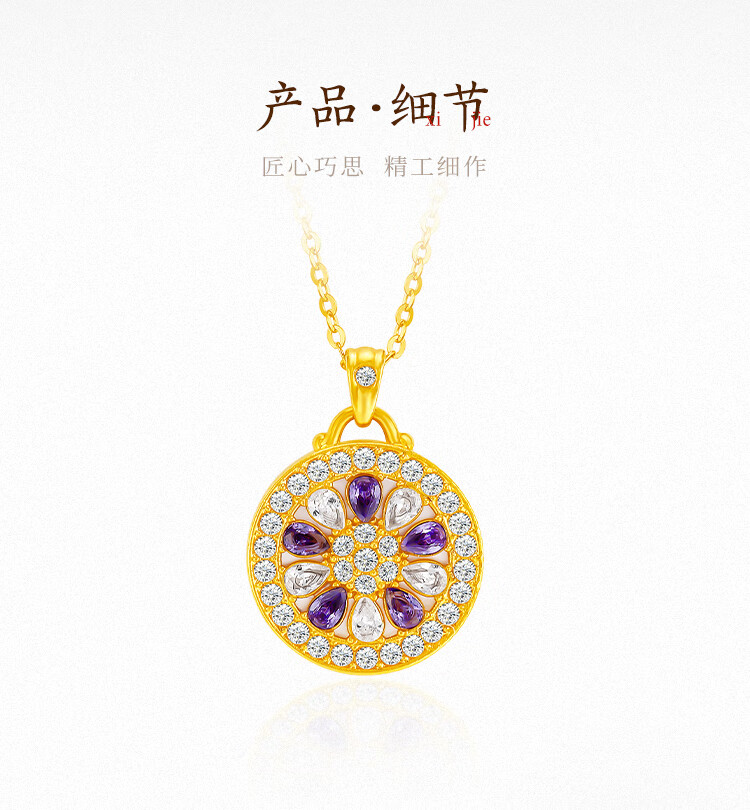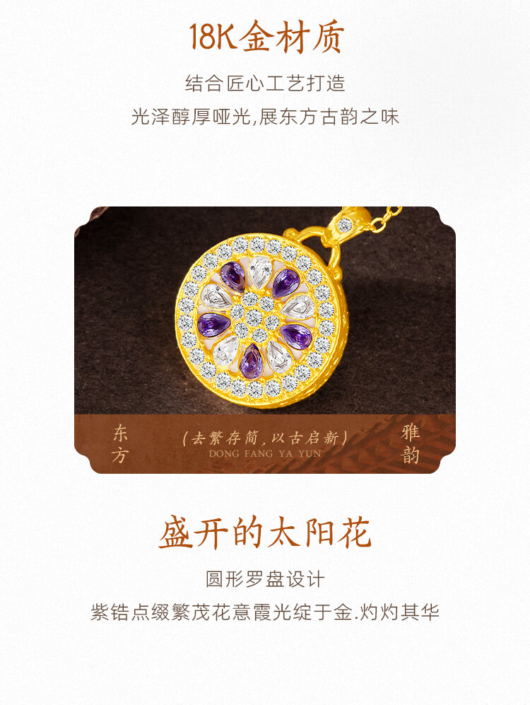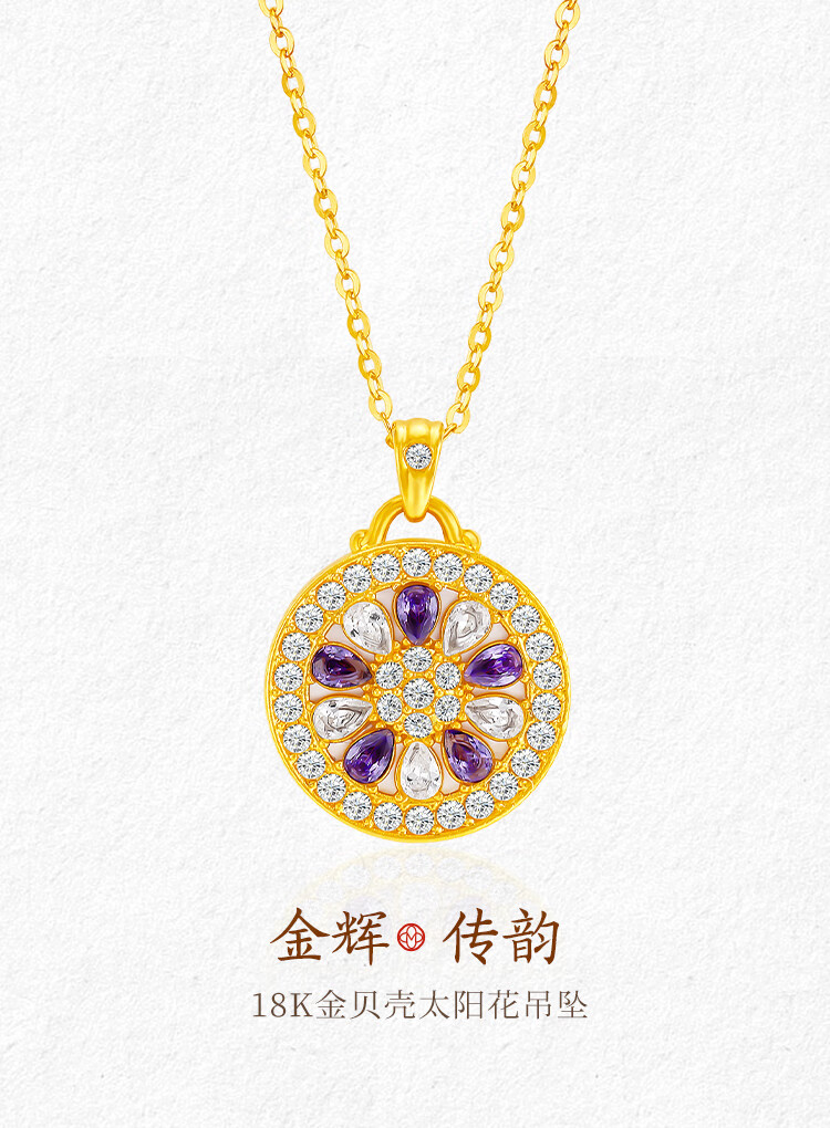Mingzuan International 18K gold shell sunflower pendant female au750 zircon inlaid neck necklace as a birthday gift for girlfriend