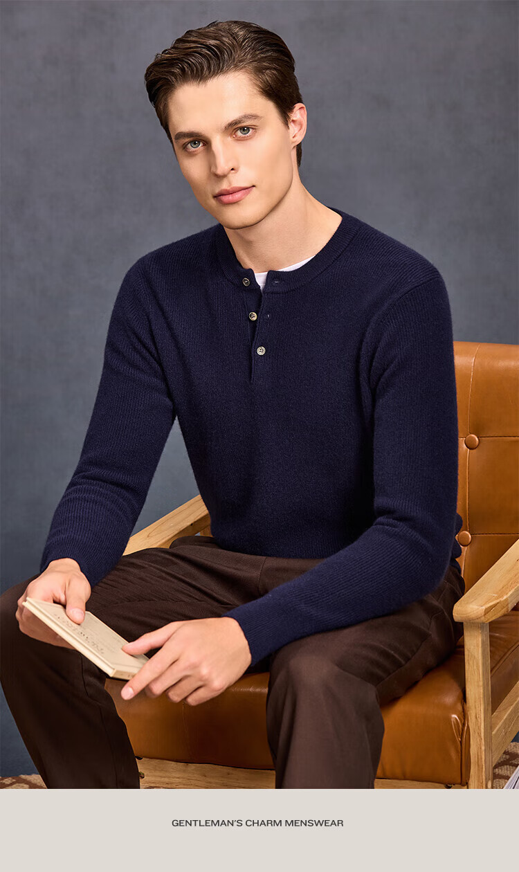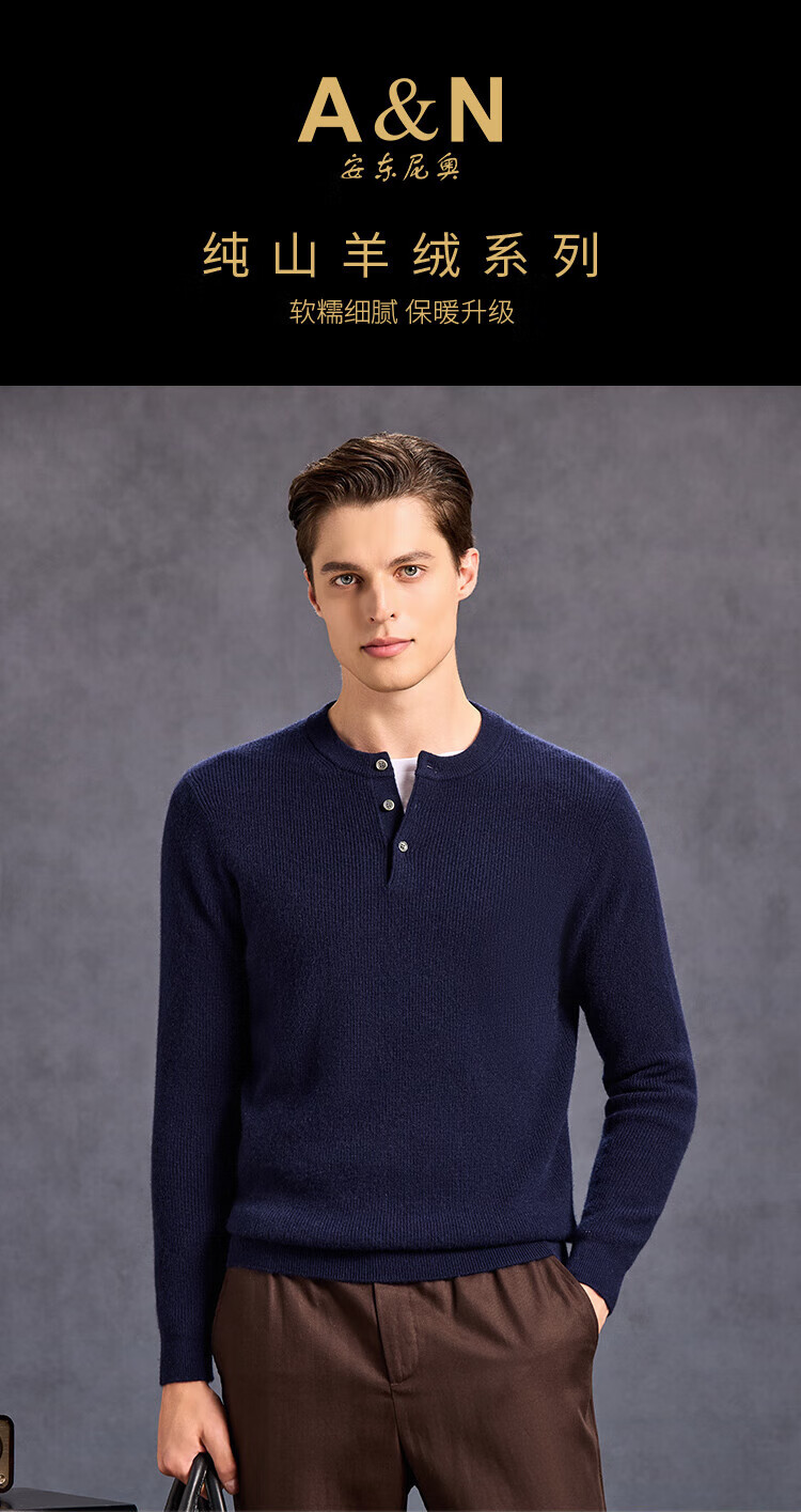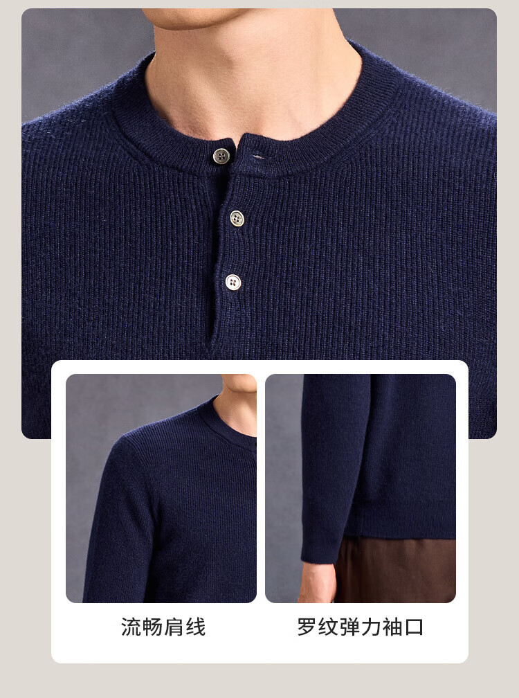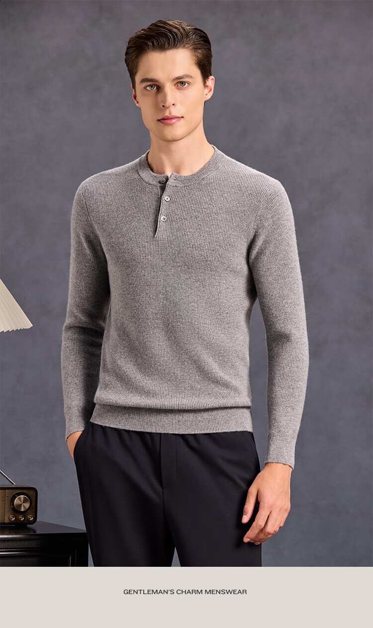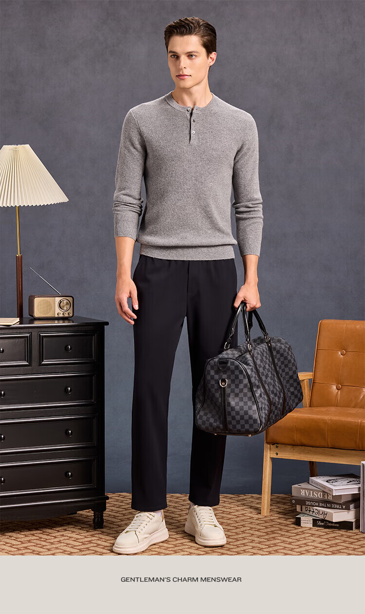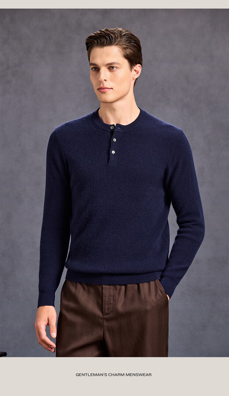 Antonio Cloud Touch & 100% Cashmere Henley Collar Cashmere Sweater Men's Autumn and Winter Warm Skin-Friendly Basement Sweater