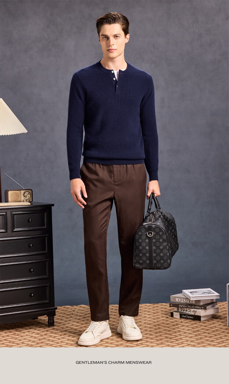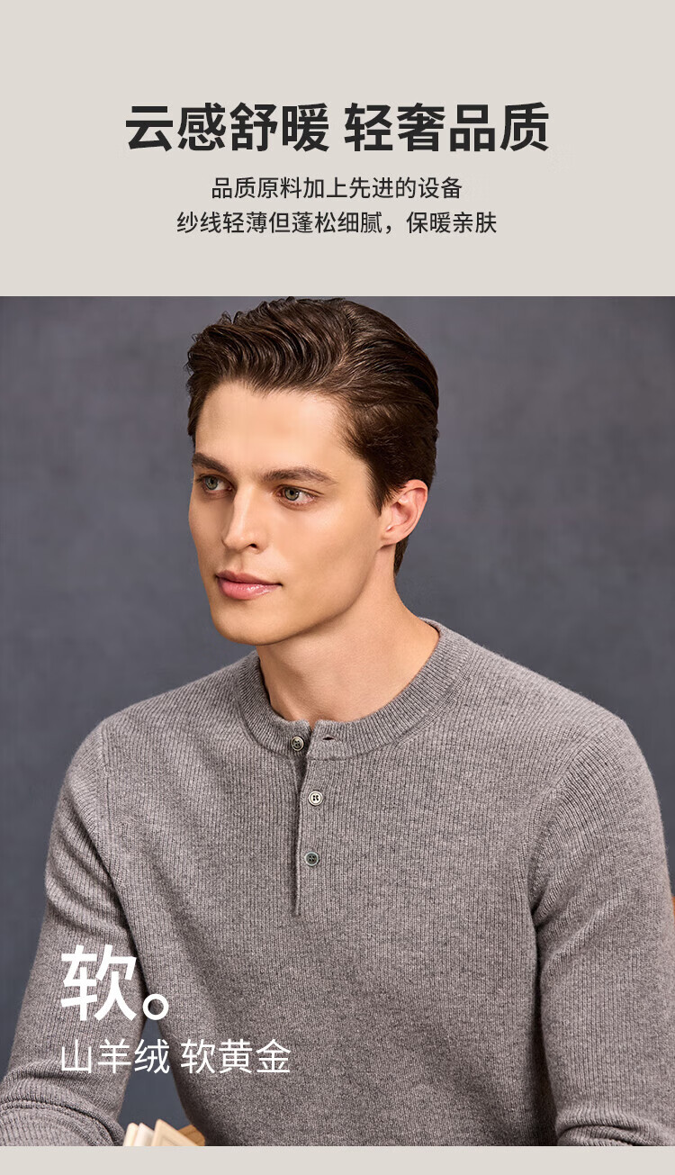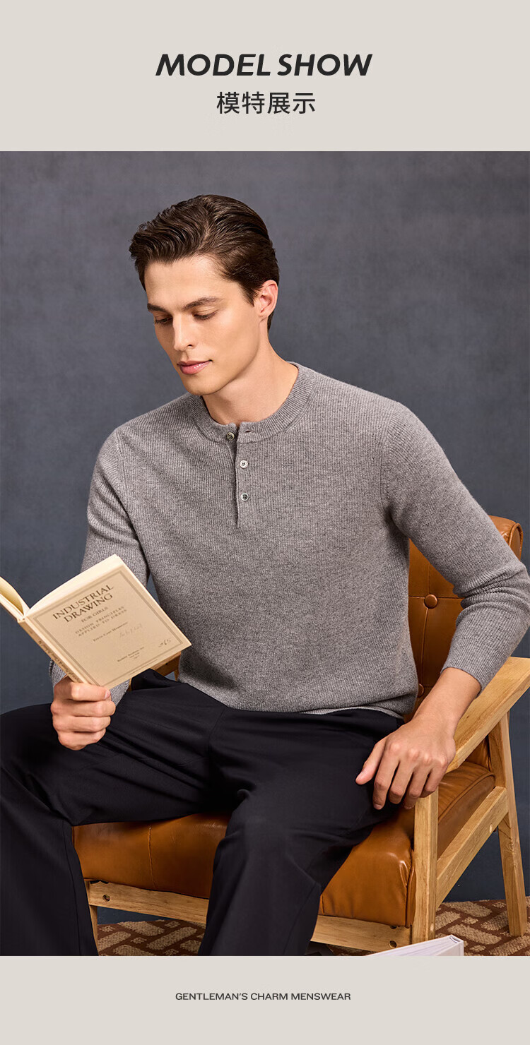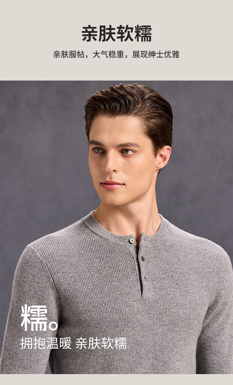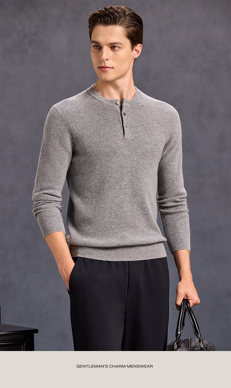 Antonio Cloud Touch & 100% Cashmere Henley Collar Cashmere Sweater Men's Autumn and Winter Warm Skin-Friendly Basement Sweater