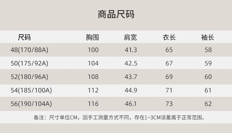 China (cm) 165 / 88-90 170 / 96-98 175 / 108-110 180 / 118-122 185 / 126-130