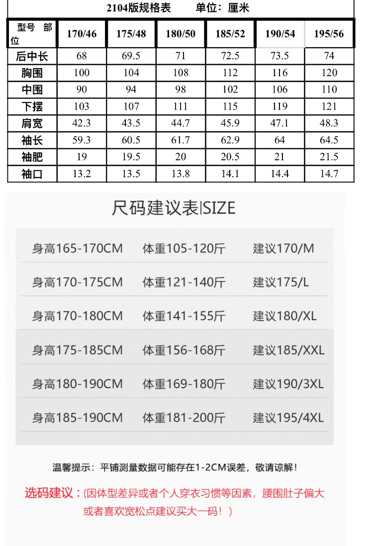 China (cm) 160-165/84-86 165-170 / 88-90 167-172 / 92-96 168-173 / 98-102 170-176 / 106-110