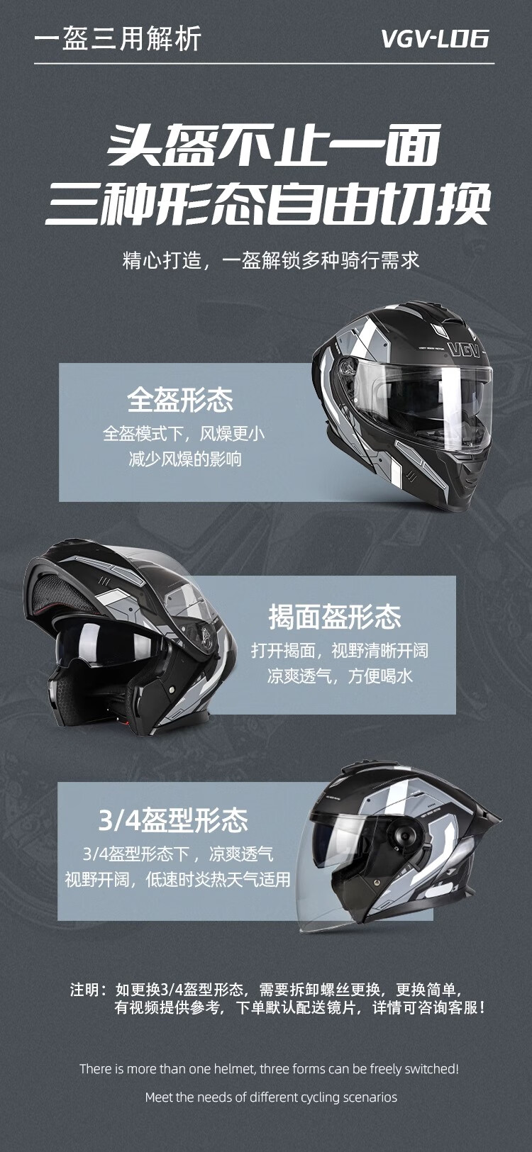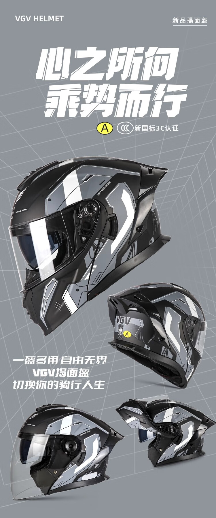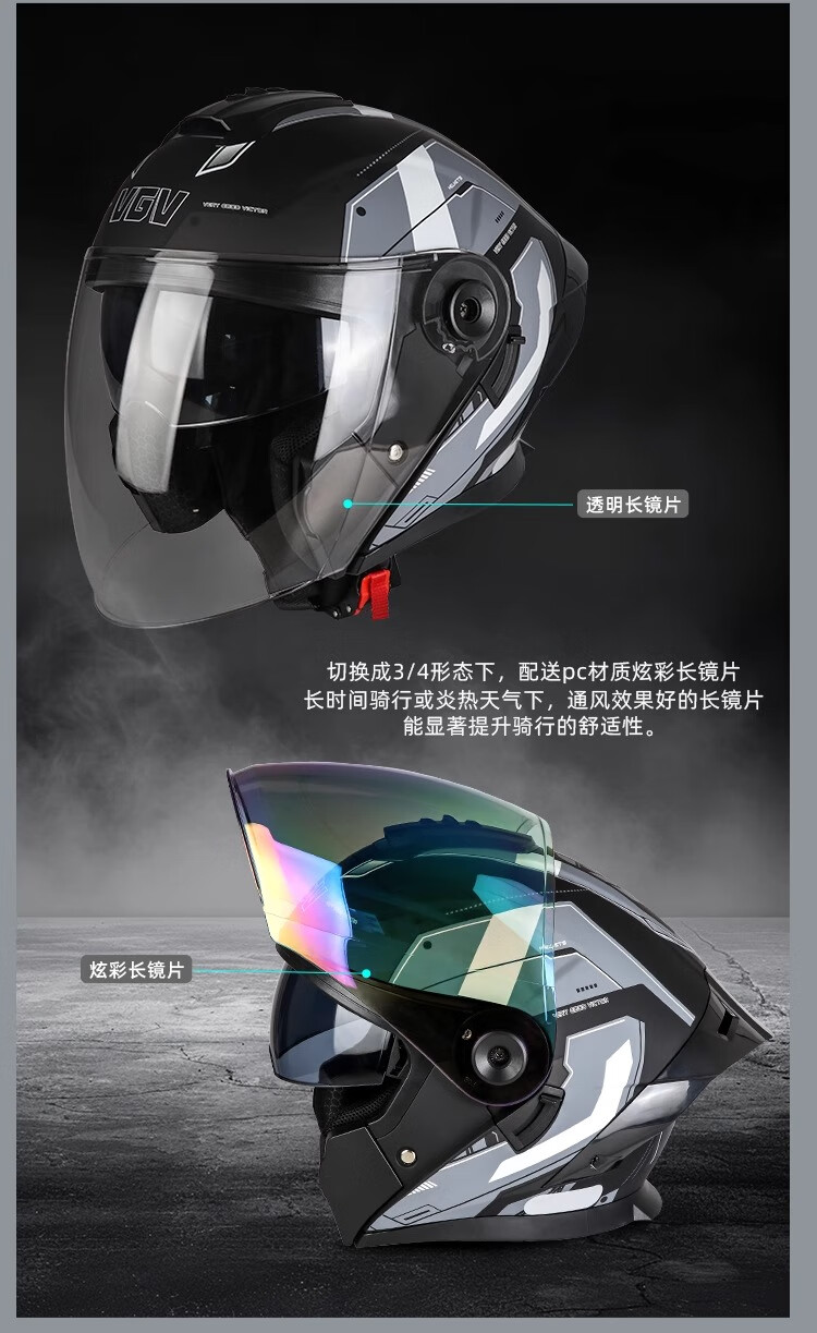 VGV motorcycle open-face helmet 3C certified men and women winter warm motorcycle three-in-one Bluetooth helmet engine black L