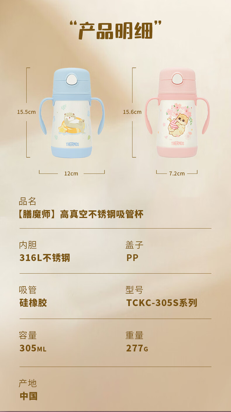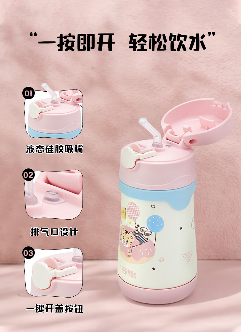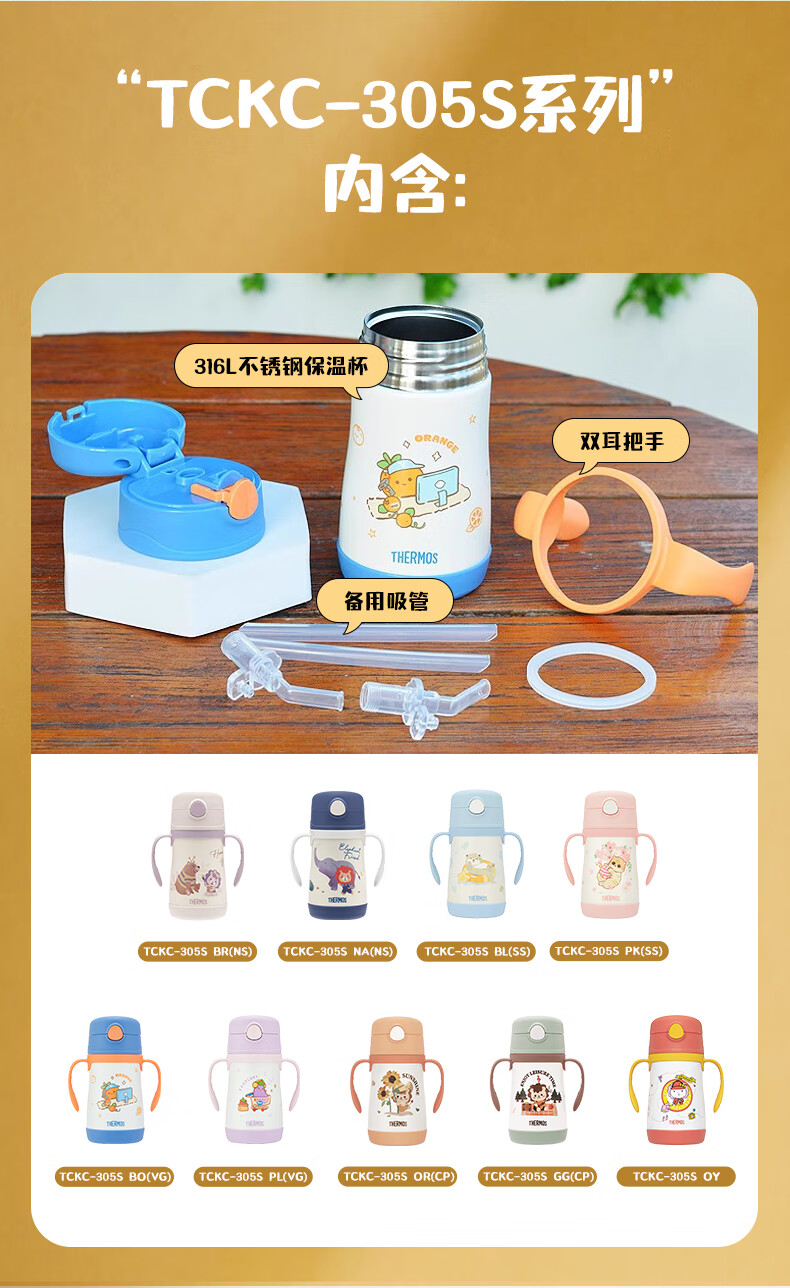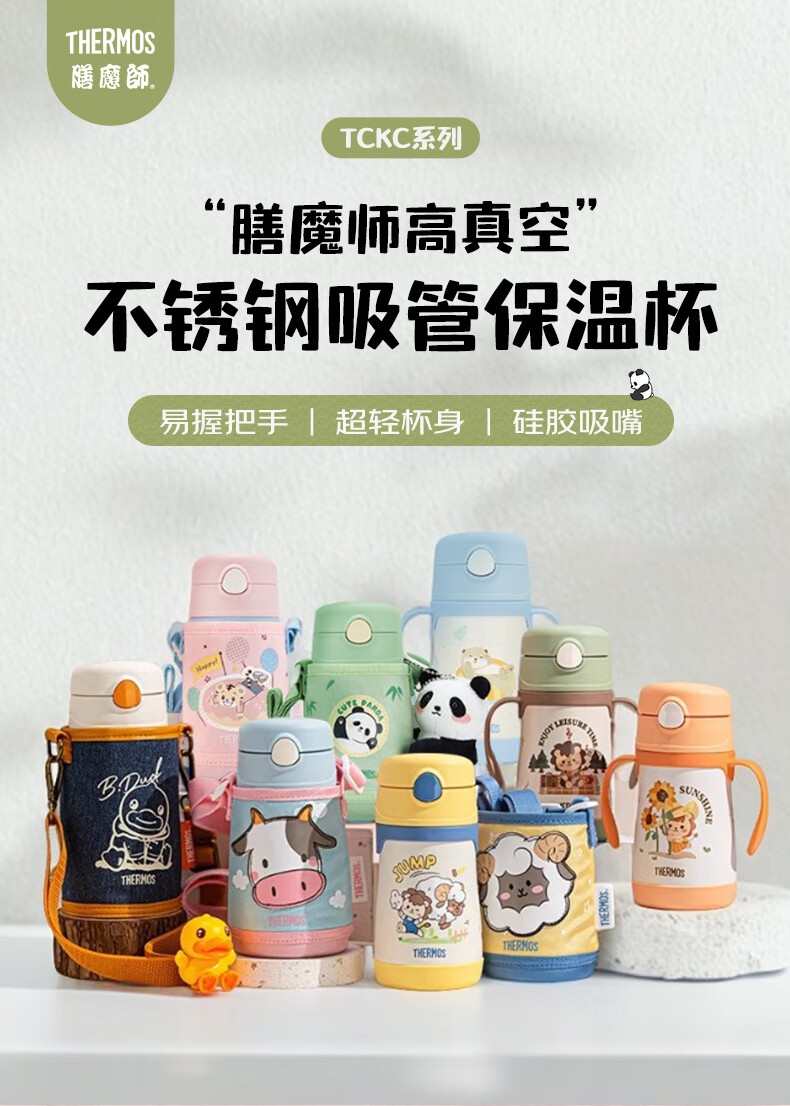 Thermos Children's Straw Insulated Cup Small Capacity Suction Cup Stainless Steel Handle Kindergarten Student Cup Men's and Women's TCKC TCKC Original Straw Accessories