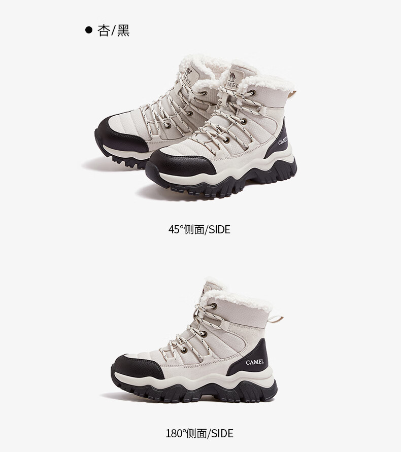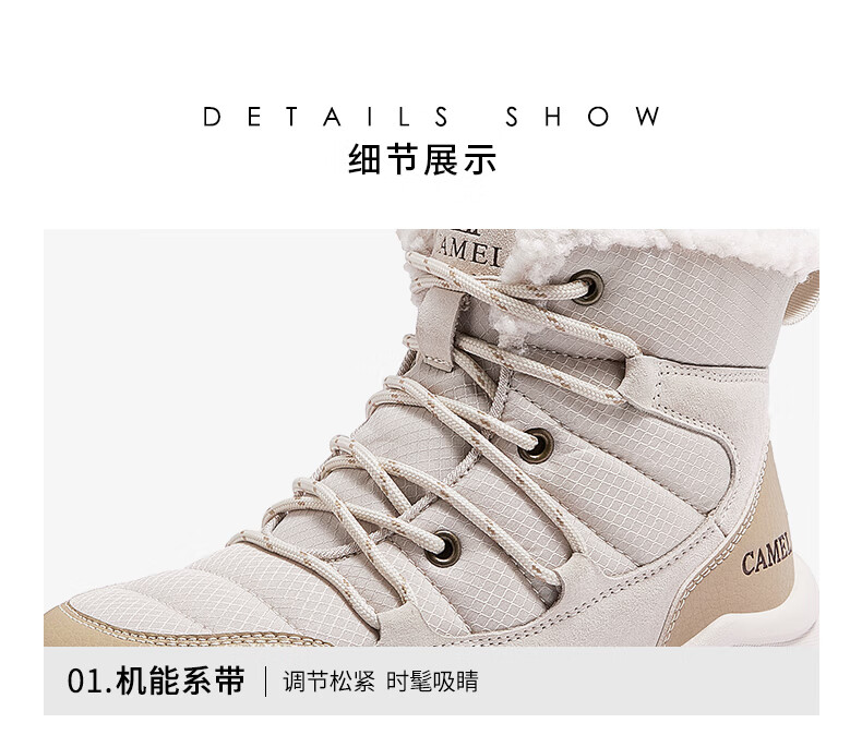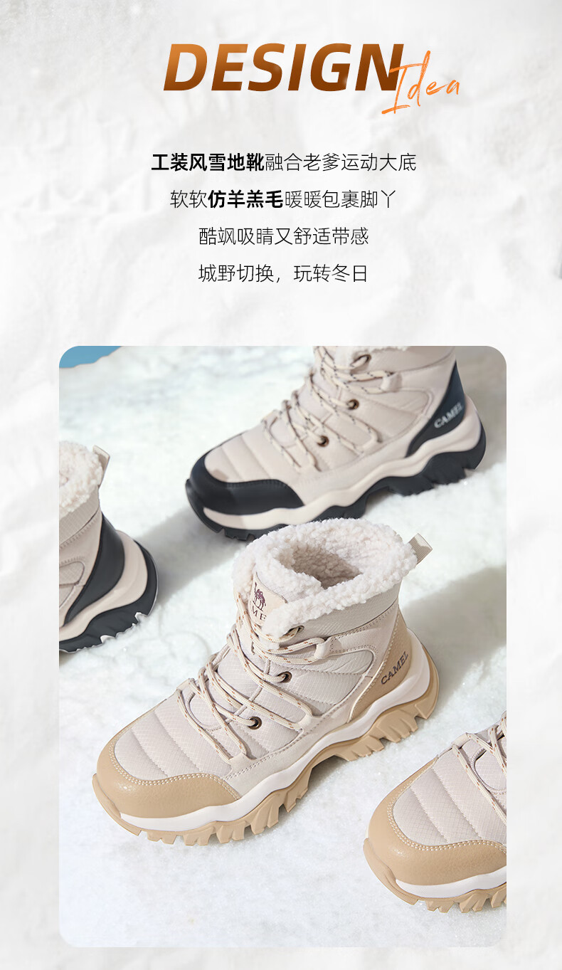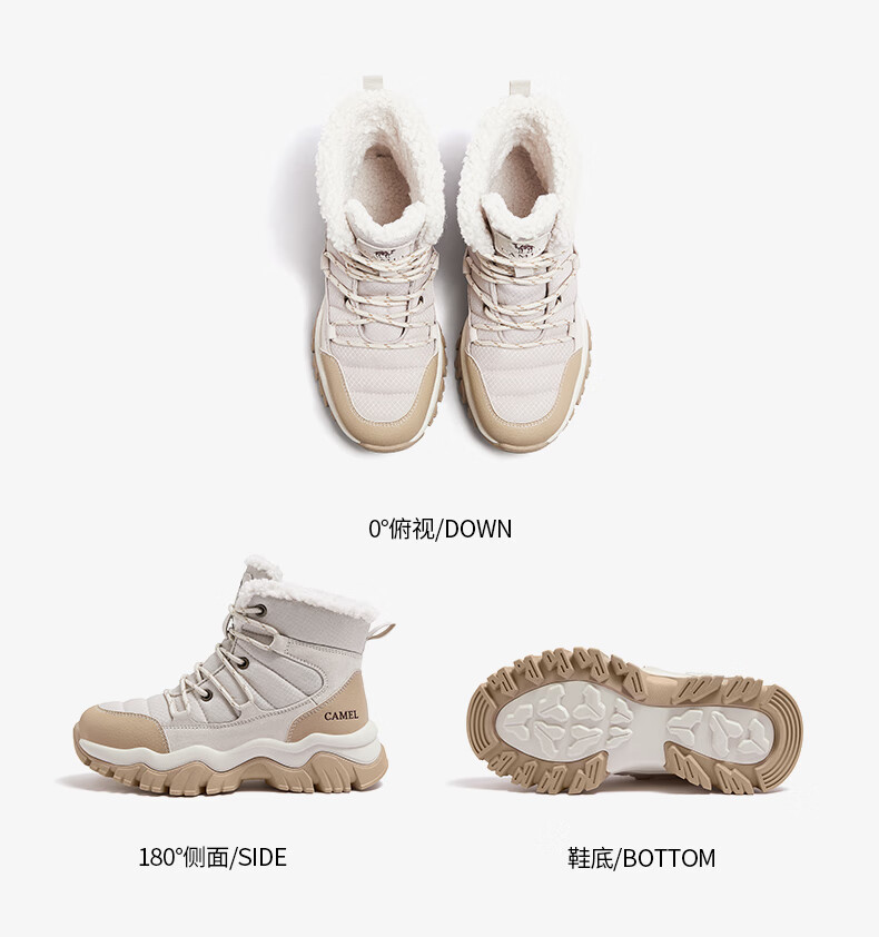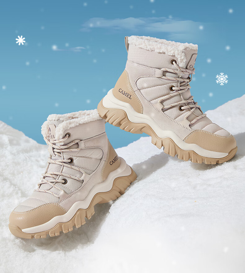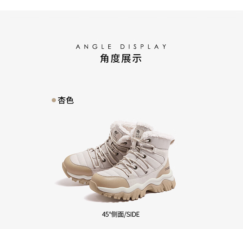 CAMEL Snow Boots Women's Comfortable Velvet Thick Sole Lace Workwear Warm Boots L25W396111 Apricot 37