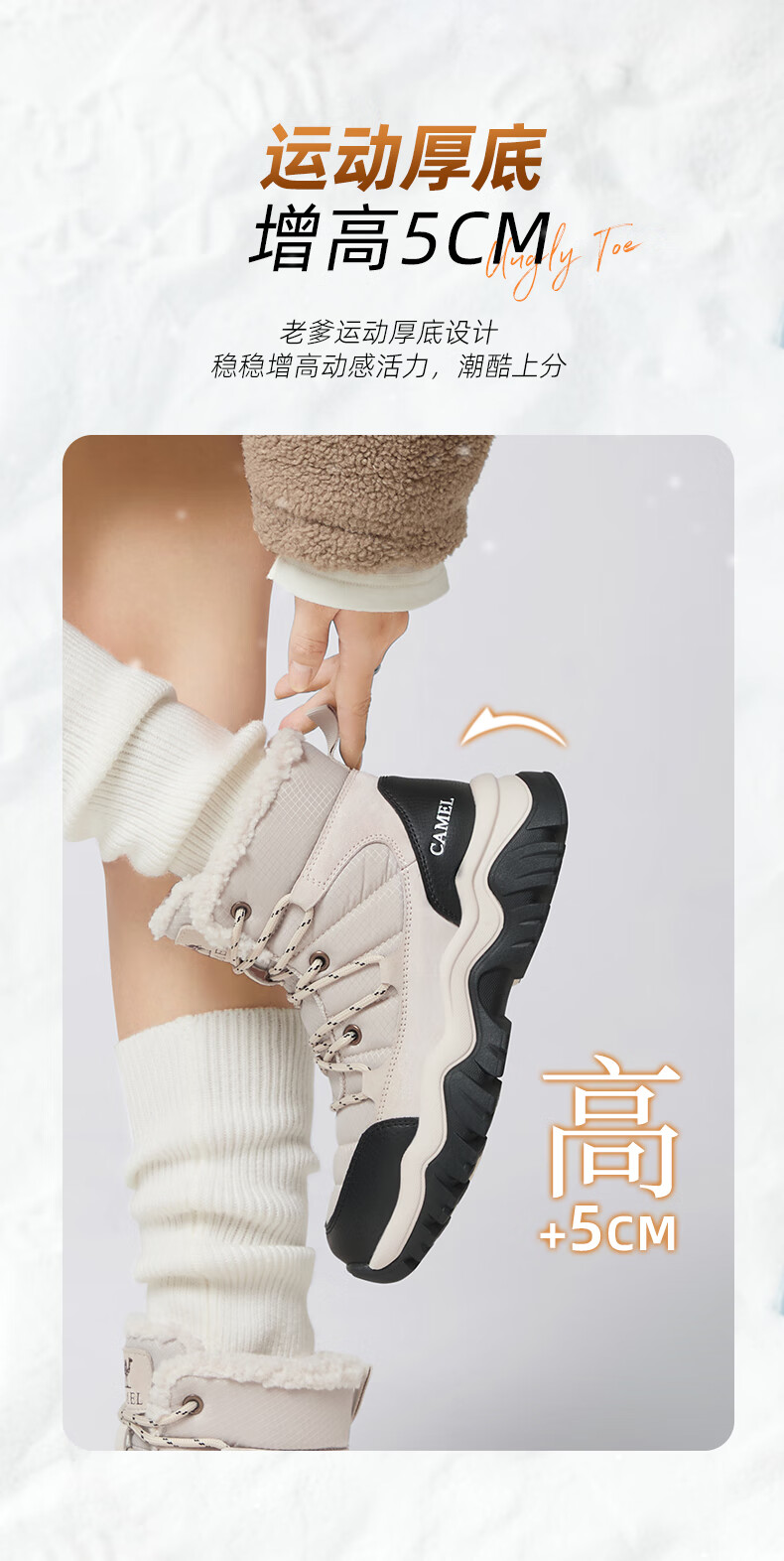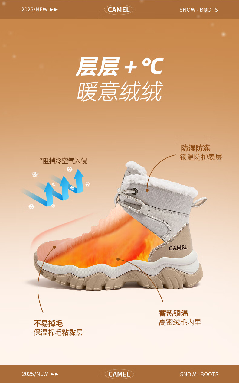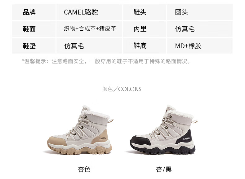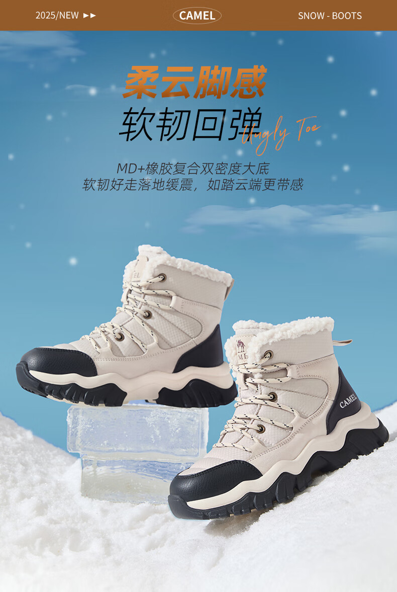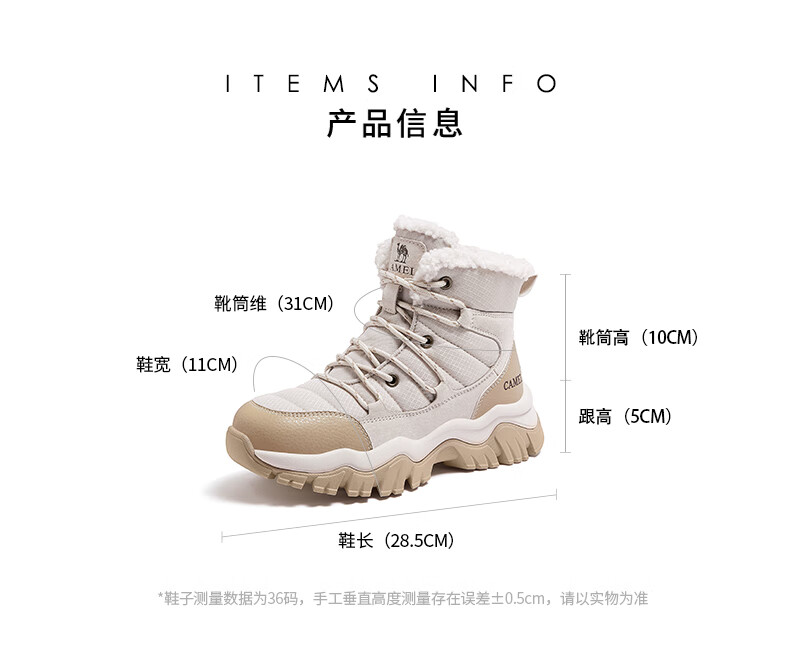 CAMEL Snow Boots Women's Comfortable Velvet Thick Sole Lace Workwear Warm Boots L25W396111 Apricot 37