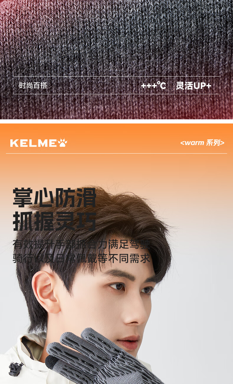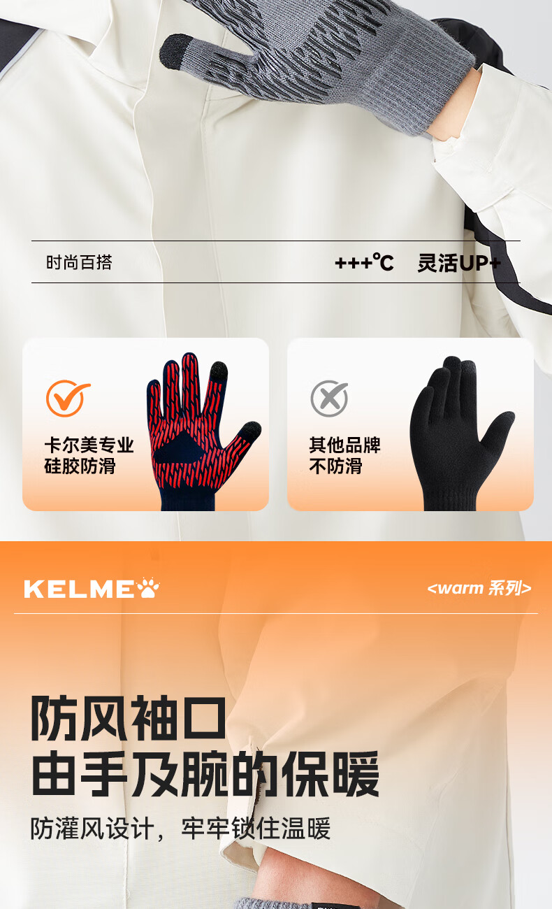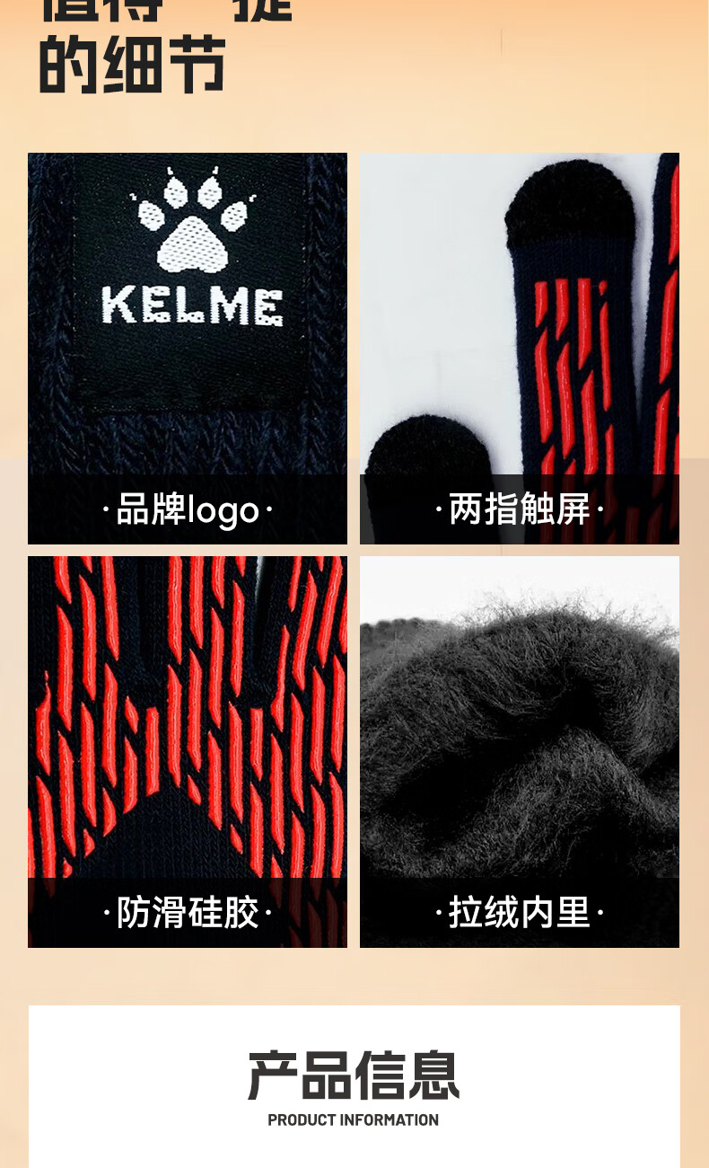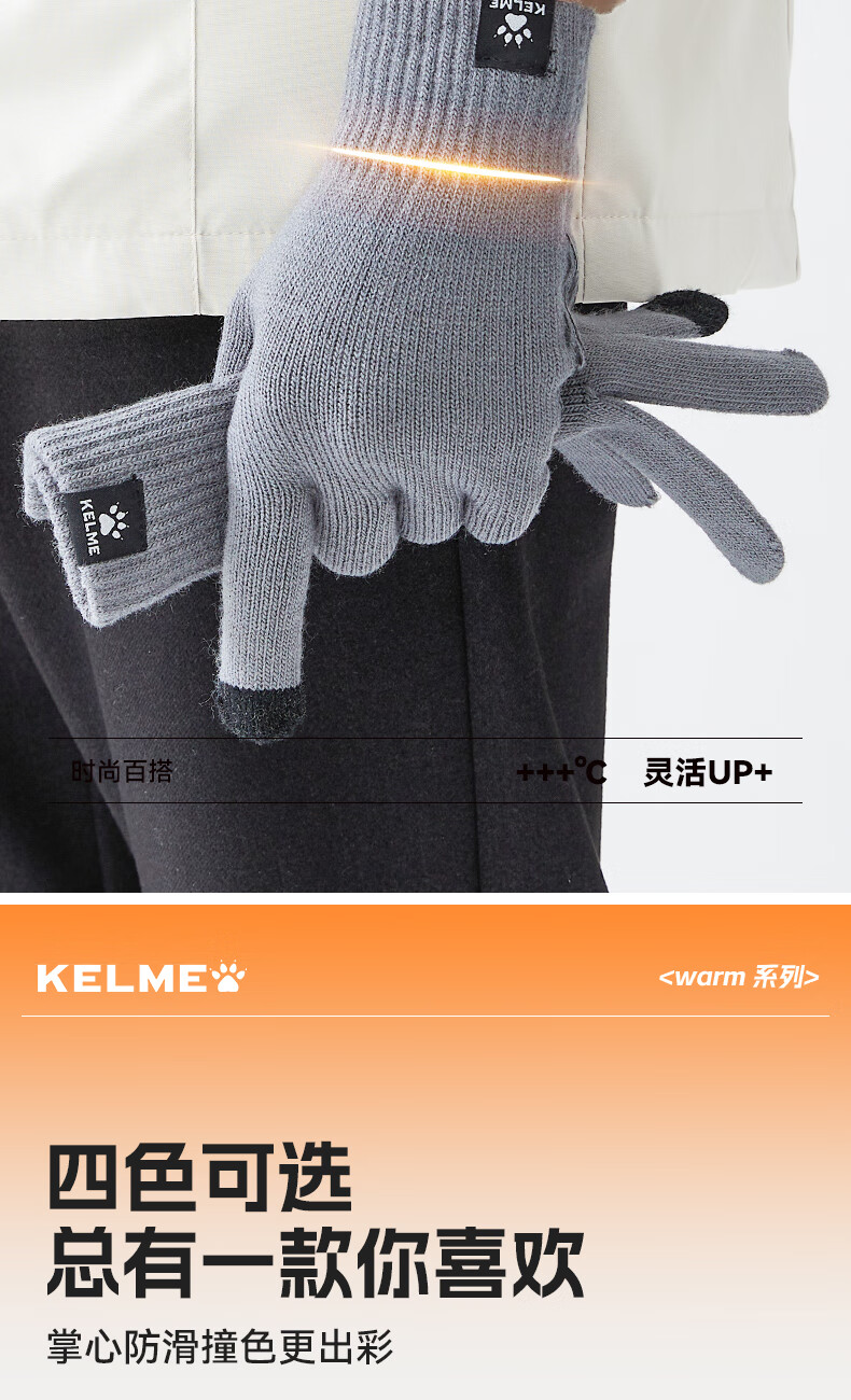 KELME gloves men's winter running warm gloves outdoor sports cycling anti-cold wind touch screen anti-slip knitted wool gloves