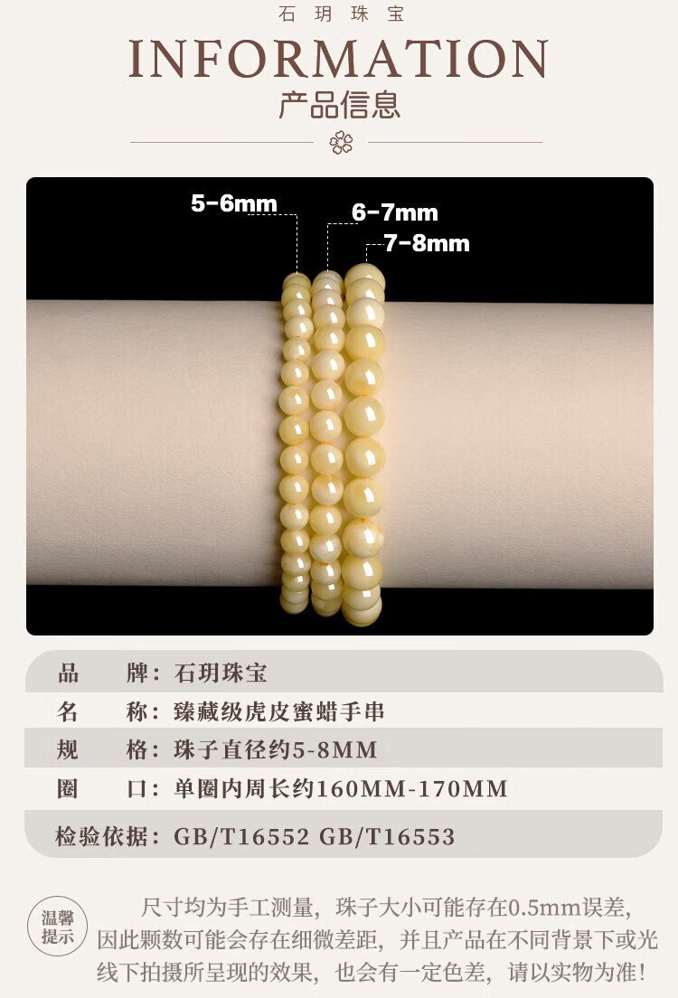Shi Yue Jewelry (SHIYUEZHUBAO) Zhenzhi Grade Natural Mineral Tiger Skin Beeswax Bracelet Full of Honey Russian Material Toy Accessories Bracelet for Men and Women 7-8mm