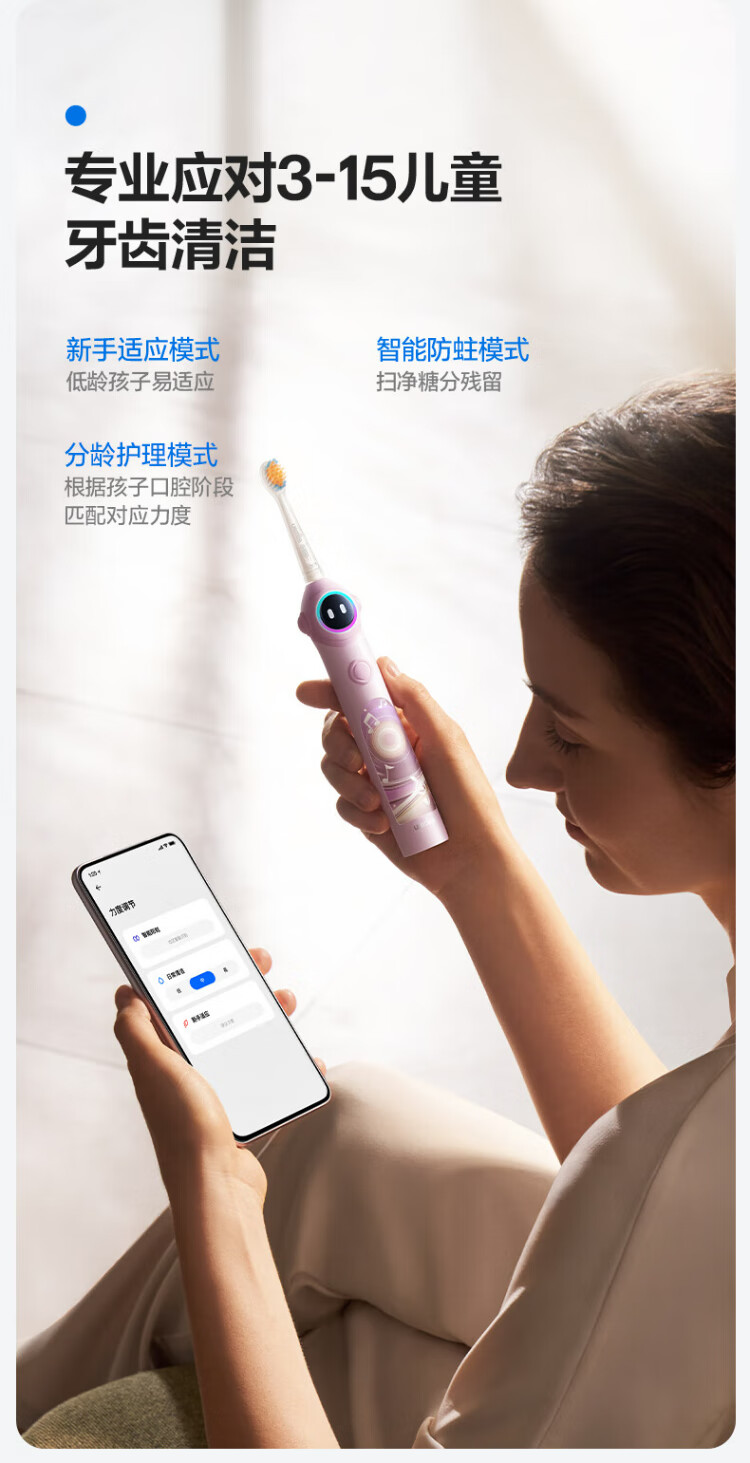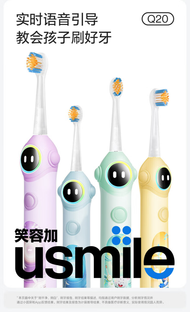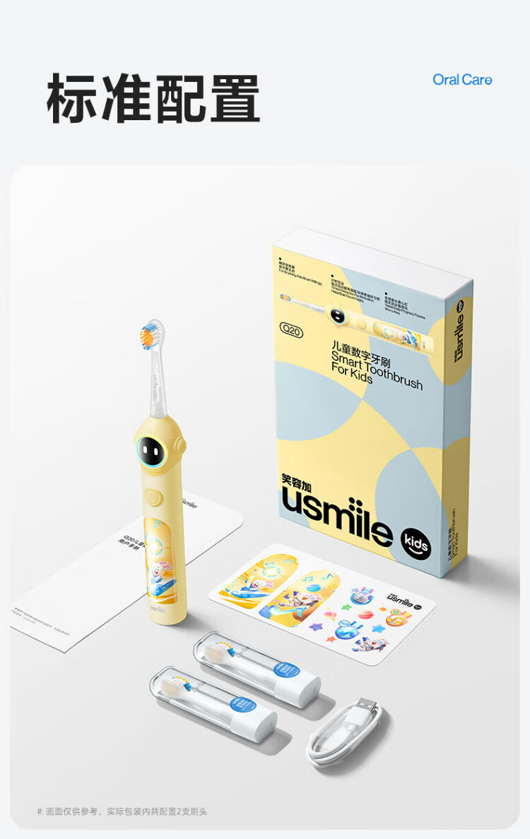 Usmile Smile Plus Children's Electric Toothbrush Digital Toothbrush Q20 Cream Yellow Suitable for 3-15 years old student gifts birthday gifts children's gifts