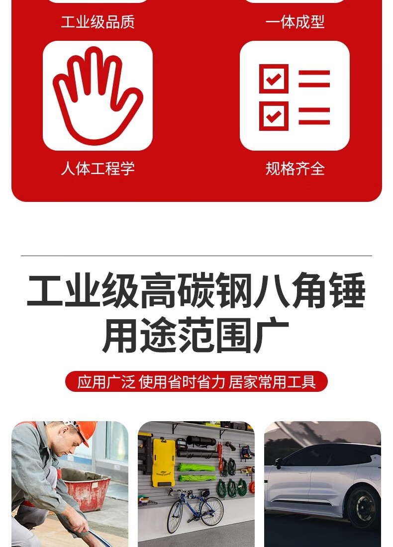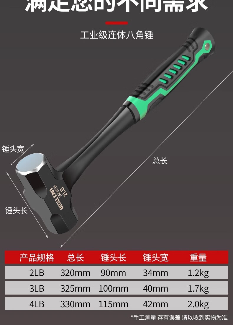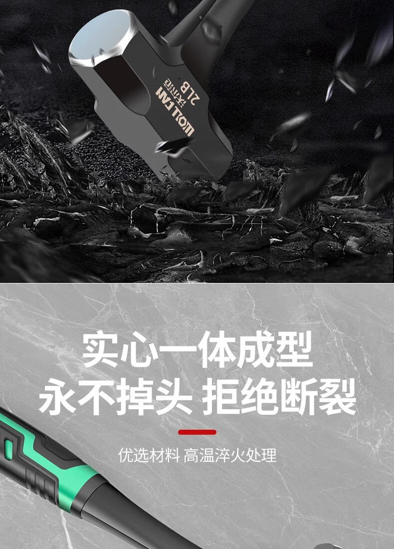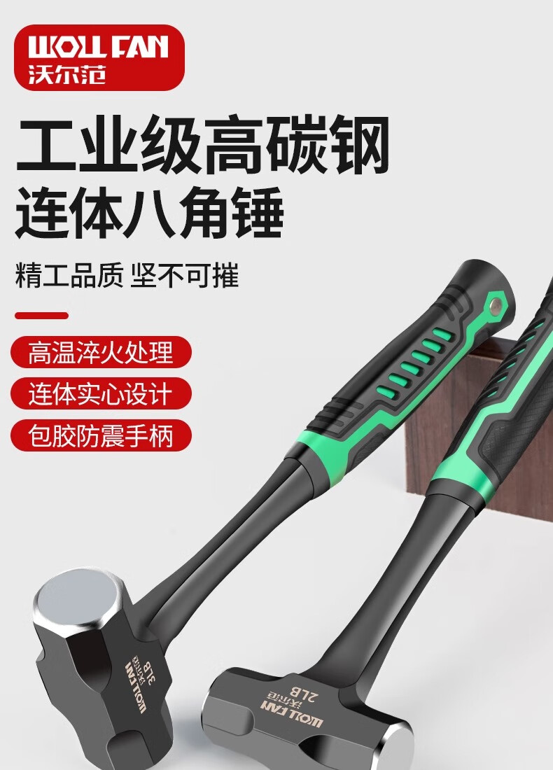 Wolfan hammer conjoined octagonal hammer one-piece wall hammer hand hammer super hard sledge hammer high carbon steel masonry hammer rubber handle