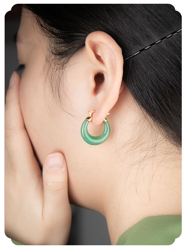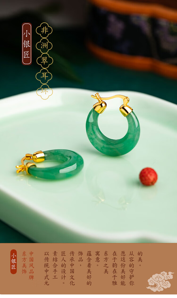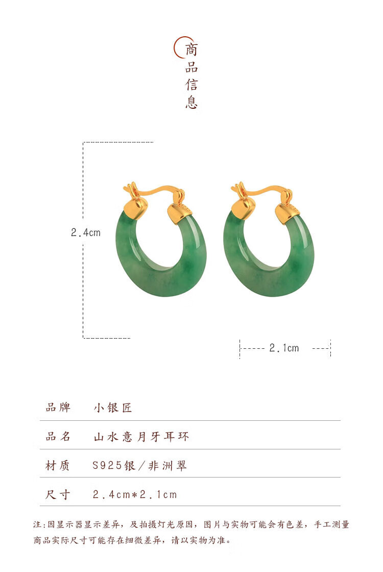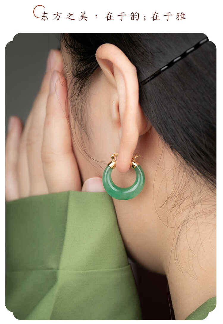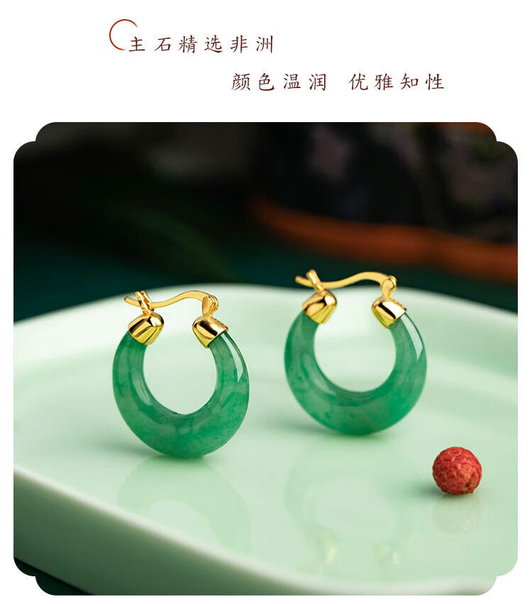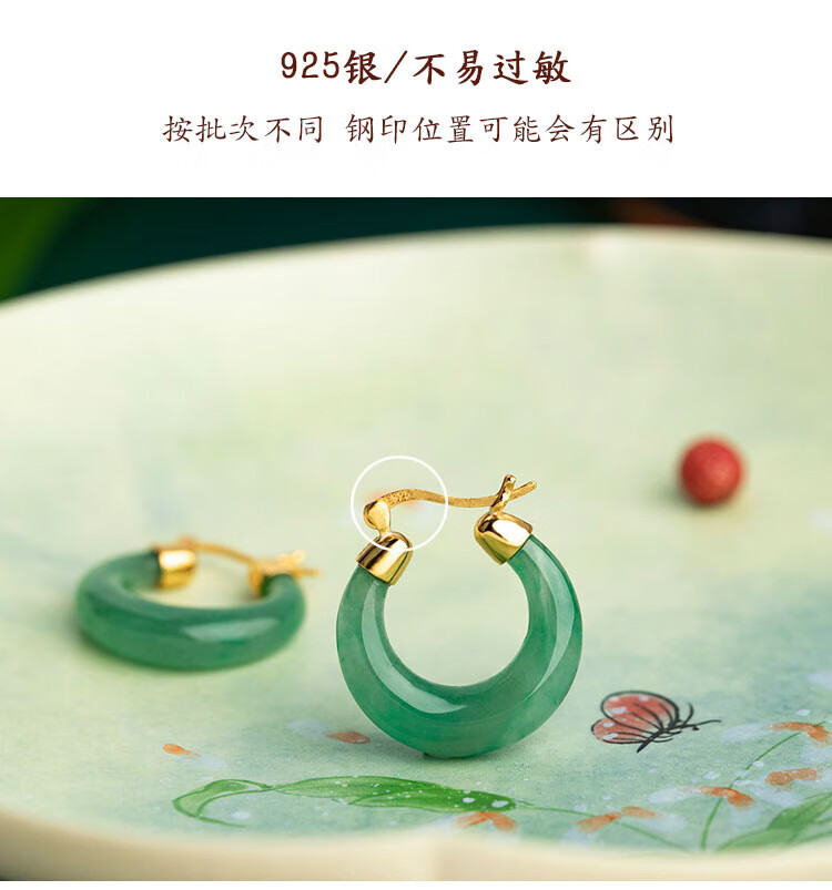 Little silversmith African green ice bottom floating flowers S925 silver earrings women's earrings new Chinese style retro green jade earrings girlfriend gift