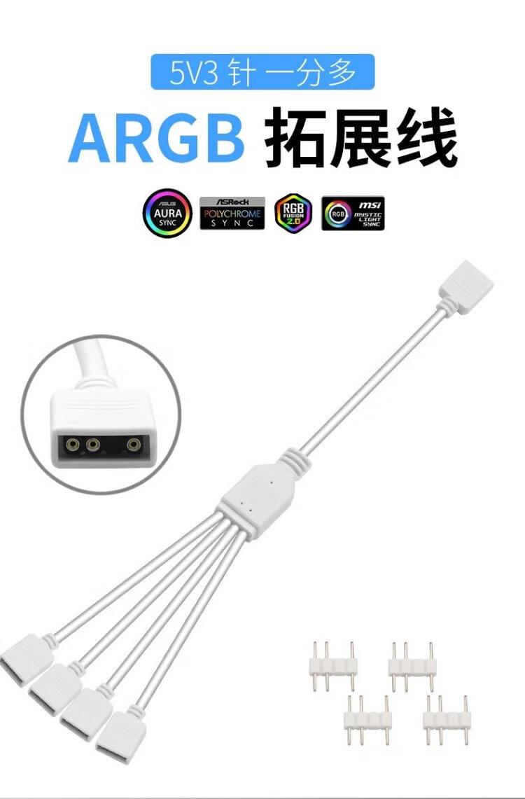 Liantuo computer motherboard Shenguang synchronous 5V fan splitter ARGB expansion cable expansion adapter cable 5V 3-pin extension cable computer chassis fan hub one point three