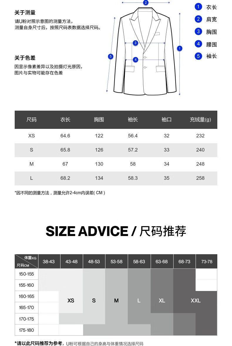 China (cm) 160-165/84-86 165-170 / 88-90 167-172 / 92-96 168-173 / 98-102 170-176 / 106-110