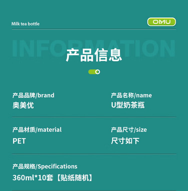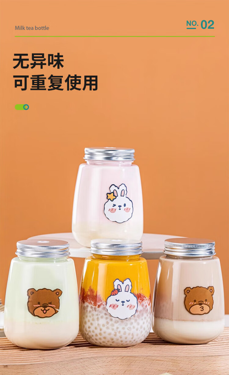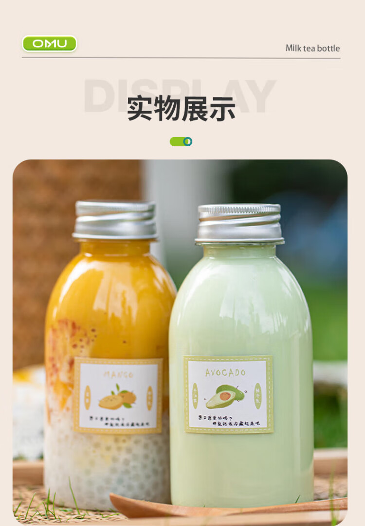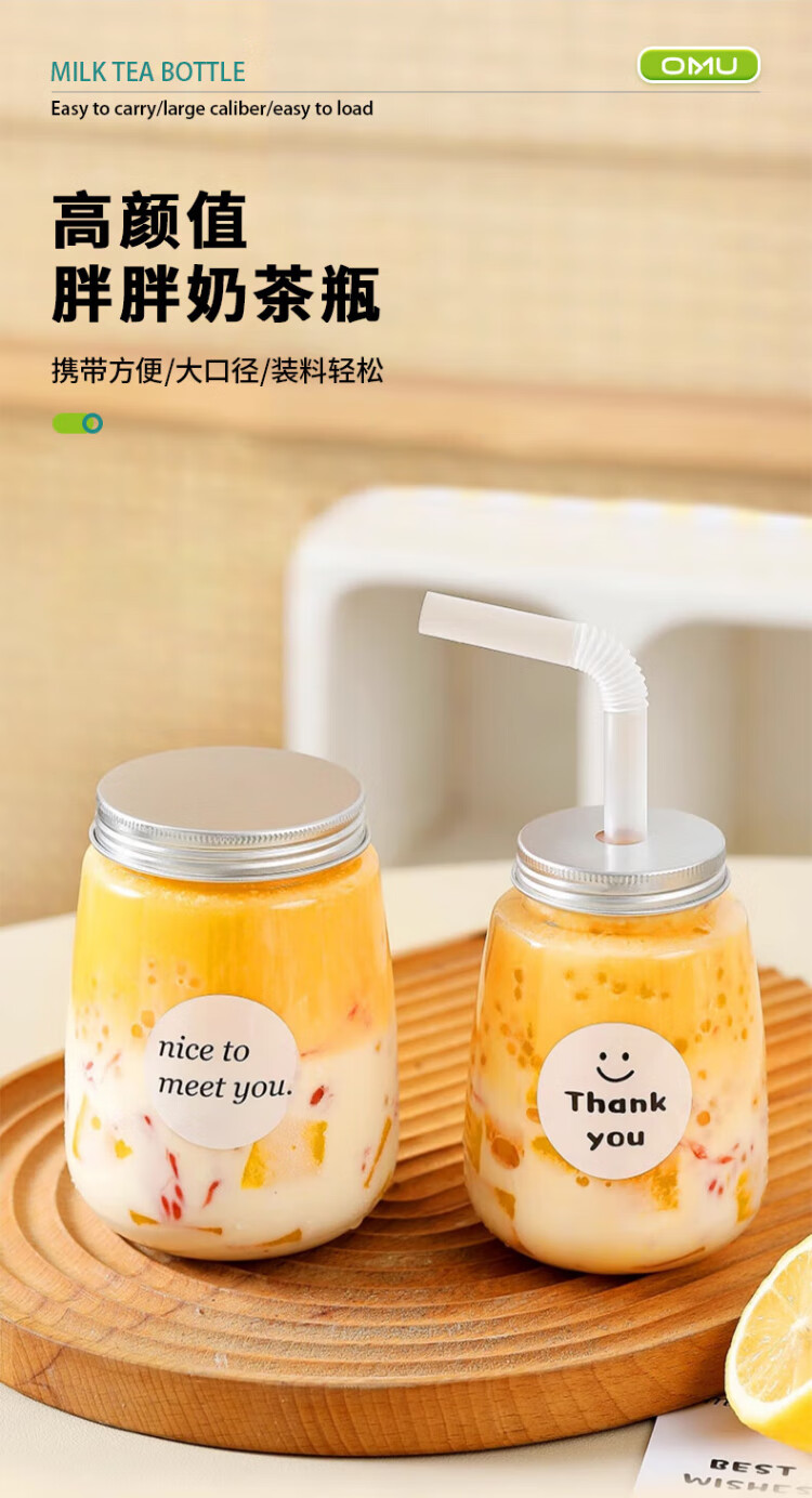 Aomeiyou milk tea cup disposable U-shaped fat cup with lid household cold drink cup poplar nectar bottle 360ml*10 sets