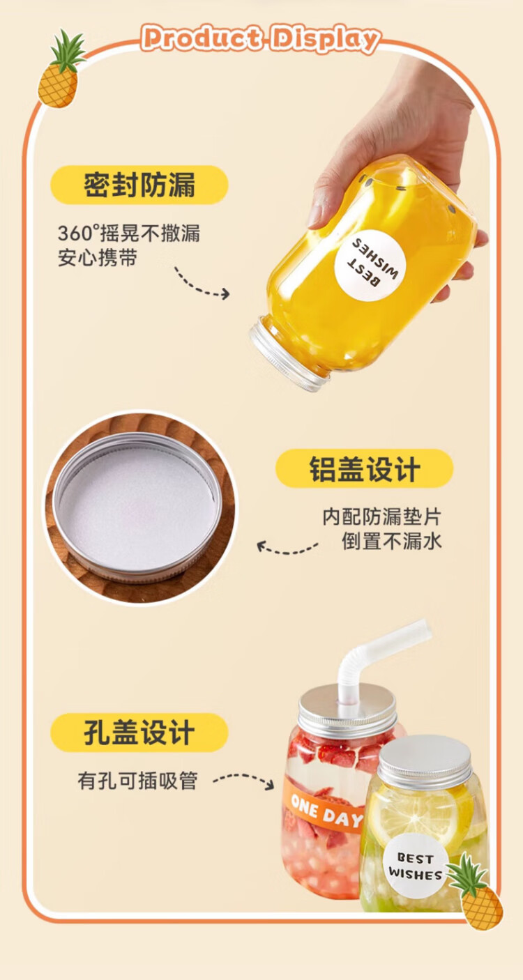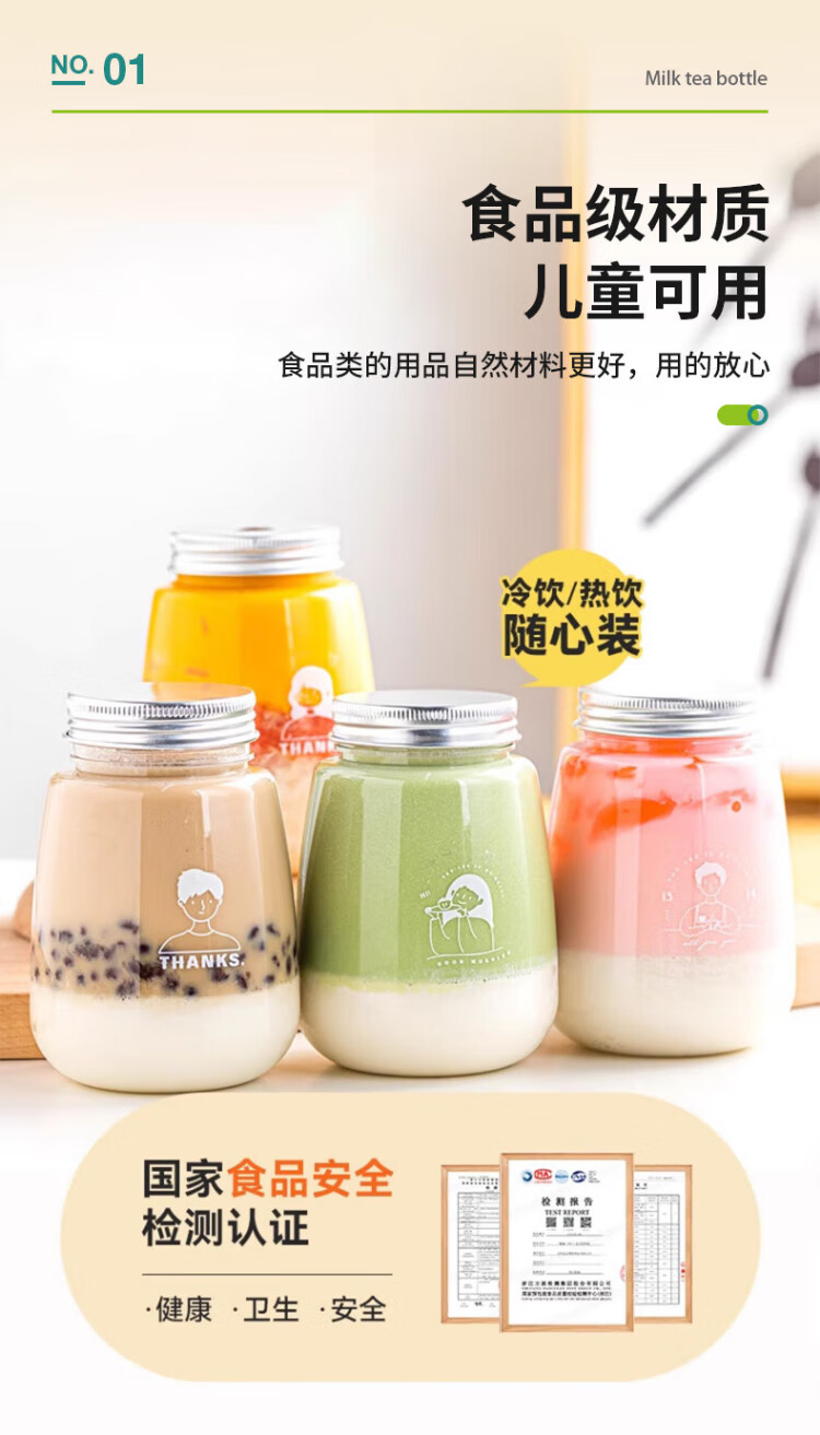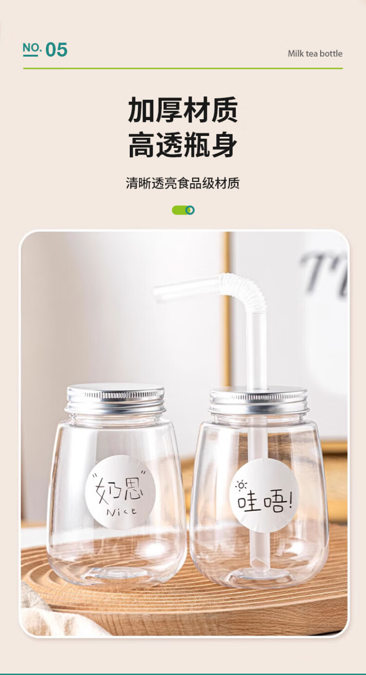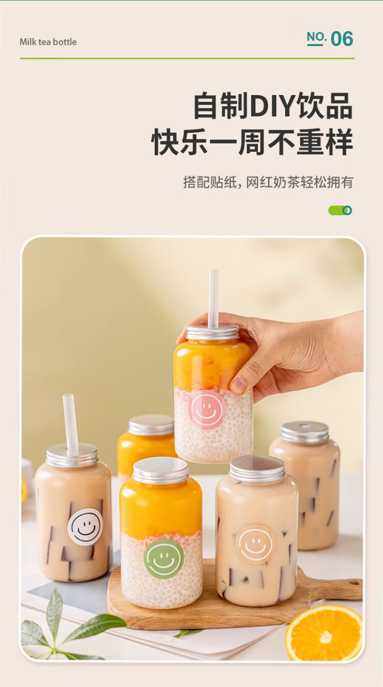 Aomeiyou milk tea cup disposable U-shaped fat cup with lid household cold drink cup poplar nectar bottle 360ml*10 sets