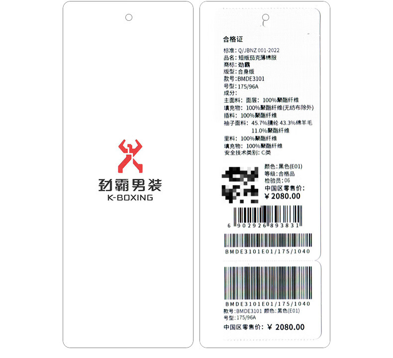 K-Boxing Men's Wear (K-Boxing) Autumn and Winter Fashion Spliced Short Jacket Thin Cotton Clothes BMDE3101 Black L