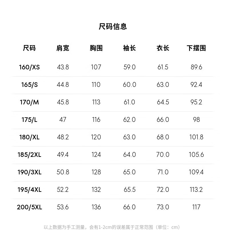 China (cm) 165 / 88-90 170 / 96-98 175 / 108-110 180 / 118-122 185 / 126-130