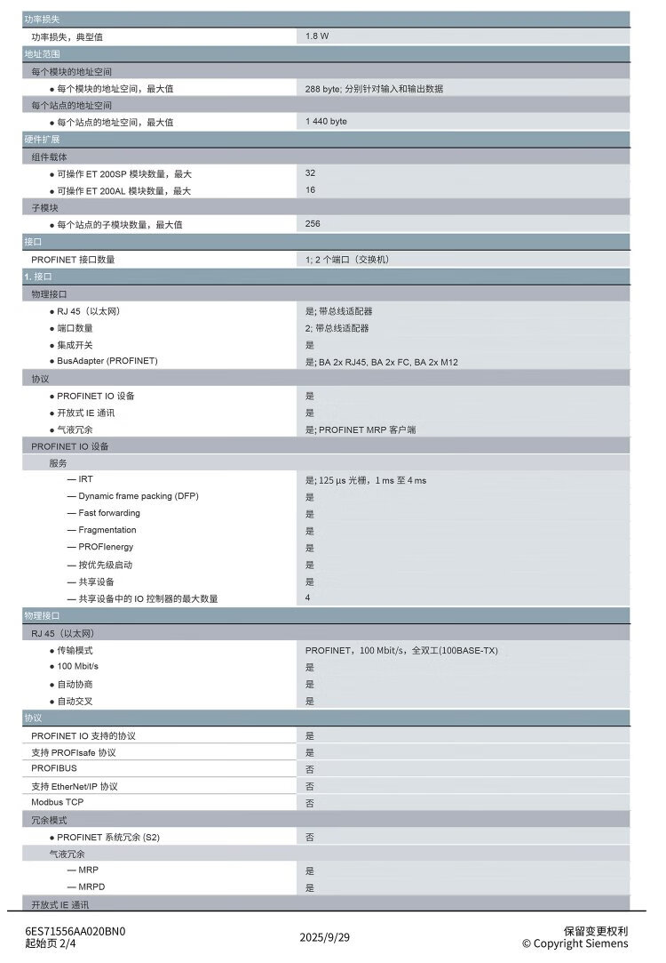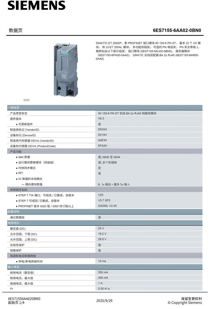 西门子ET 200SP 接口模块 6ES7155-6AA02-0BN0,IM 155-6 PN ST incl. BA 2xRJ45