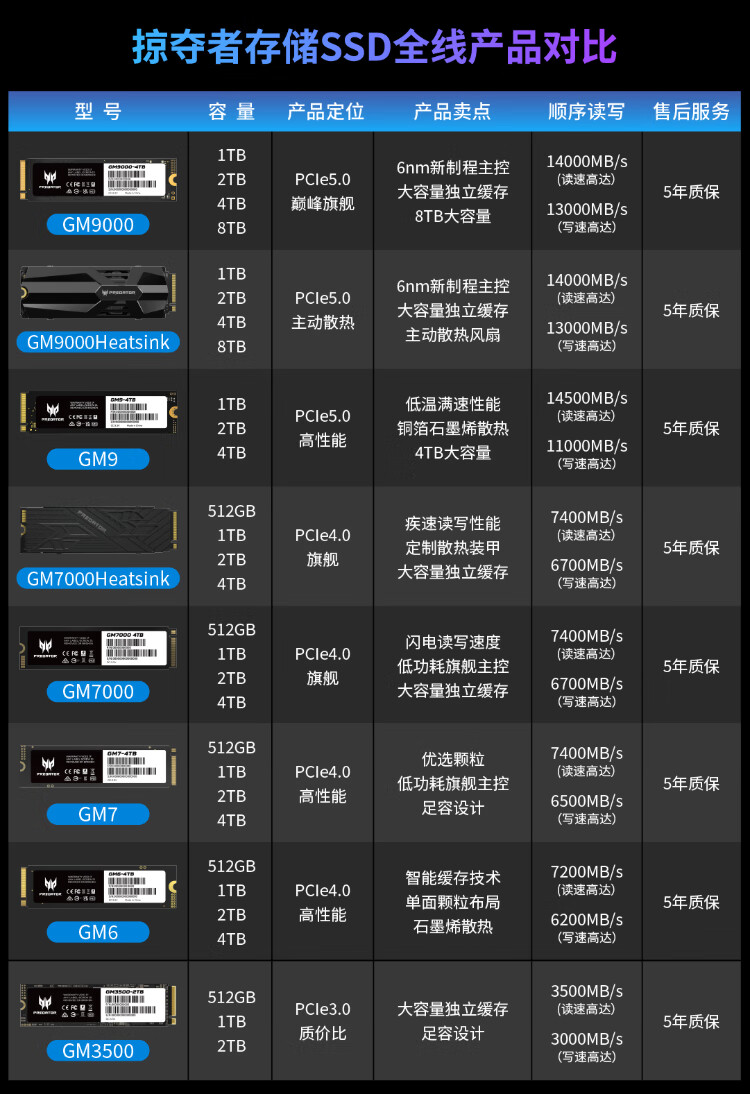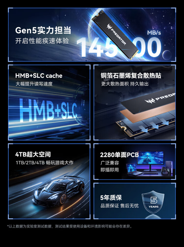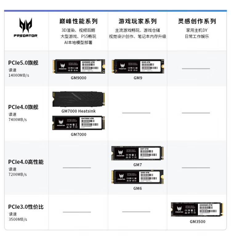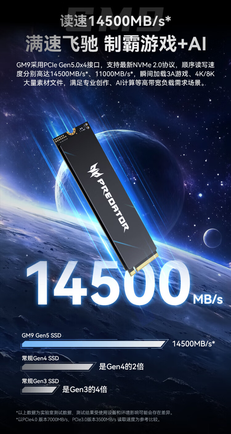 Acer PREDATOR 2TB SSD solid state drive M.2 interface (NVMe protocol) GM9 series NVMe PCIe 5.0 reading speed 14500MB/s AI computer storage accessories
