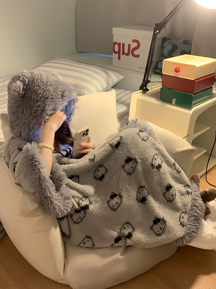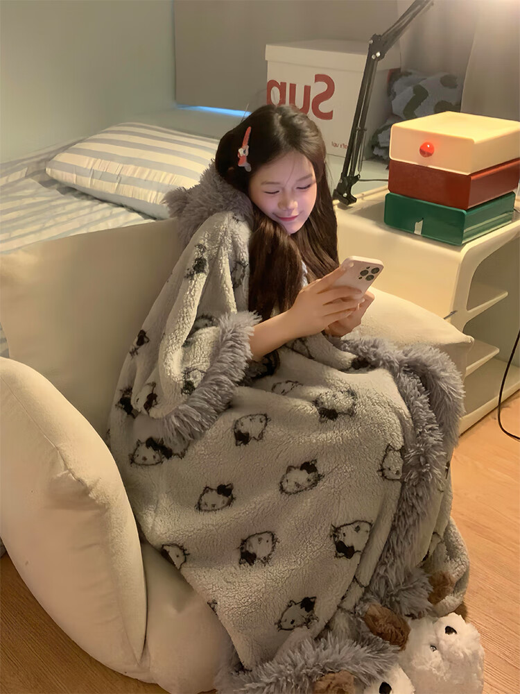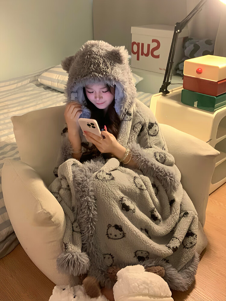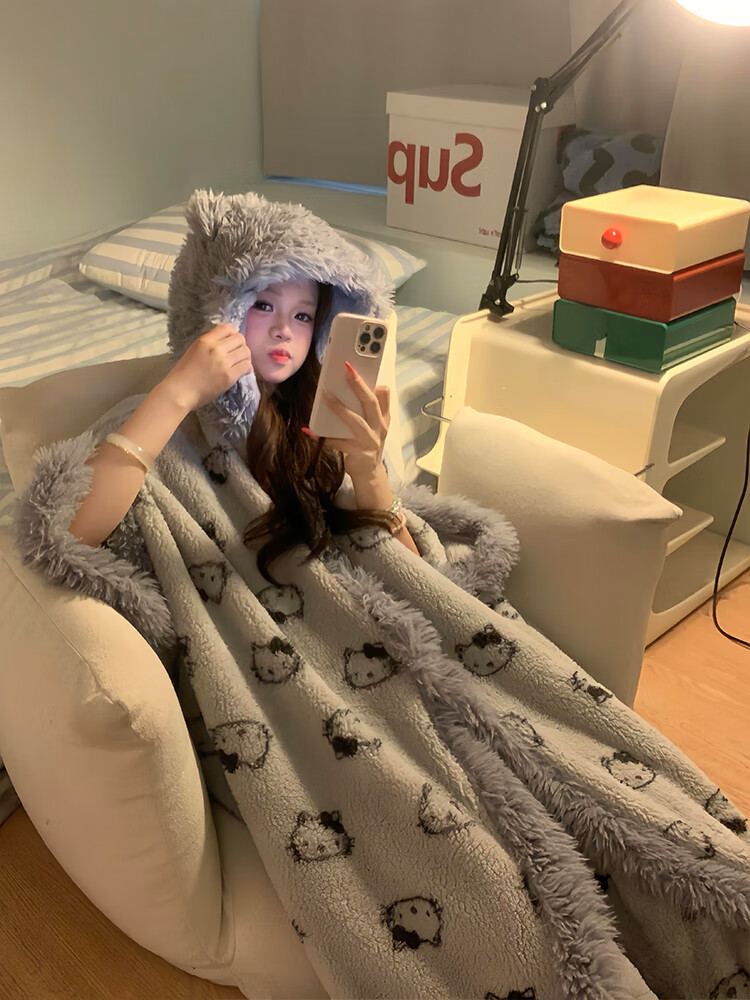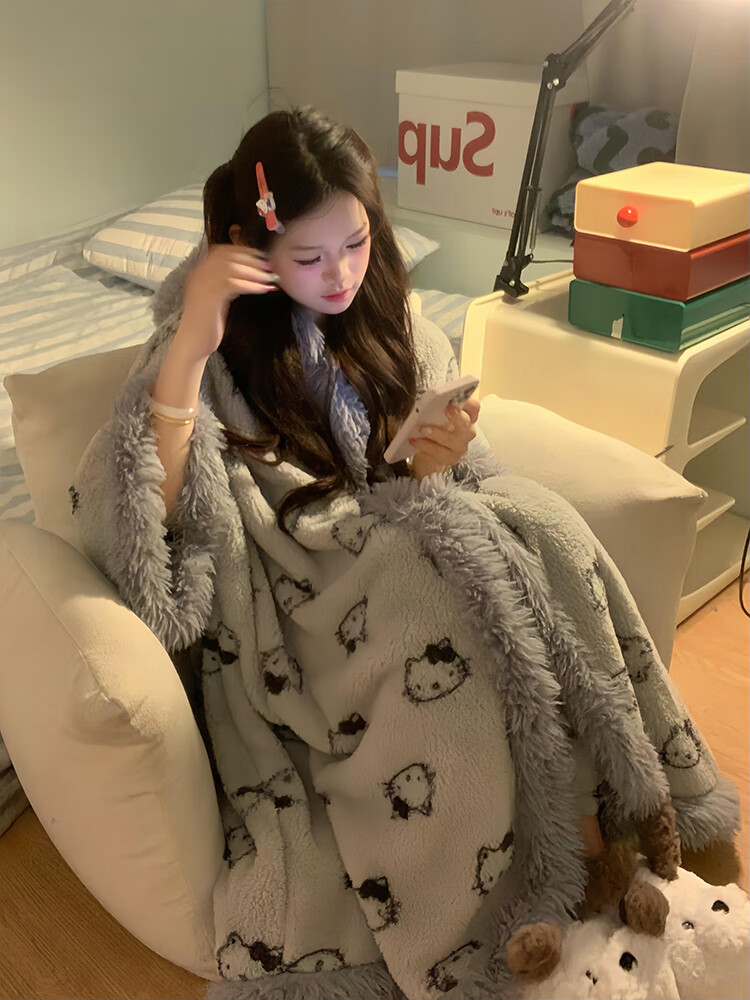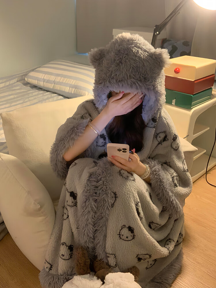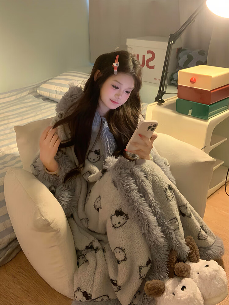 Yu Zhaolin pajamas suit girls plus velvet thickened pajamas women coral velvet gray kt winter new soft girl home clothes cloak