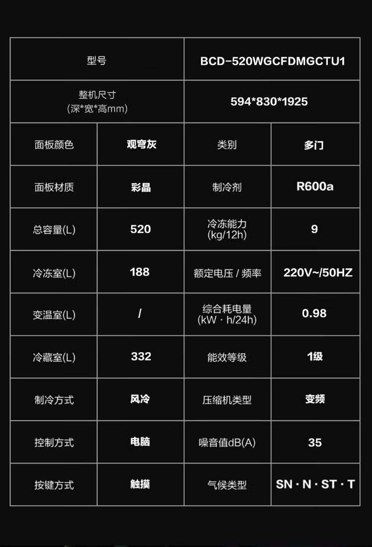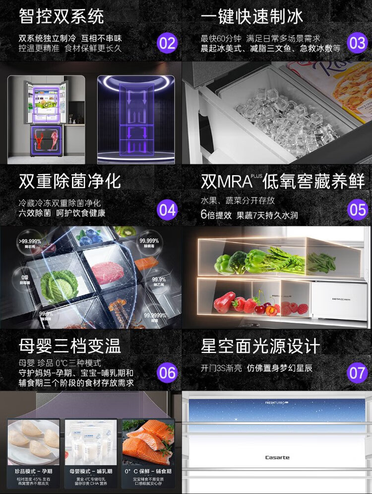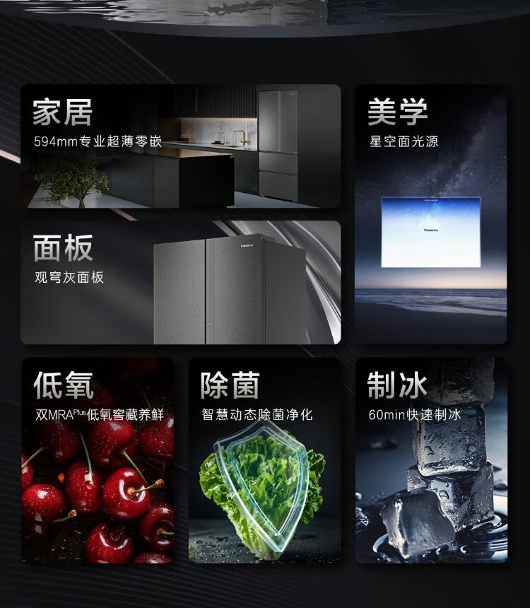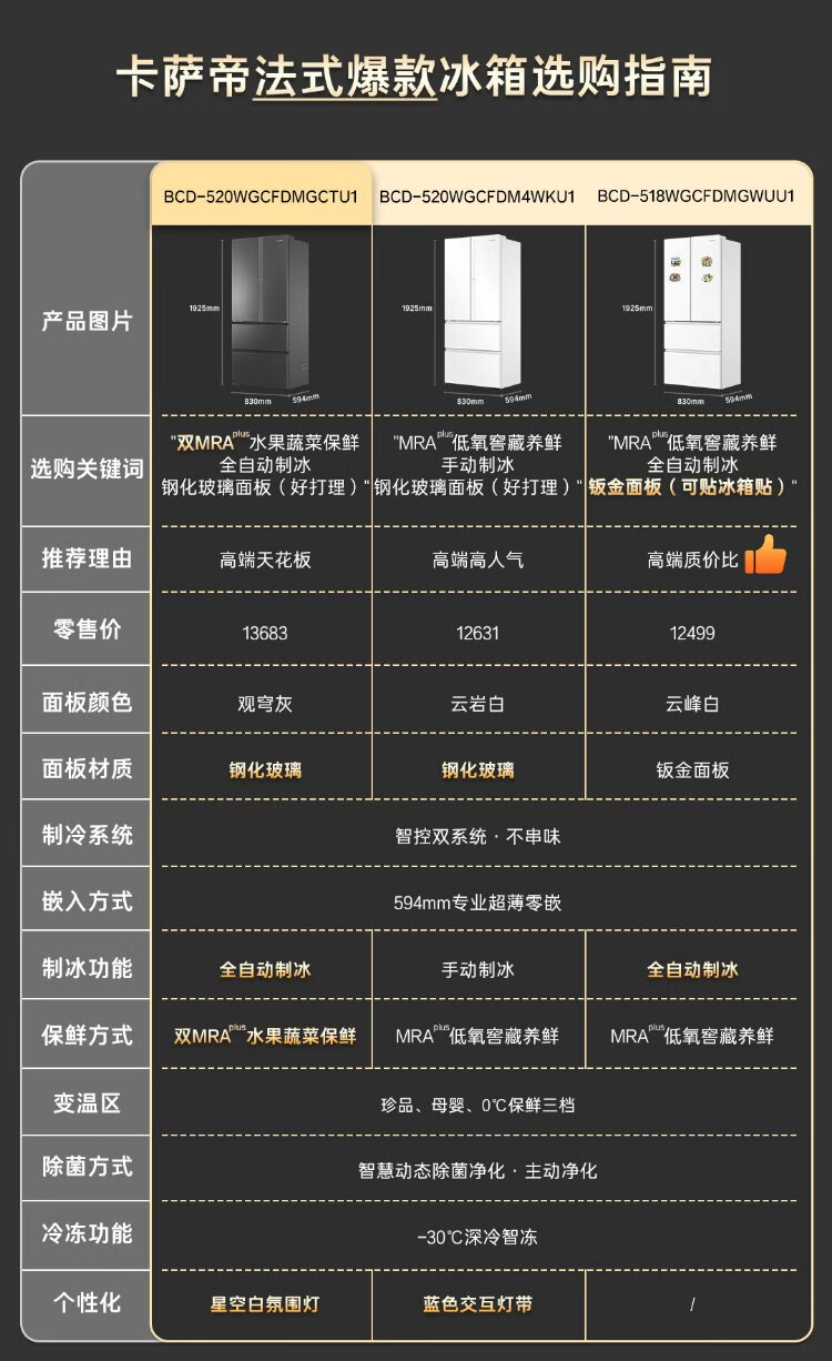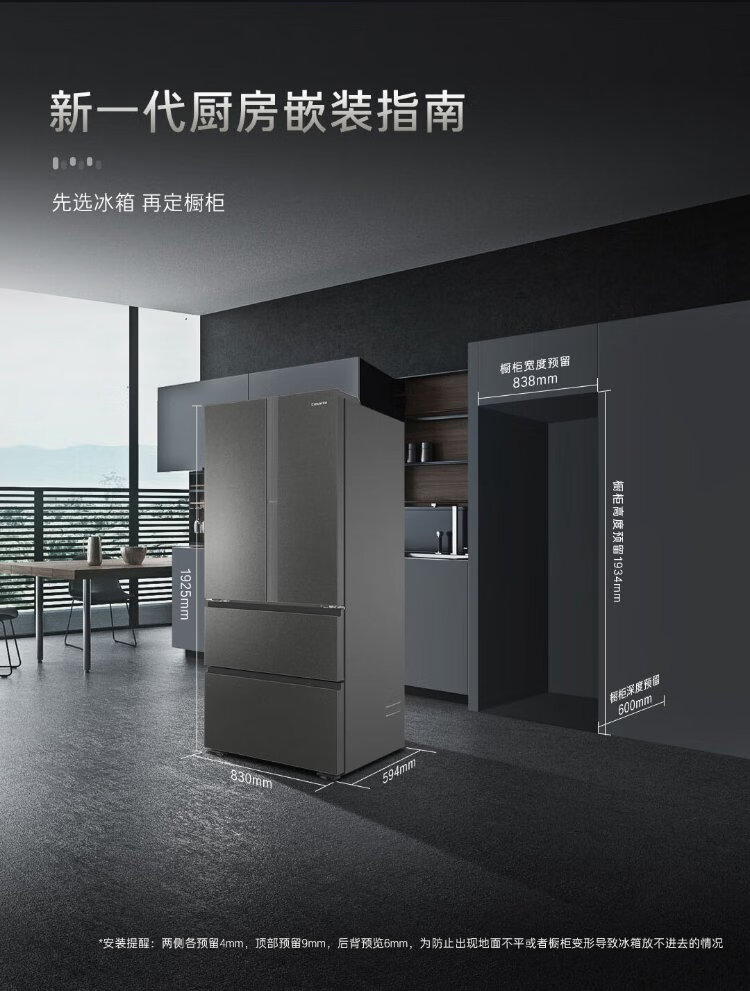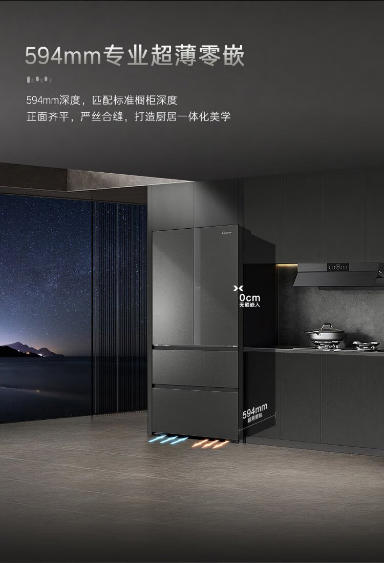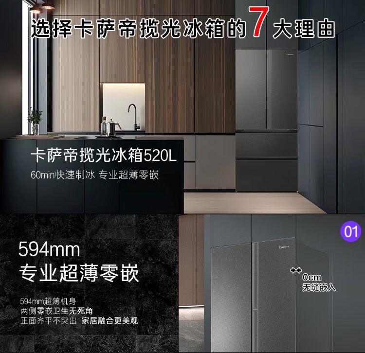 Casarte Languang 520-liter 594mm fully automatic ice-making ultra-thin zero-embedded dual-system French multi-door four-door refrigerator national subsidy 20% BCD-520WGCFDMGCTU1